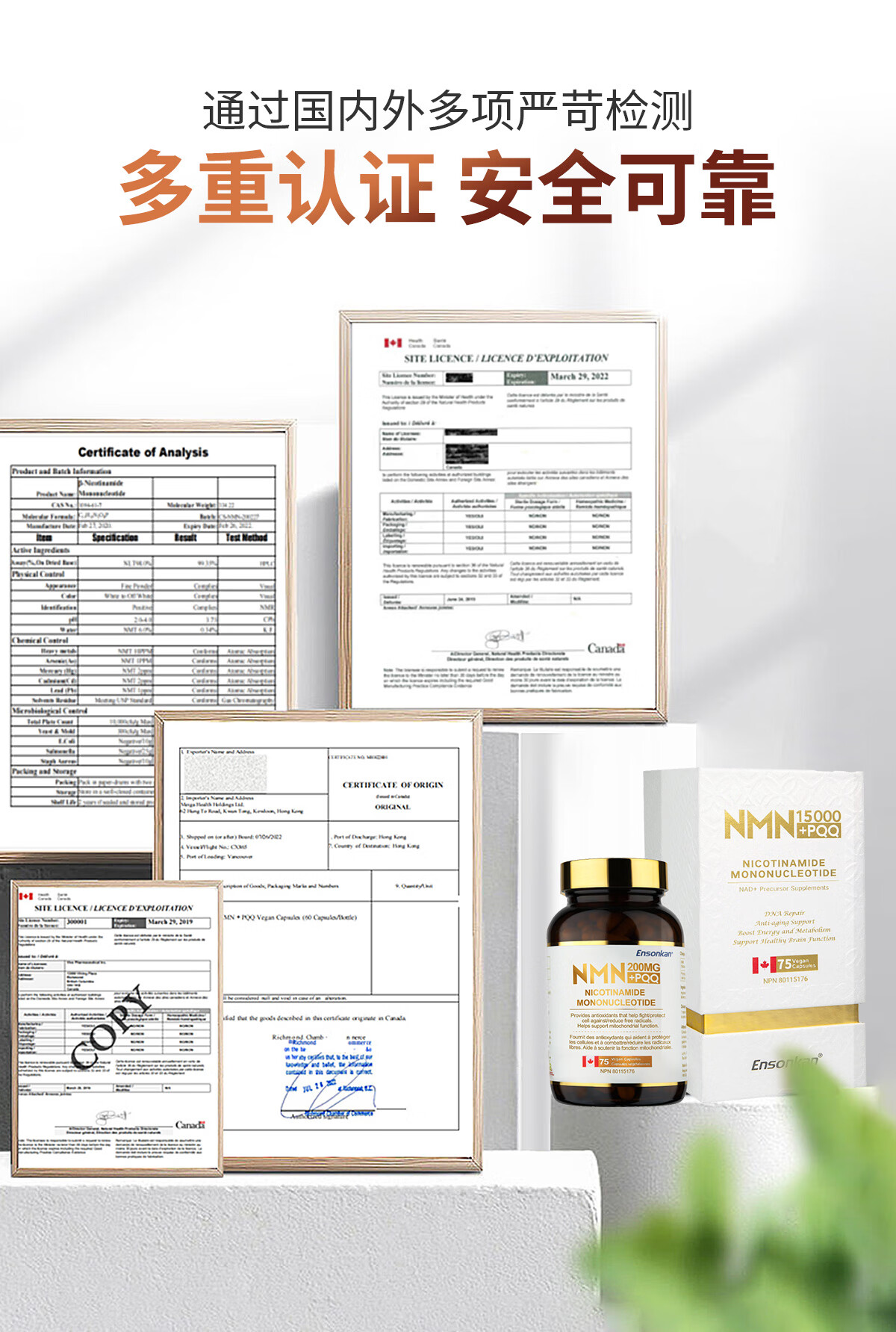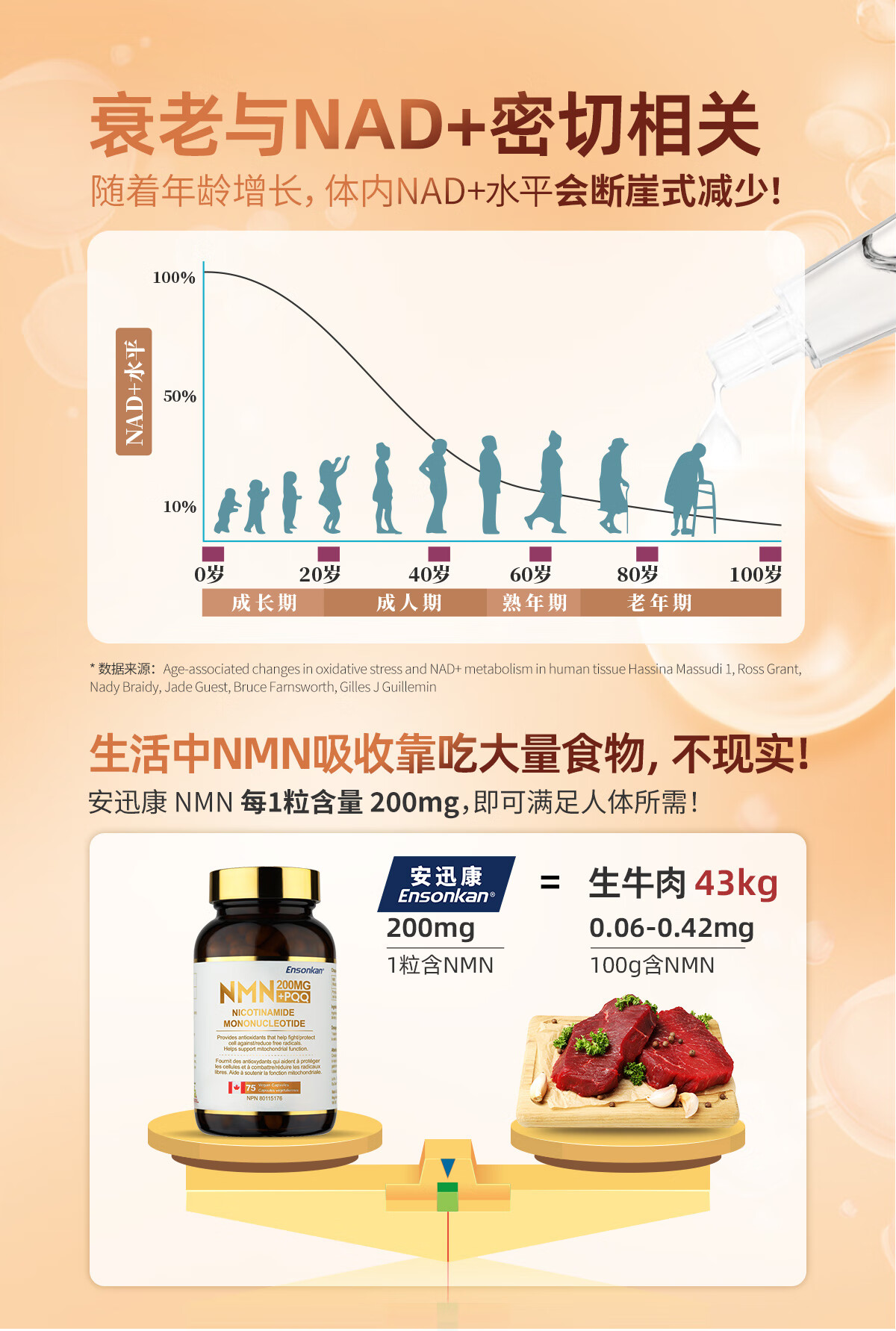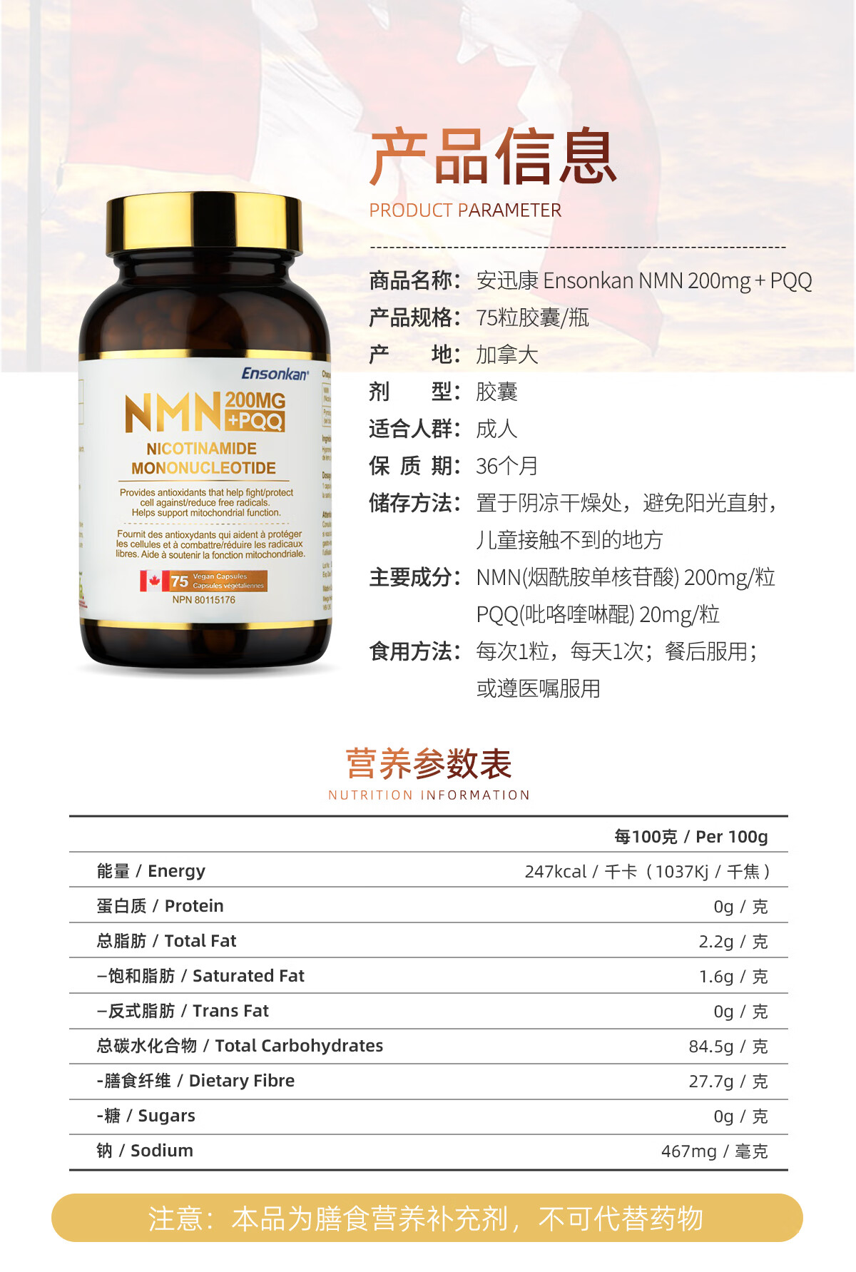 Ensonkan安迅康NMN15000+PQQ胶囊加拿大原装进口β-烟酰胺单核苷酸nad补充 1瓶装【初步调理 日常养护】