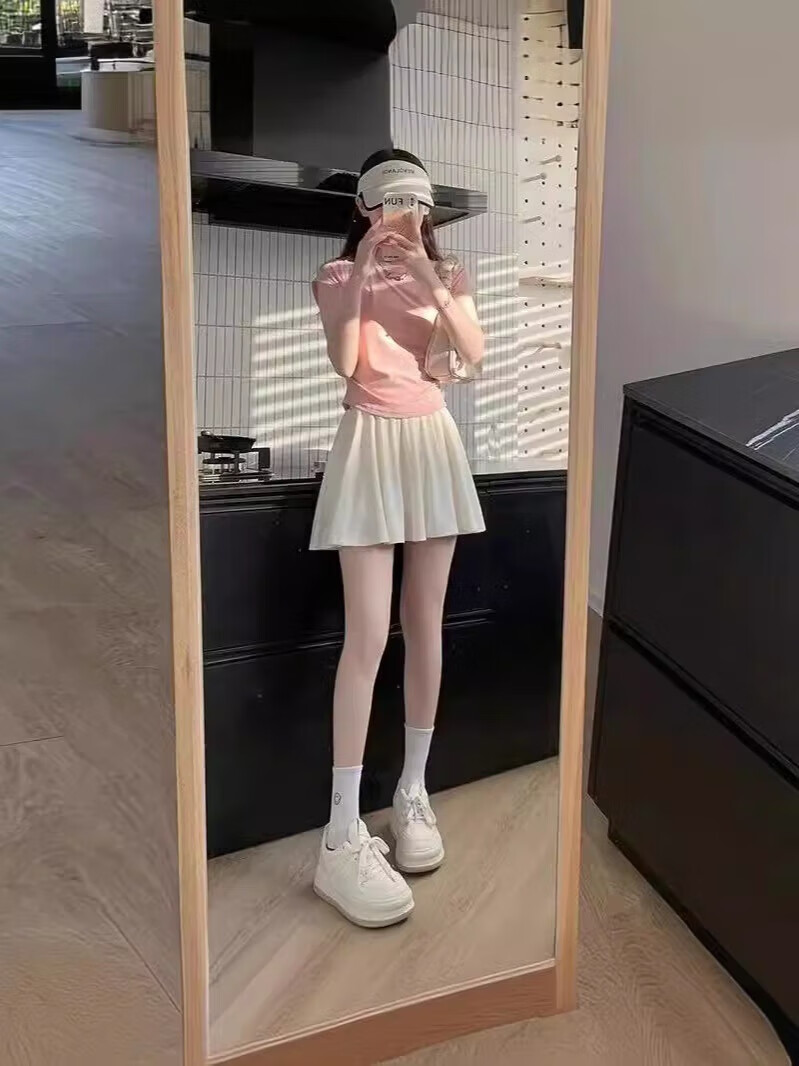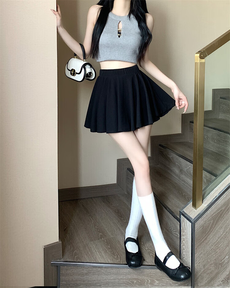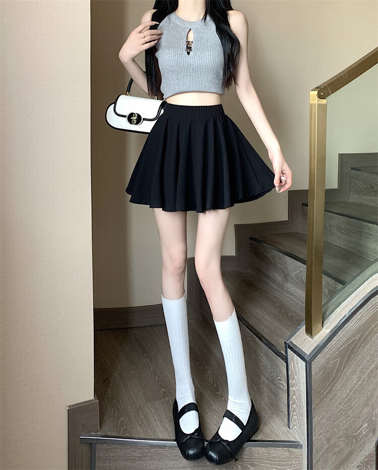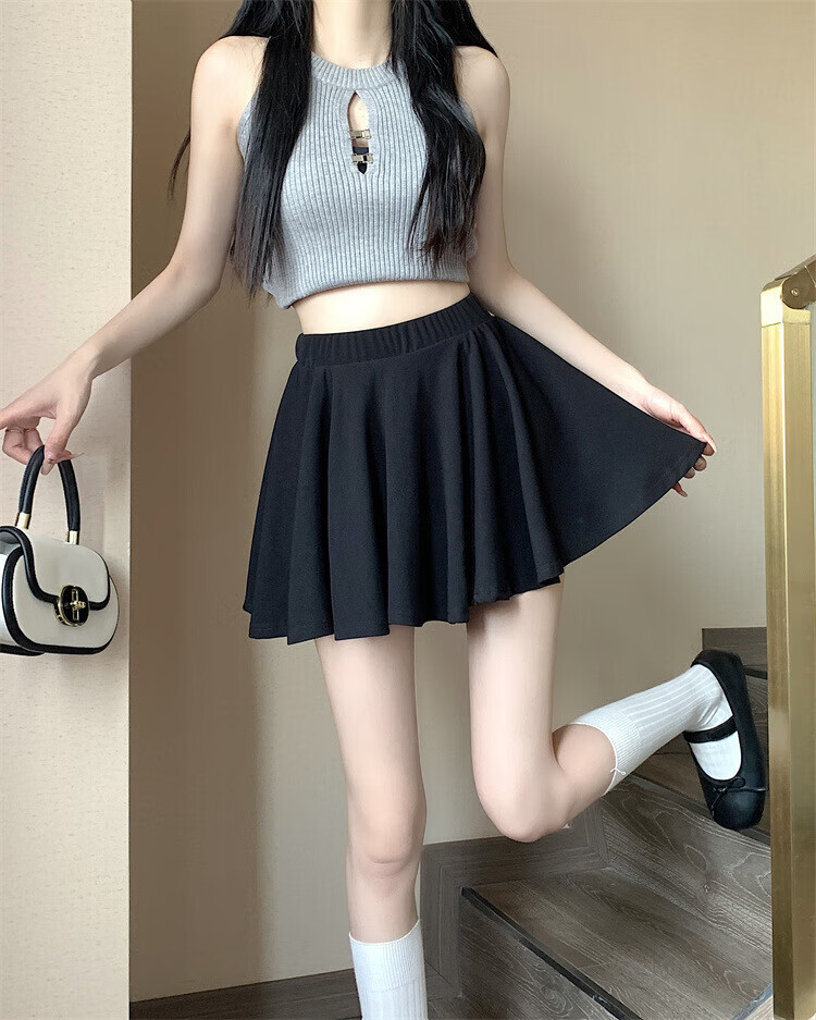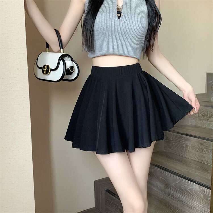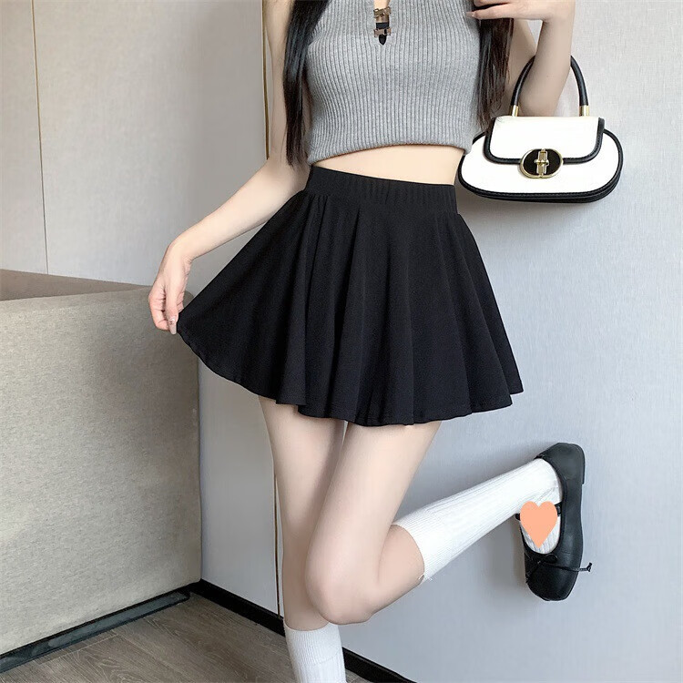 思织沁【精选】黑色短裙女士新款半身裙高腰A字百褶裙自带安全裤半身裙 黑色 L (80-120斤)