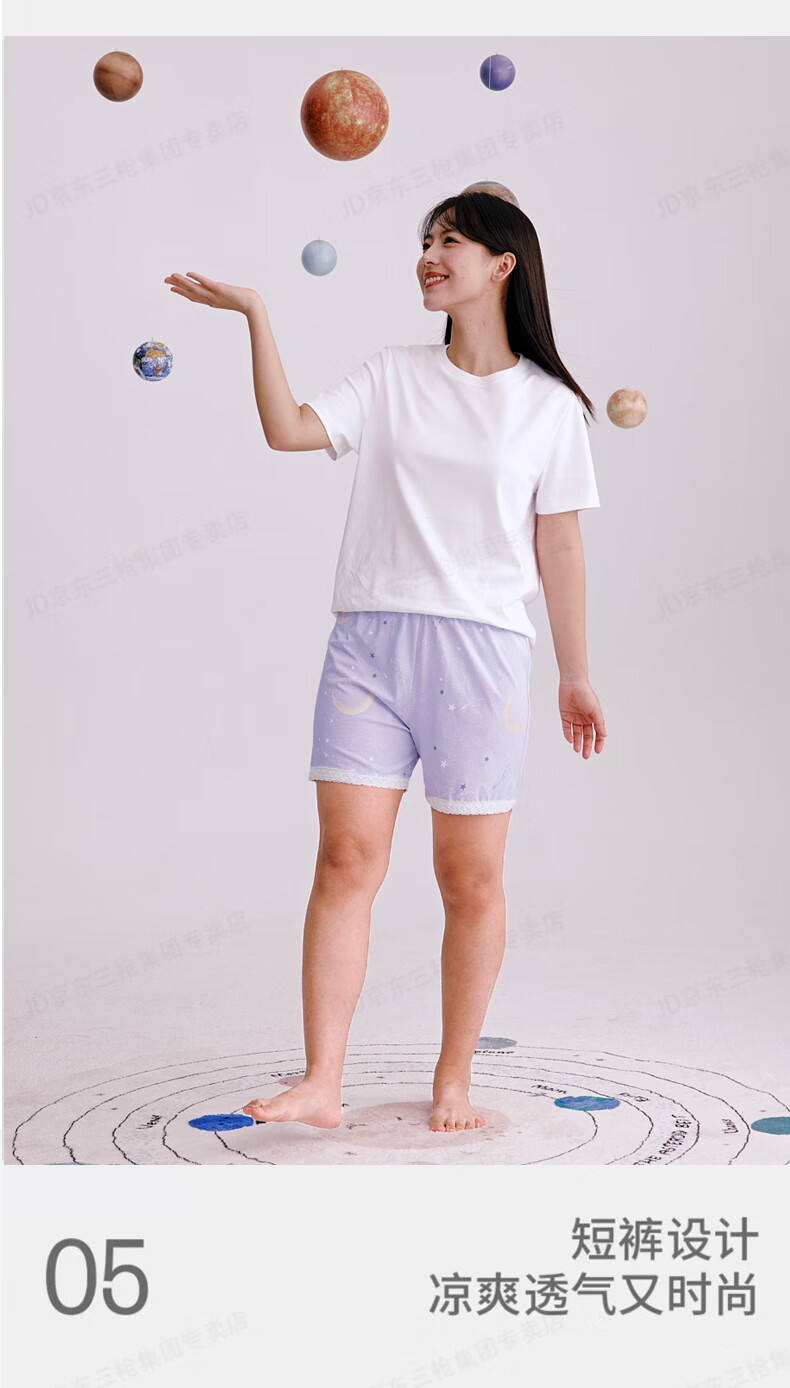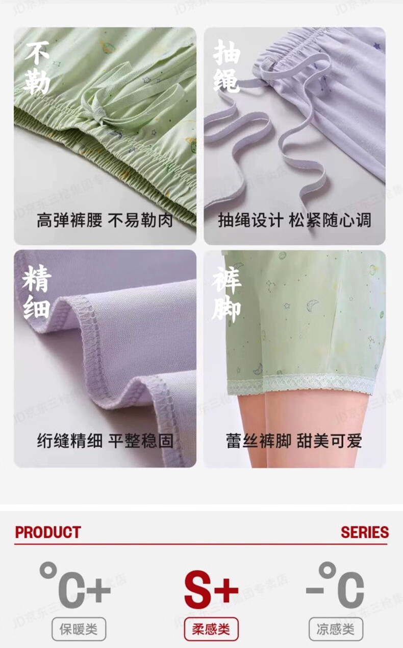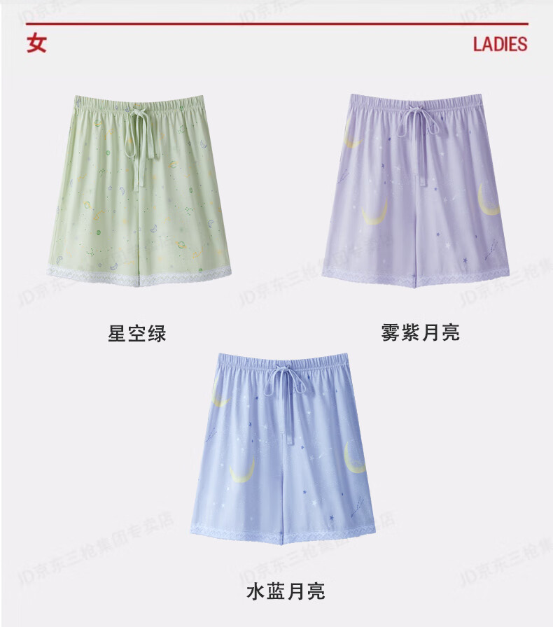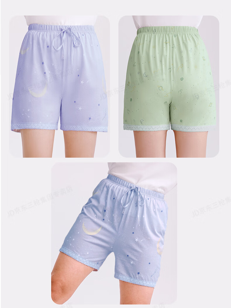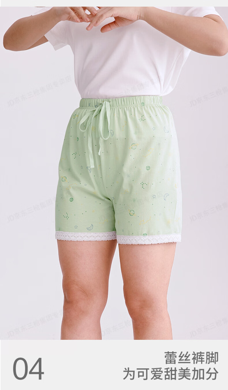 三枪春夏全棉睡裤女士薄款甜美风短裤透气可外穿宽松高腰纯棉家居裤 水蓝月亮 3XL (180/105)