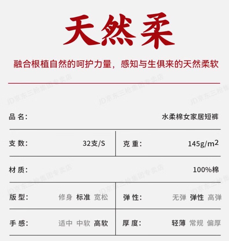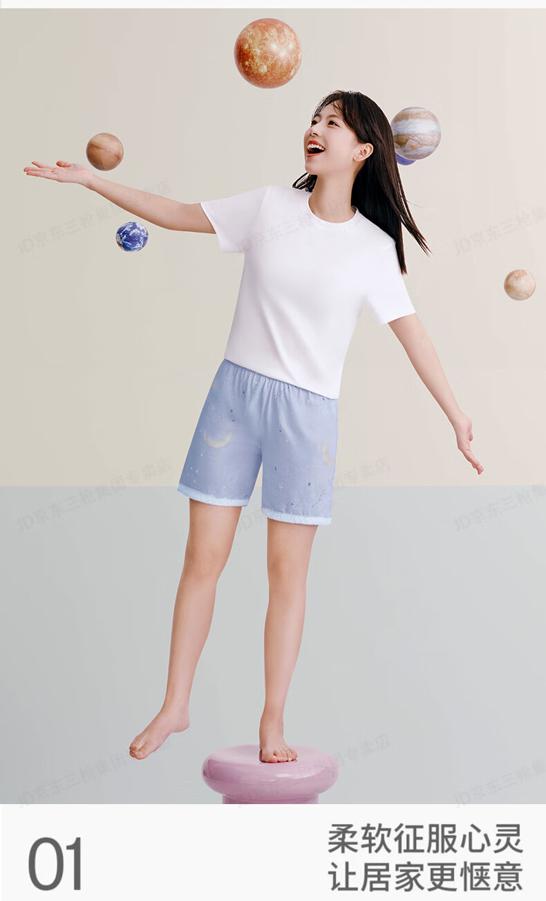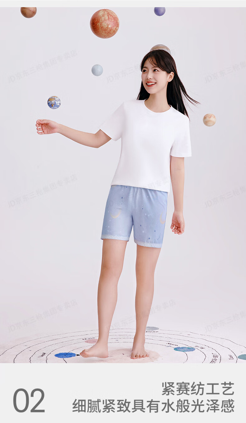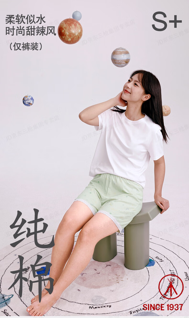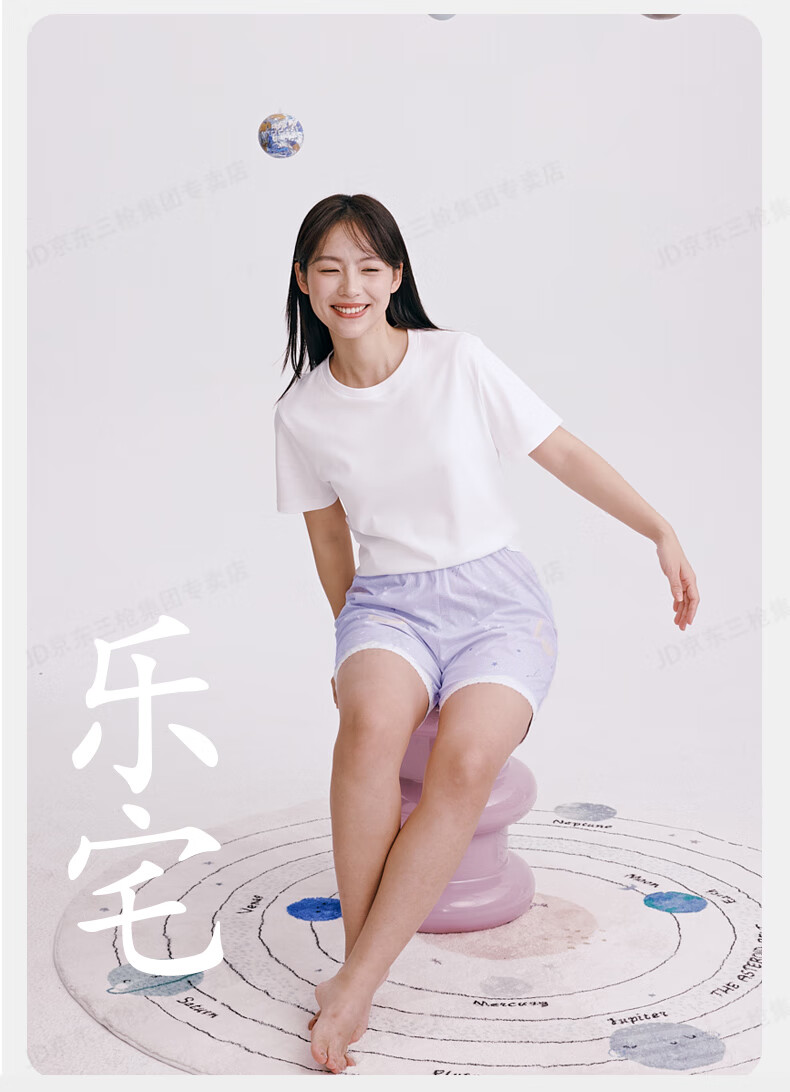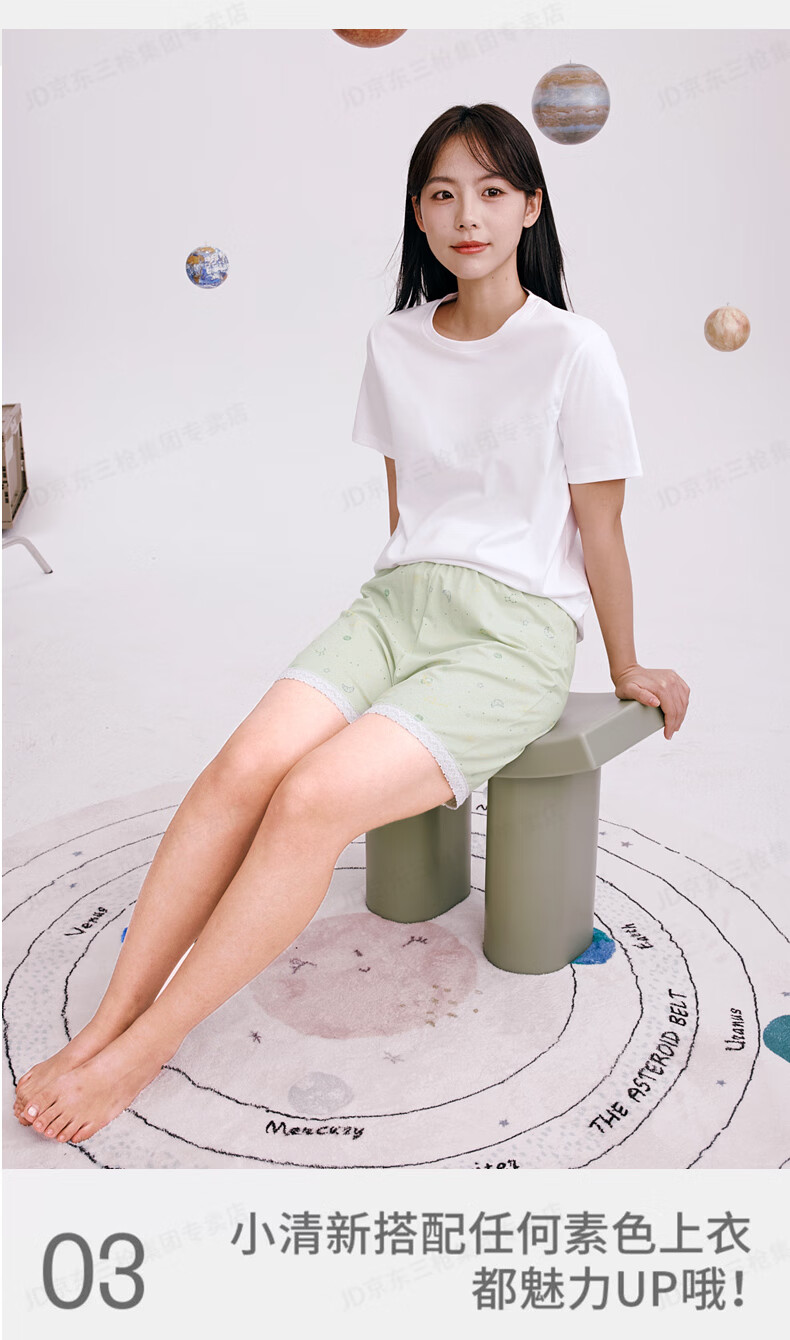 三枪春夏全棉睡裤女士薄款甜美风短裤透气可外穿宽松高腰纯棉家居裤 水蓝月亮 3XL (180/105)