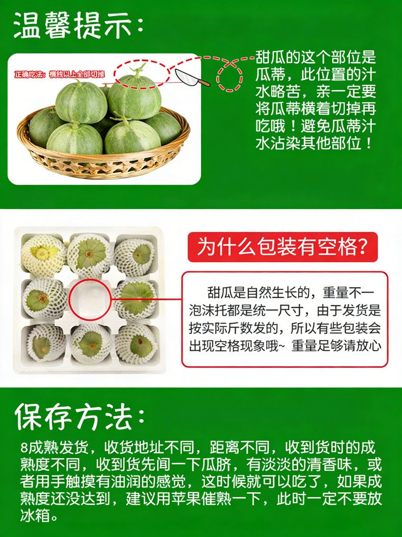 飘香果度山东头茬花蕾花美人甜瓜香甜多汁新鲜现摘 净重4.8斤中果【单果200g+】