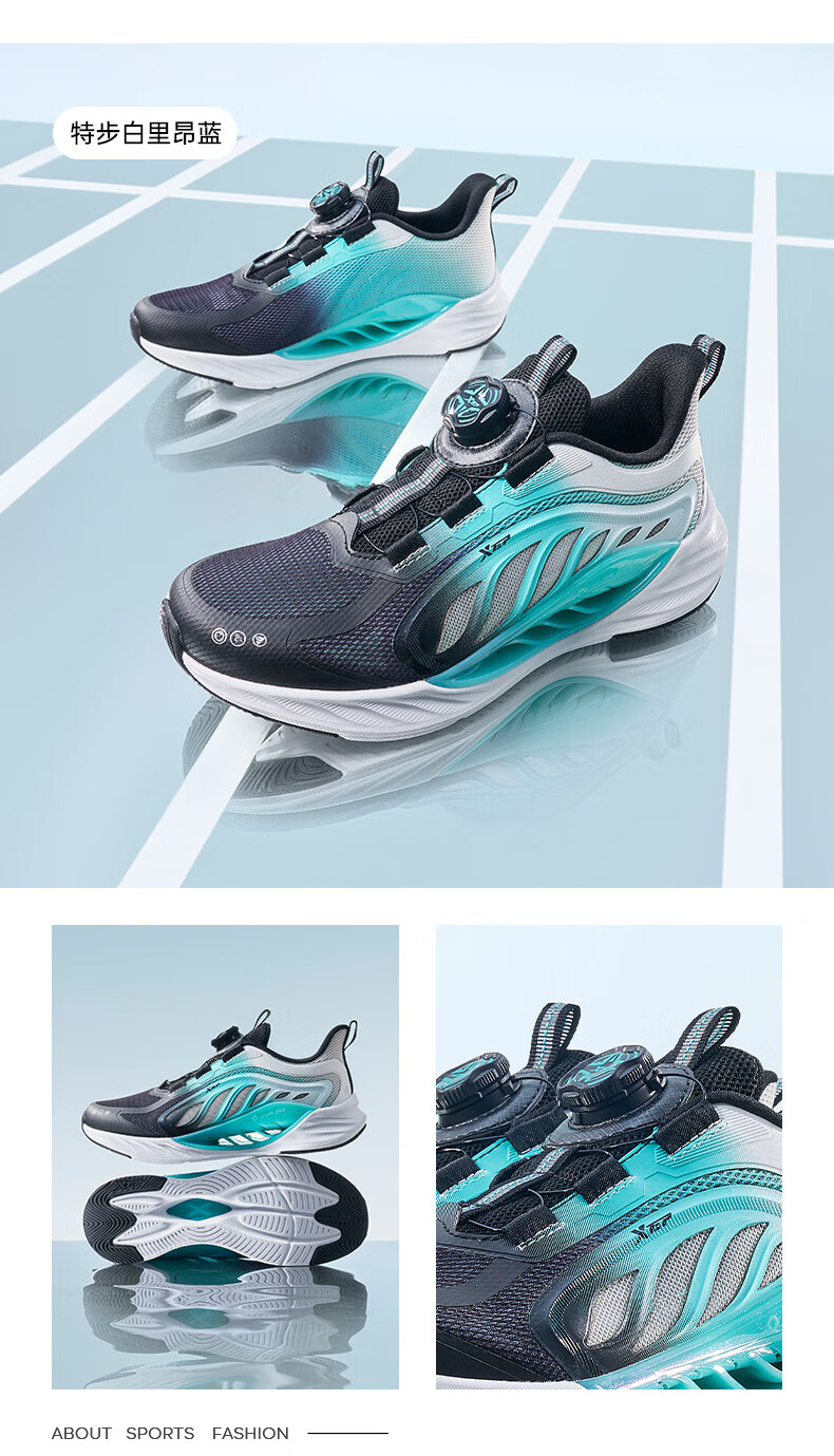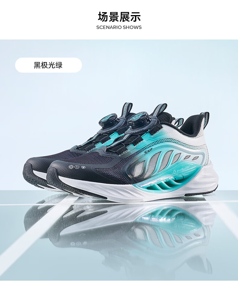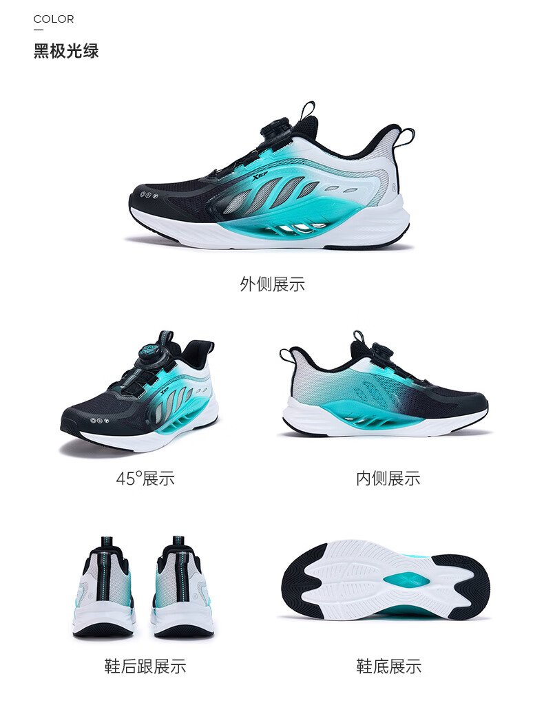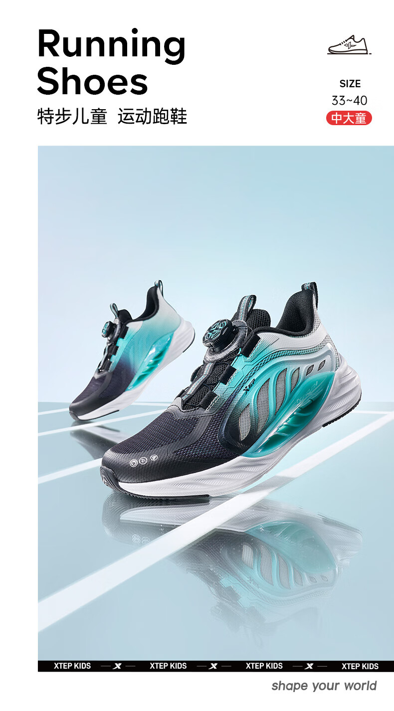 特步(XTEP)【氢风8.0】儿童童鞋男小童透气旋转扣跑鞋 黑/极光绿 33
