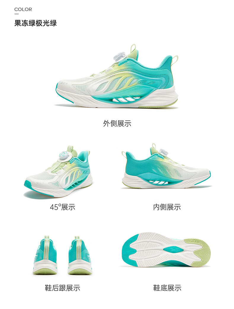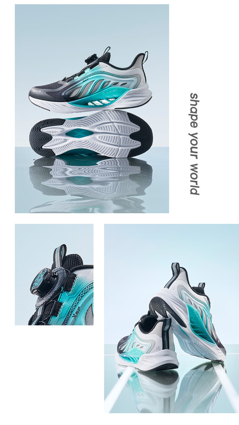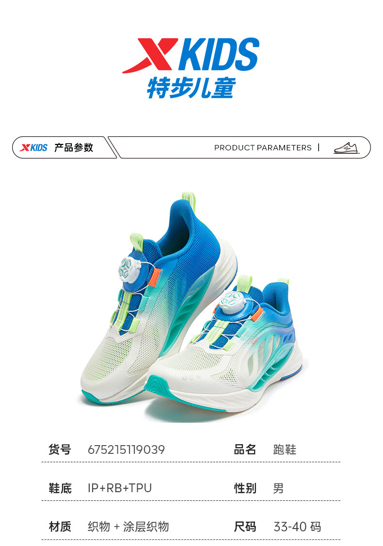 特步(XTEP)【氢风8.0】儿童童鞋男小童透气旋转扣跑鞋 黑/极光绿 33