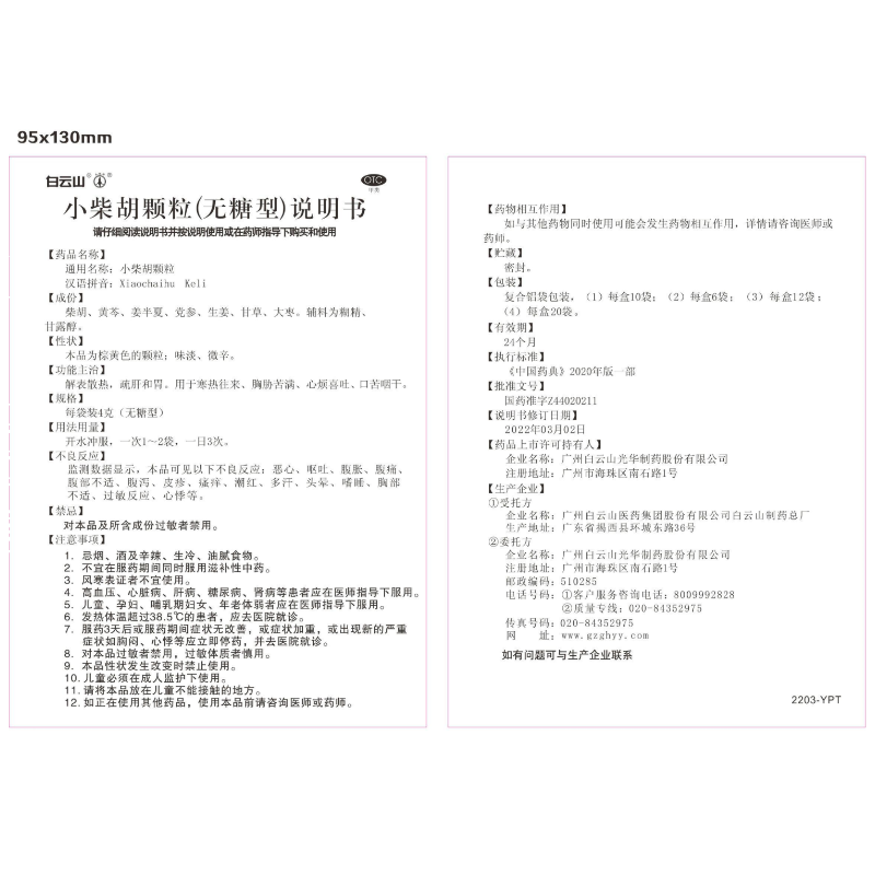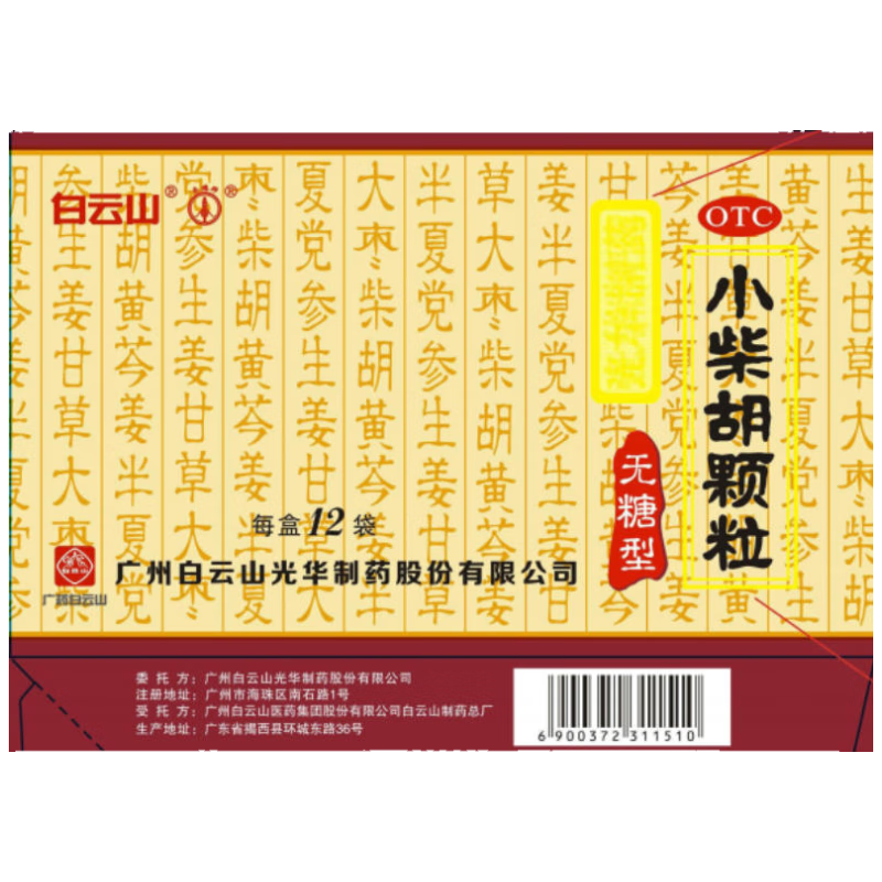 白云山 小柴胡颗粒 无糖12袋*1盒解表散热 感冒咳嗽 寒热往来 食欲不振 胸闷喜呕 感冒药