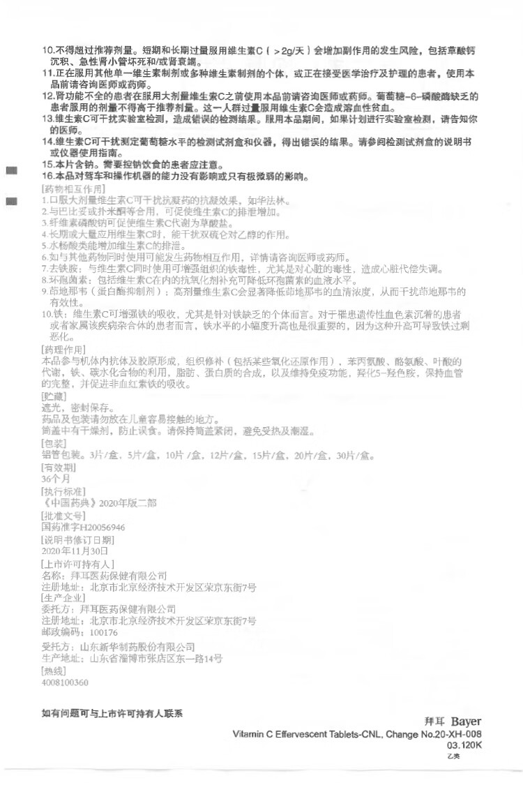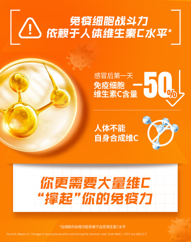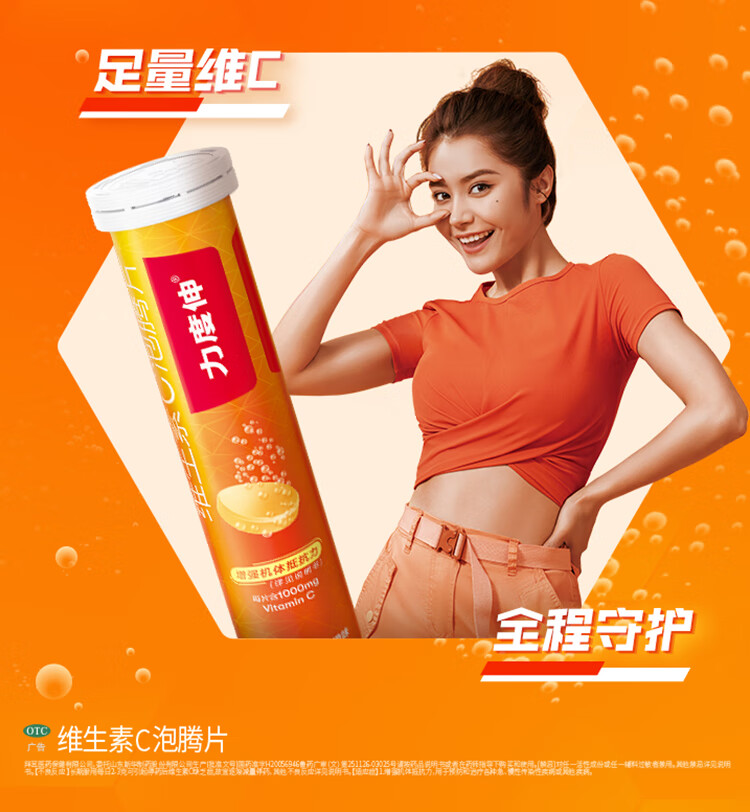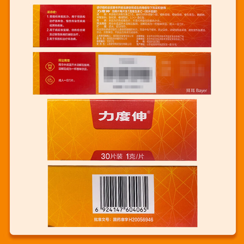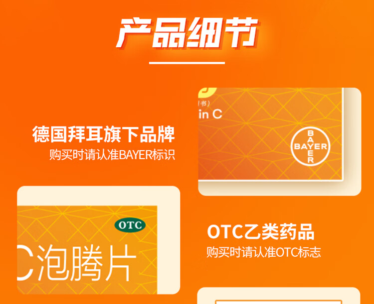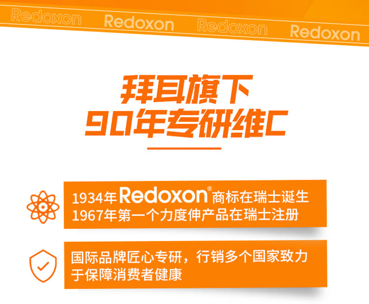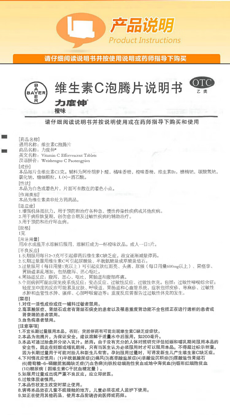 拜耳力度伸原研药 维C泡腾片橙味1g*30片 1盒装 增强免疫力抵抗力高含量VC换季抗疲劳预防感冒 补充维生素C