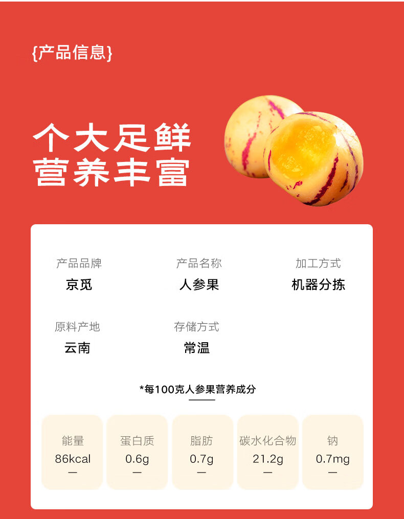 京觅云南石林人参果水果人叁果黄肉圆果净重2.8斤装单果50g+源头直发