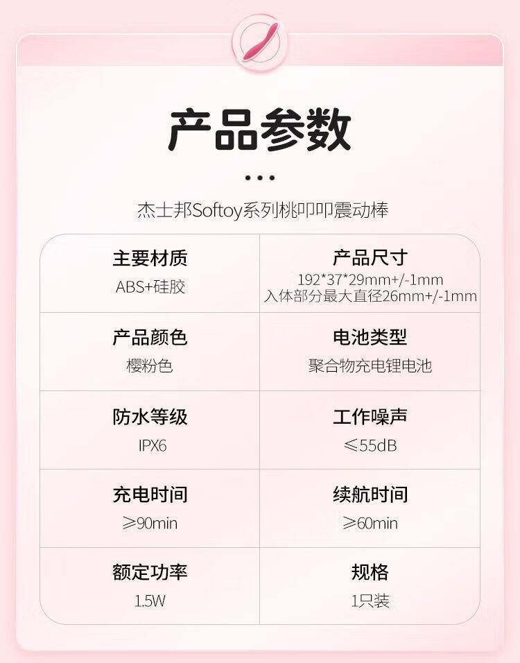 杰士邦Softoy系列桃叩叩细型震动棒女用G点自慰按摩器成人情趣用 杰士邦Softoy系列桃叩叩细型-单