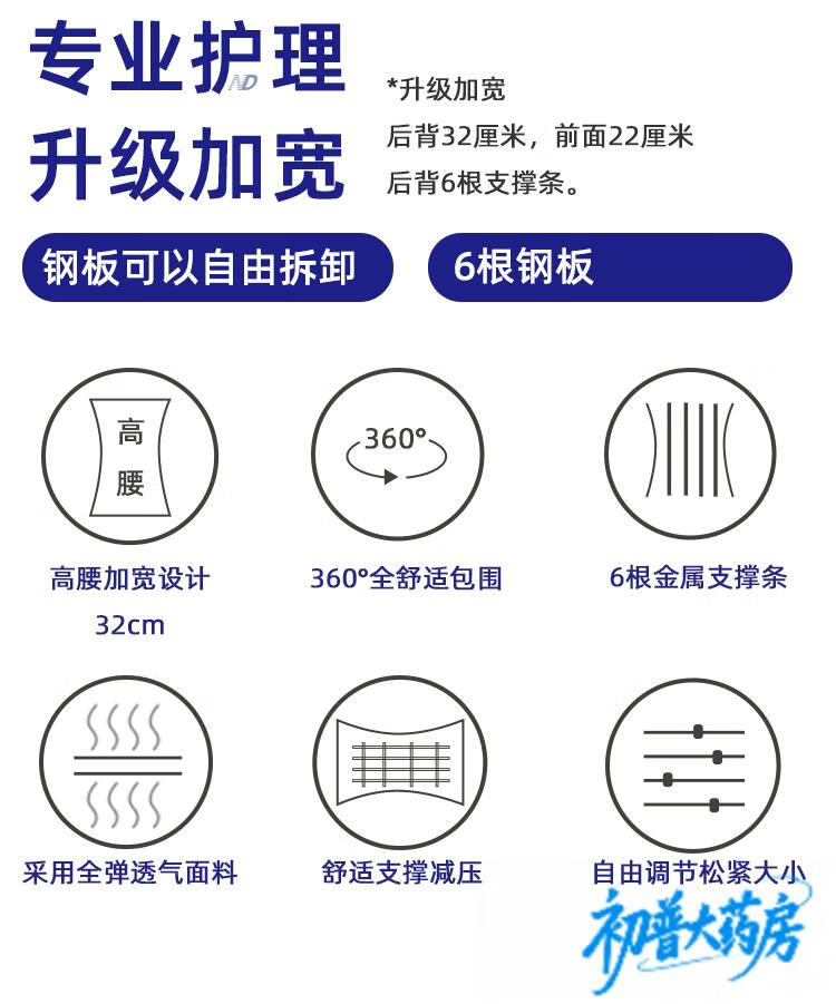 通用护腰带腰椎胸椎 损伤手术后 腰围腰托腰部固定支具 6根钢板 加宽型腰椎胸椎护腰带【6根钢板】 L