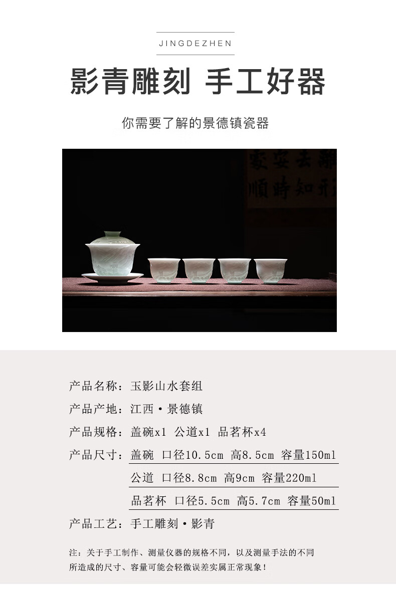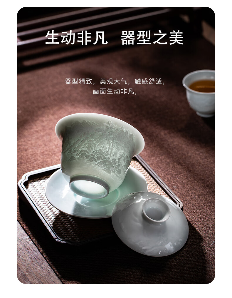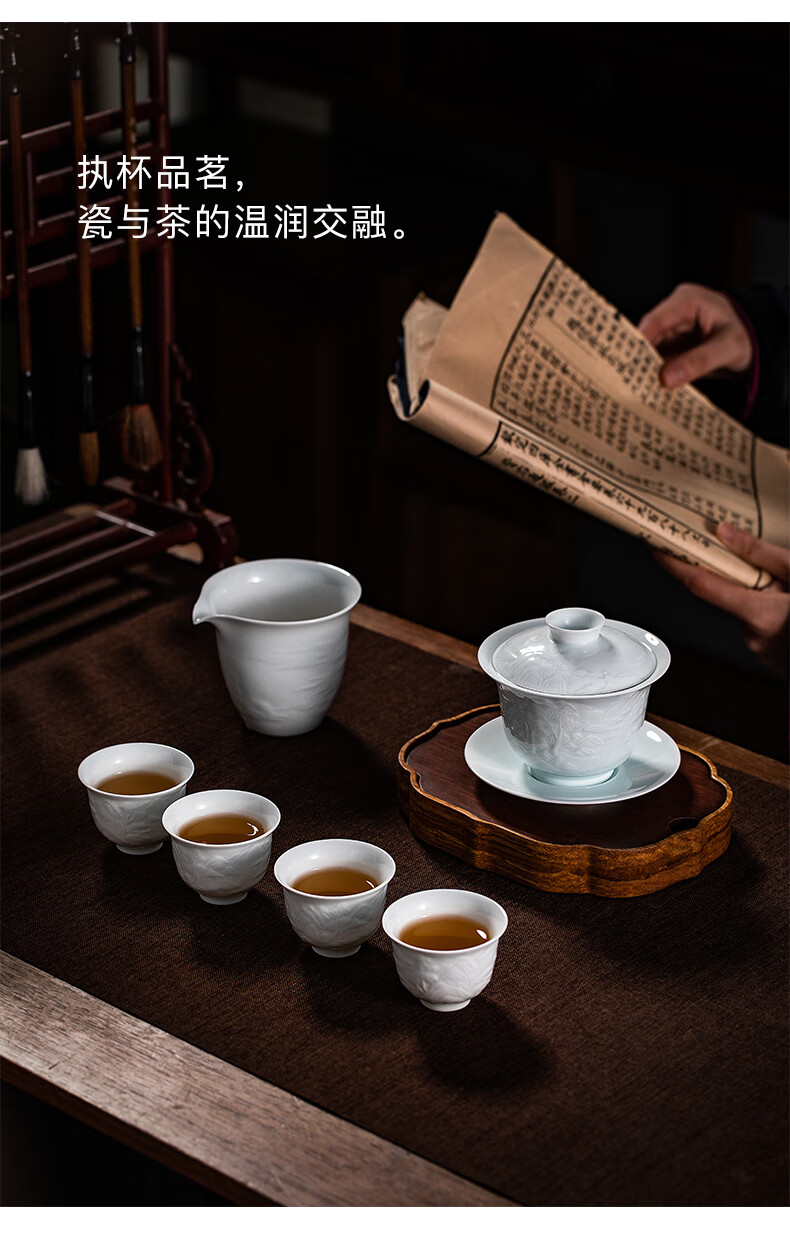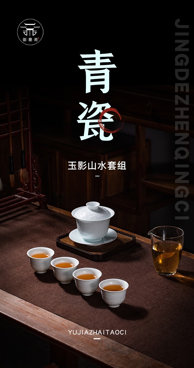 御嘉斋景德镇茶具套装轻奢高档陶瓷团建茶器家用套装伴手礼物定制LOGO 南山悠然头套组(1盖碗1公道4杯)