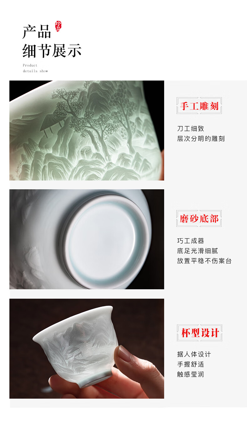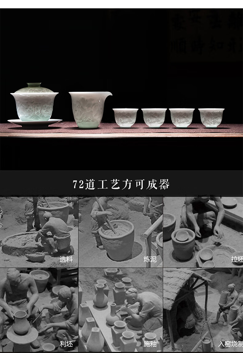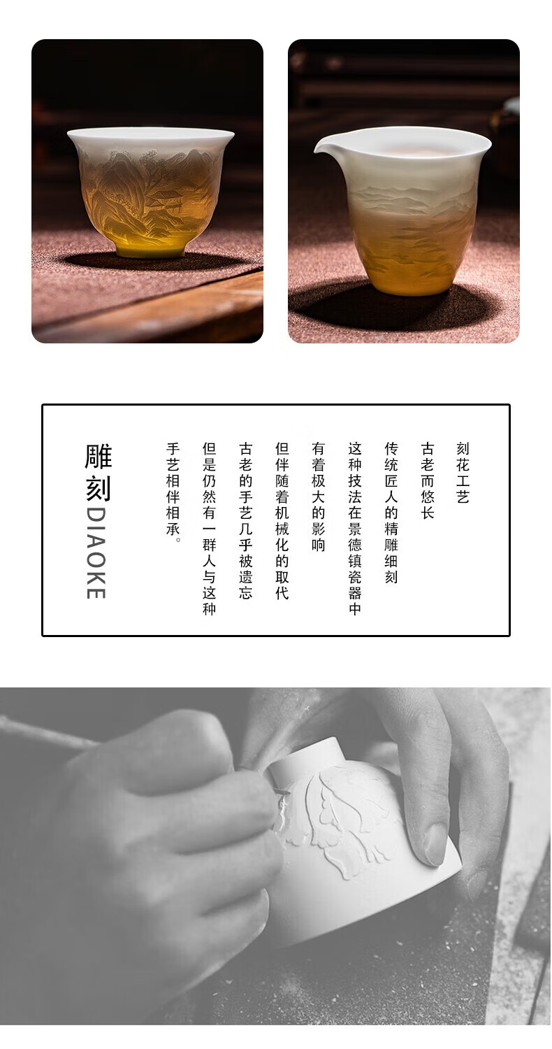 御嘉斋景德镇茶具套装轻奢高档陶瓷团建茶器家用套装伴手礼物定制LOGO 南山悠然头套组(1盖碗1公道4杯)