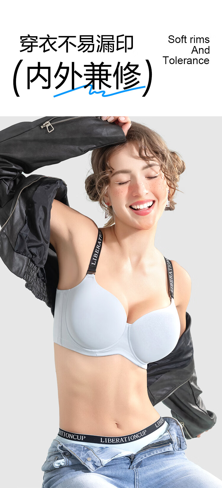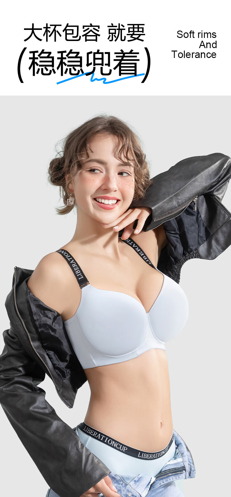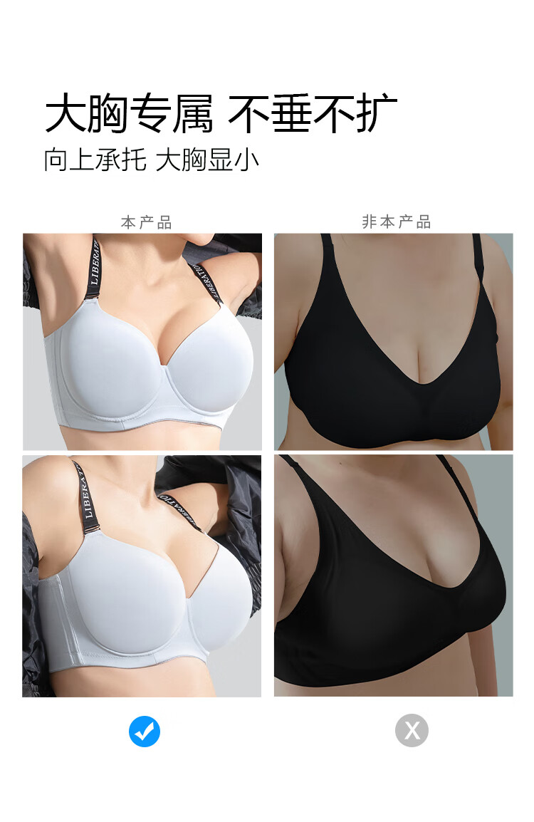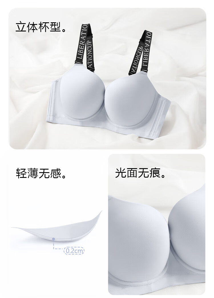 糖粒【海陆同款】无痕内衣女大码文胸胖mm大胸显小聚拢防下垂薄胸罩 凝脂肤 多+纯肤色同色肩带一副 85B
