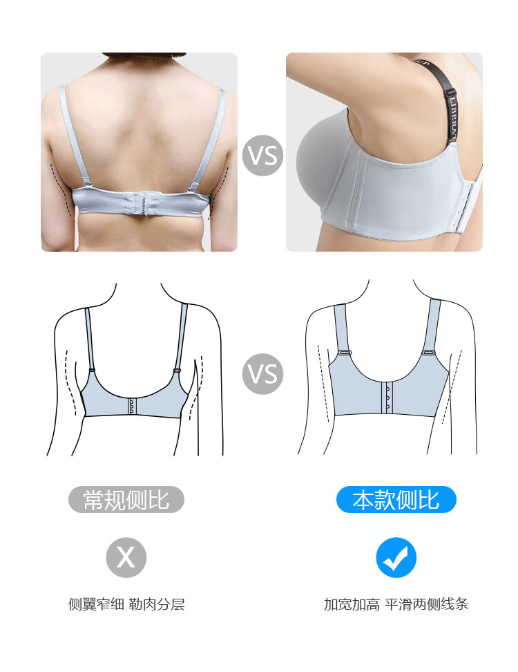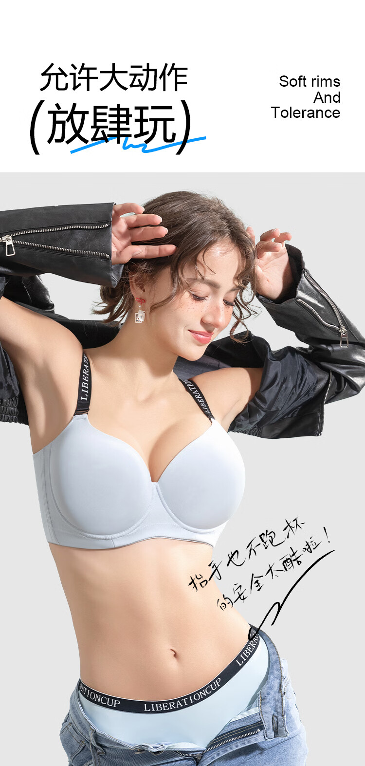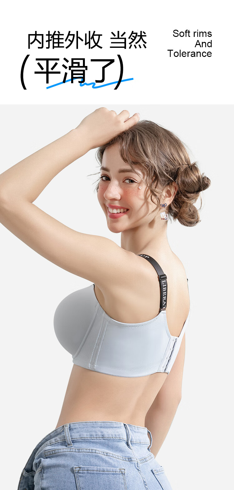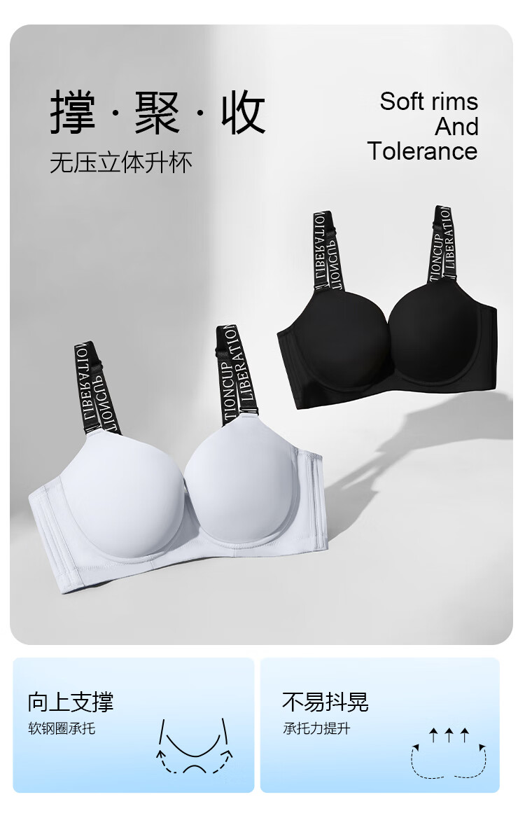 糖粒【海陆同款】无痕内衣女大码文胸胖mm大胸显小聚拢防下垂薄胸罩 凝脂肤 多+纯肤色同色肩带一副 85B