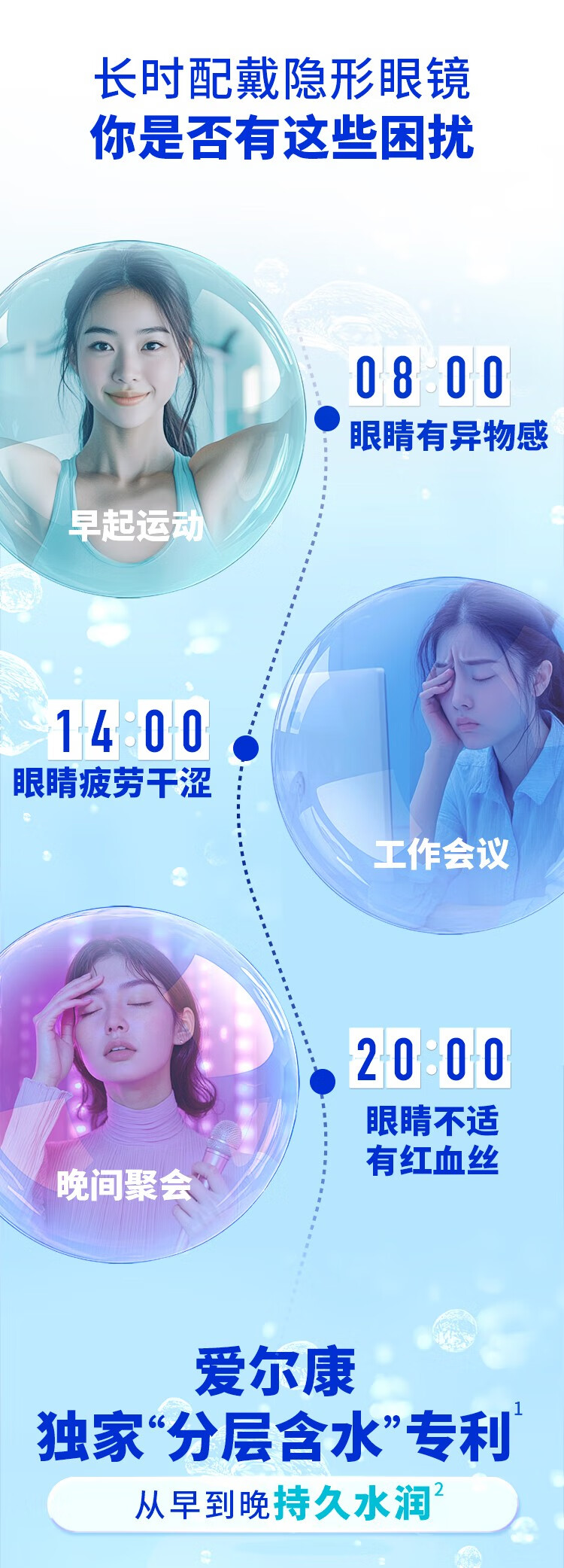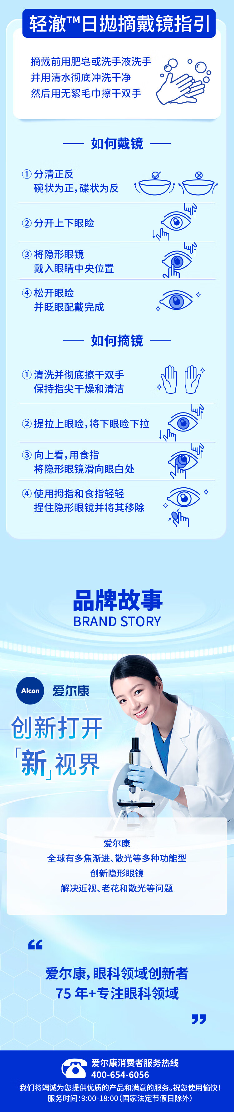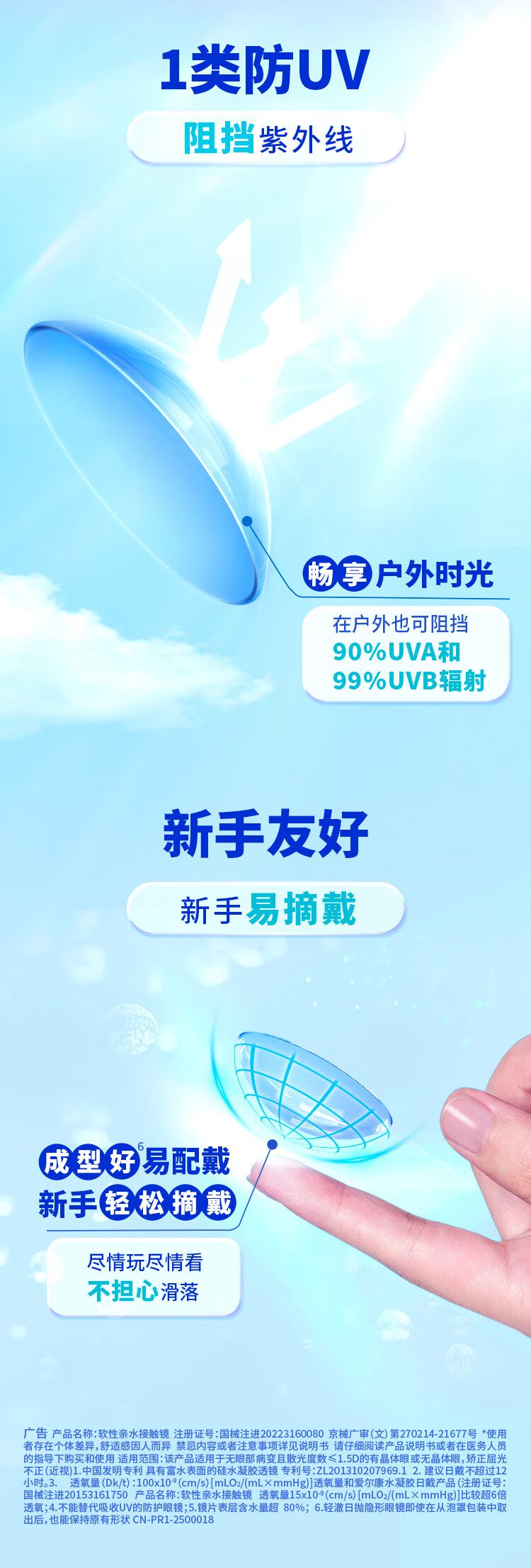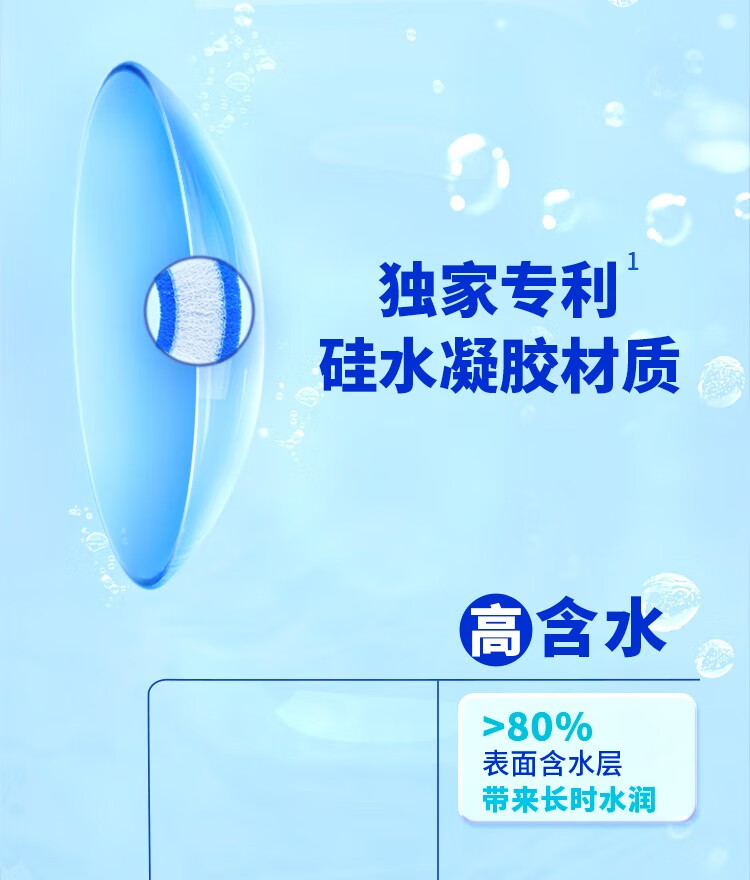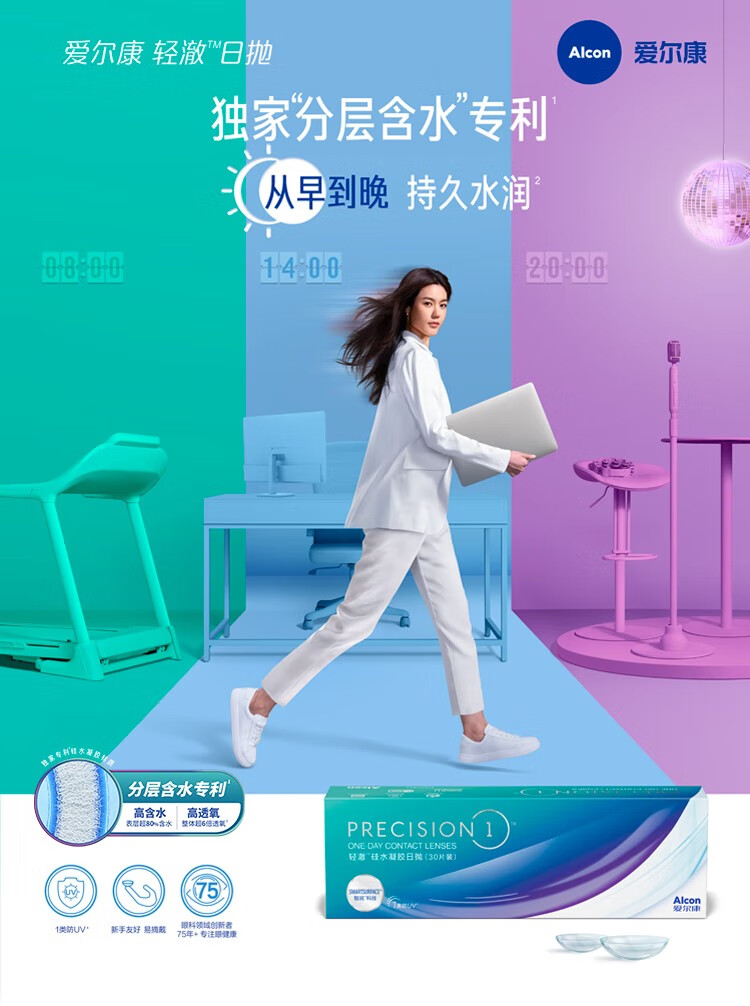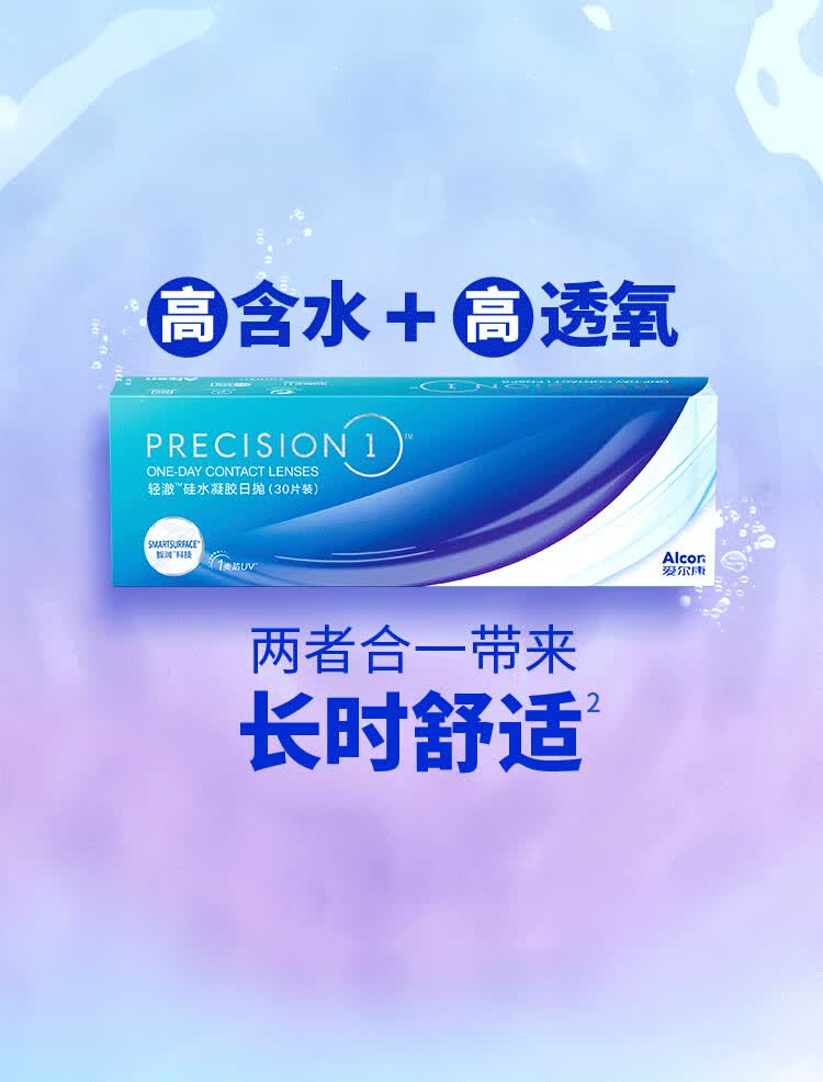 爱尔康轻澈硅水凝胶日抛30片 防UV高透氧水润舒适 透明近视隐形眼镜进口 850度