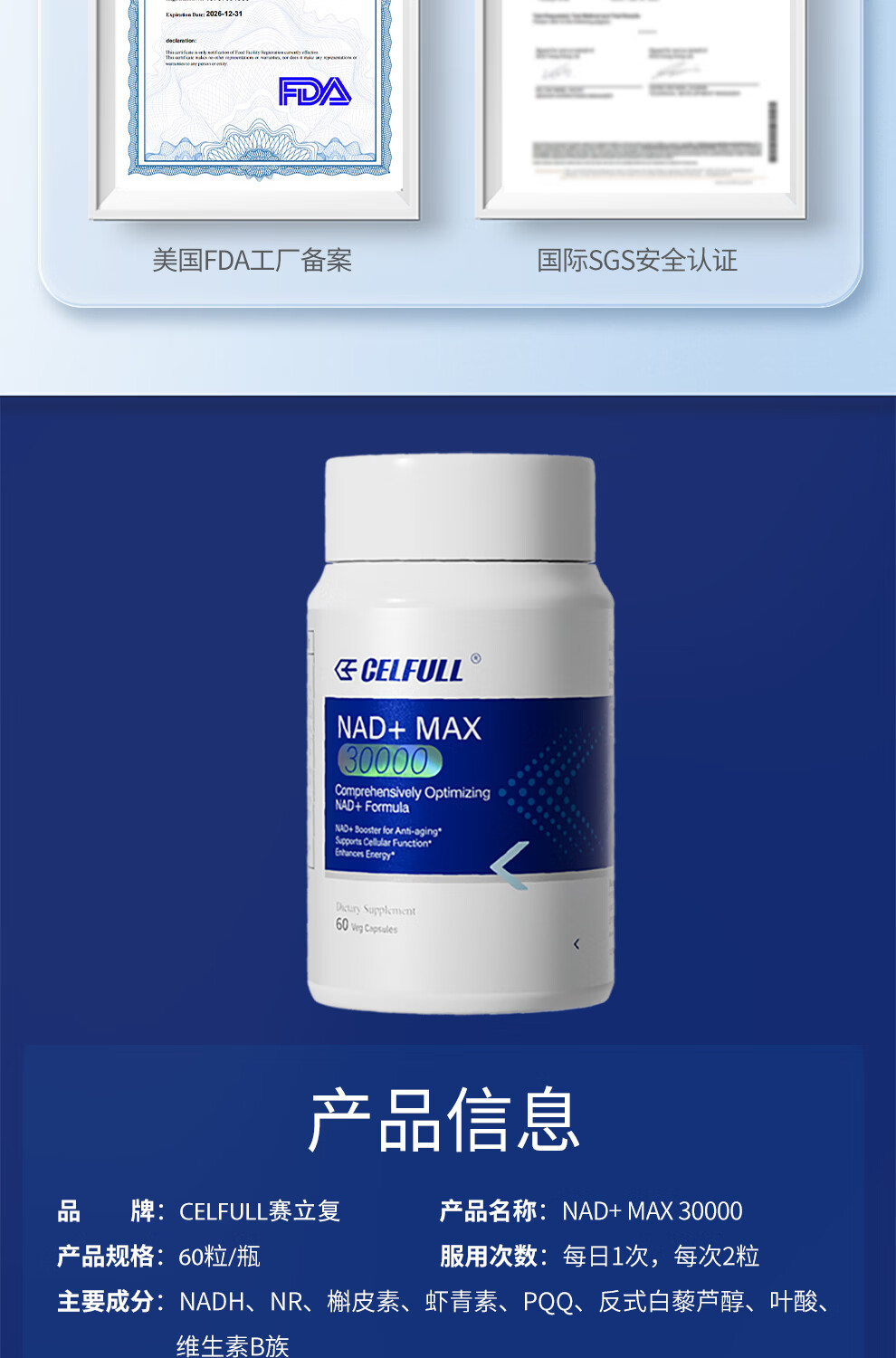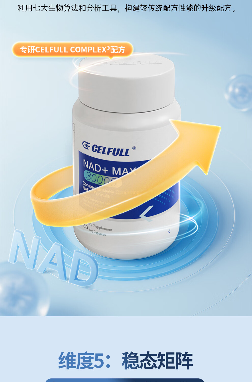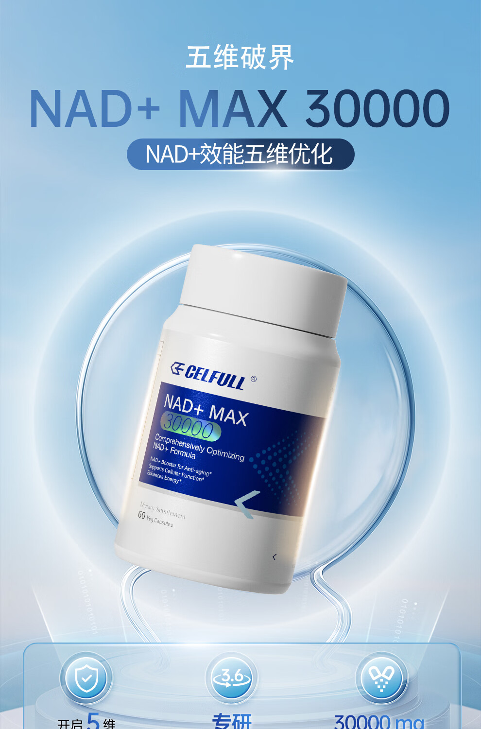 CELFULL赛立复 NAD+ MAX 30000 升级版补充NAD+营养中老年人 NAD+30000 MAX 60粒*1瓶