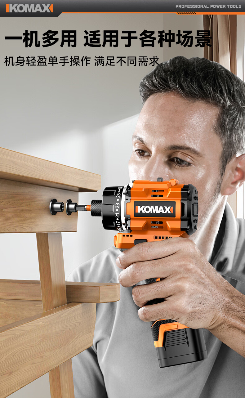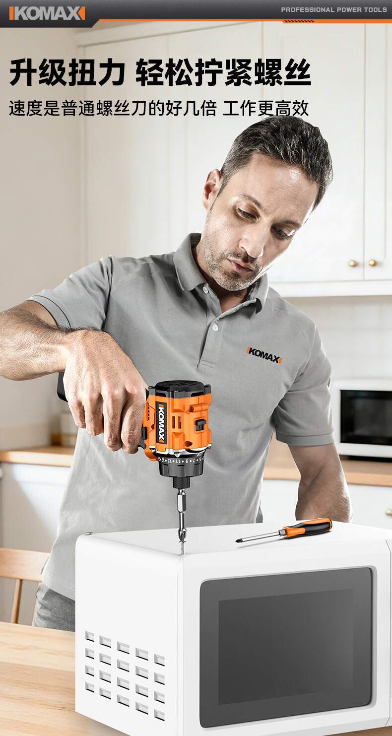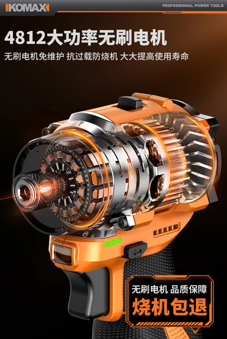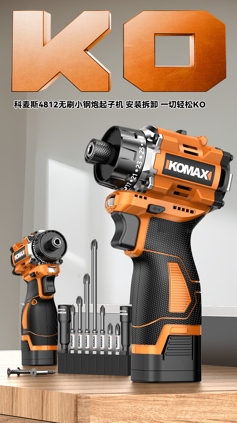 科麦斯(KOMAX)无刷锂电电动起子机充电式螺丝刀家用手钻螺丝批电动工具套装 4812无刷小钢炮起子机1电1充+2件套