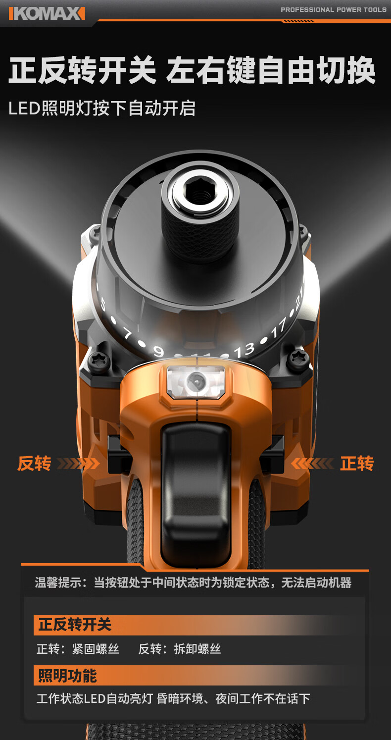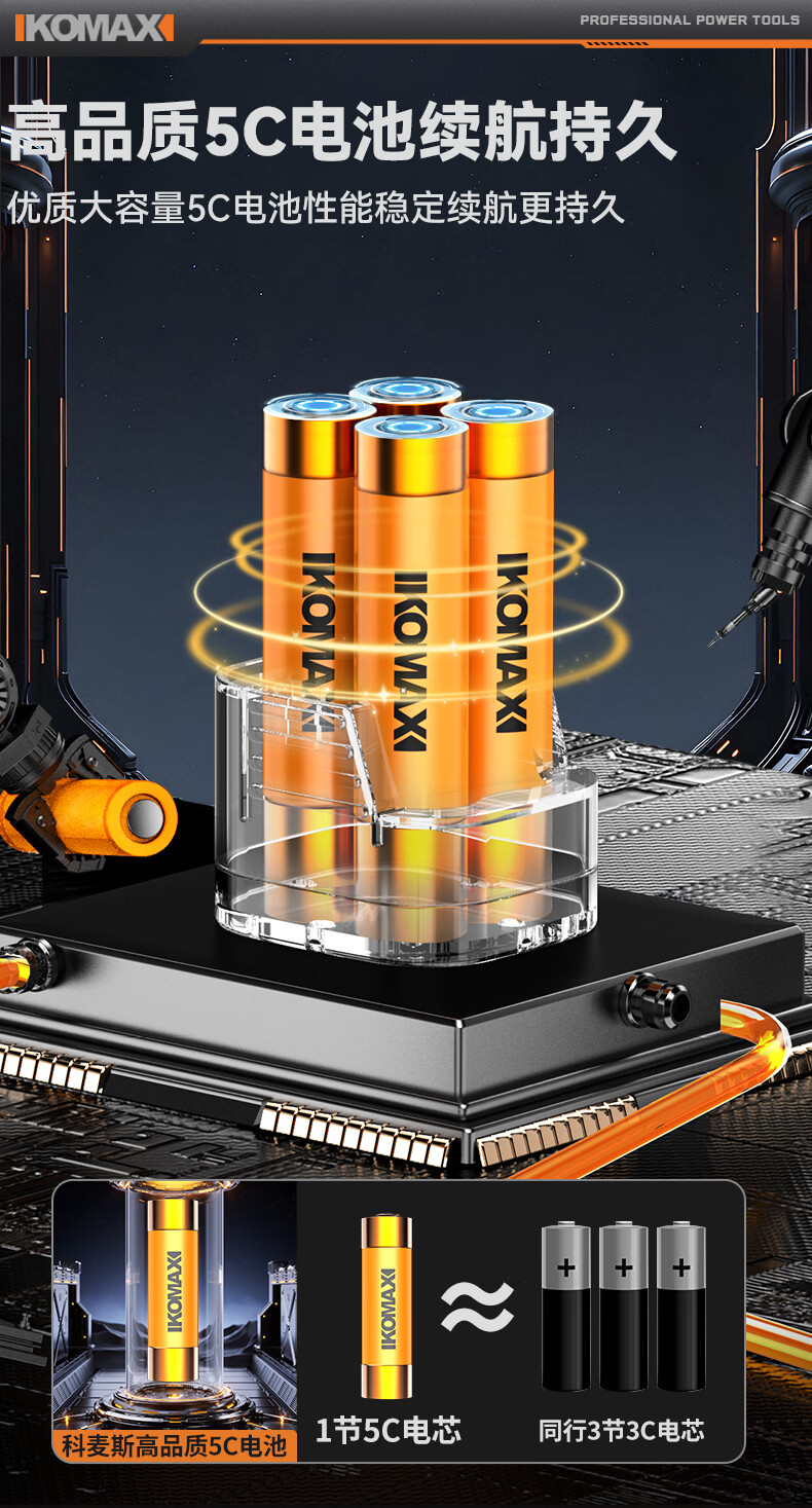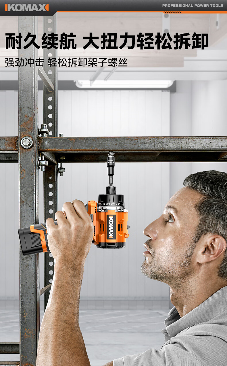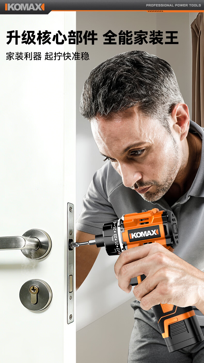 科麦斯(KOMAX)无刷锂电电动起子机充电式螺丝刀家用手钻螺丝批电动工具套装 4812无刷小钢炮起子机1电1充+2件套