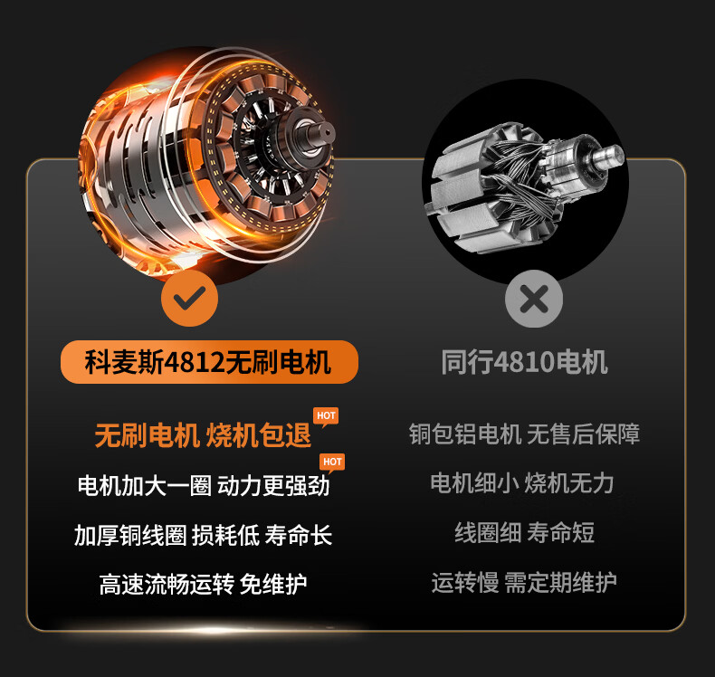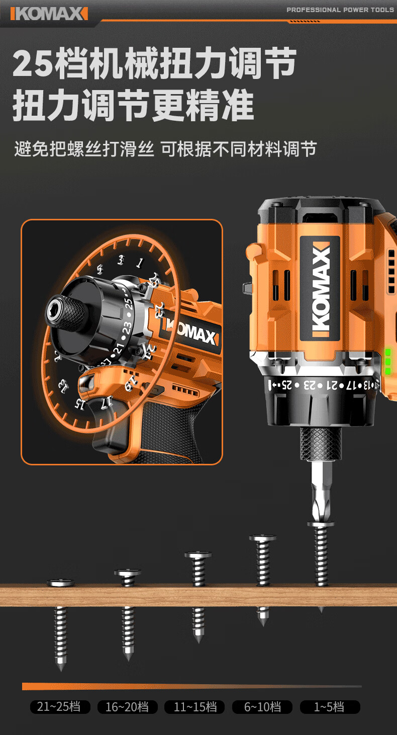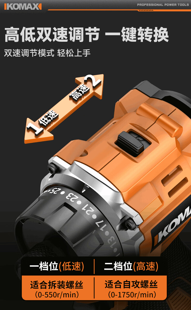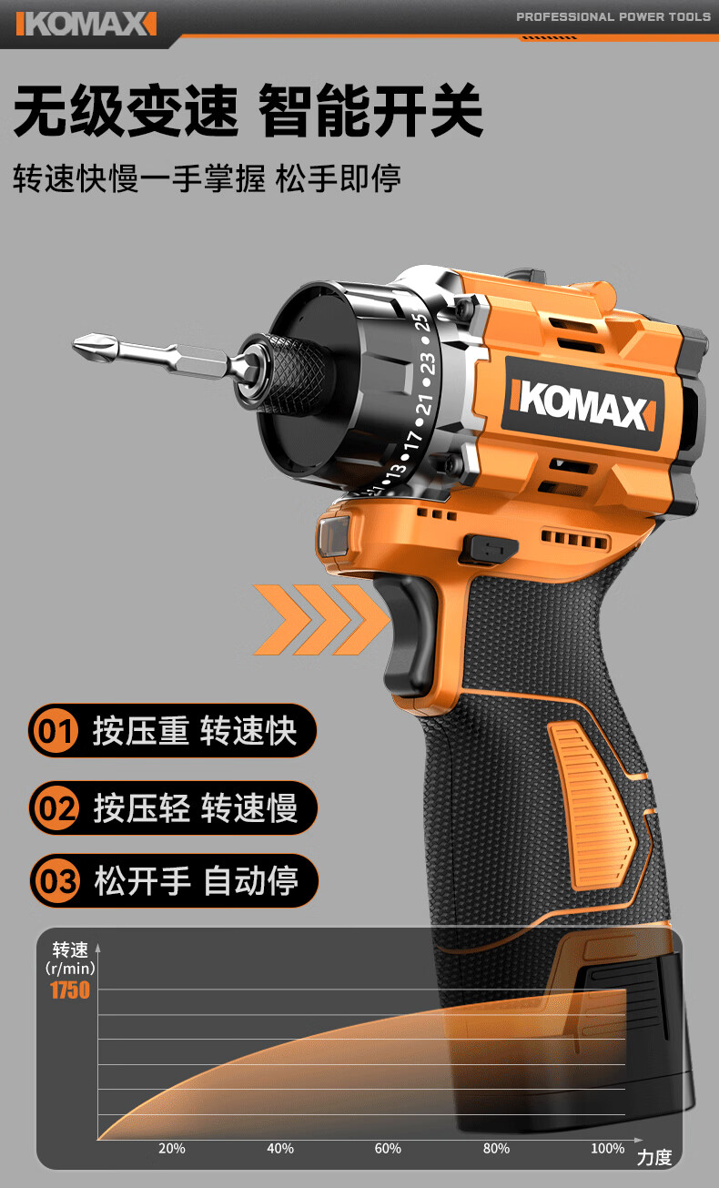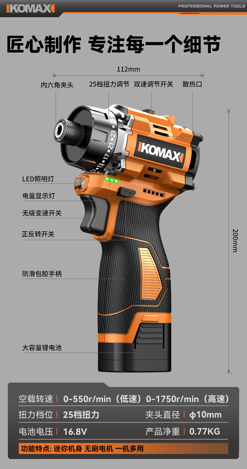 科麦斯(KOMAX)无刷锂电电动起子机充电式螺丝刀家用手钻螺丝批电动工具套装 4812无刷小钢炮起子机1电1充+2件套