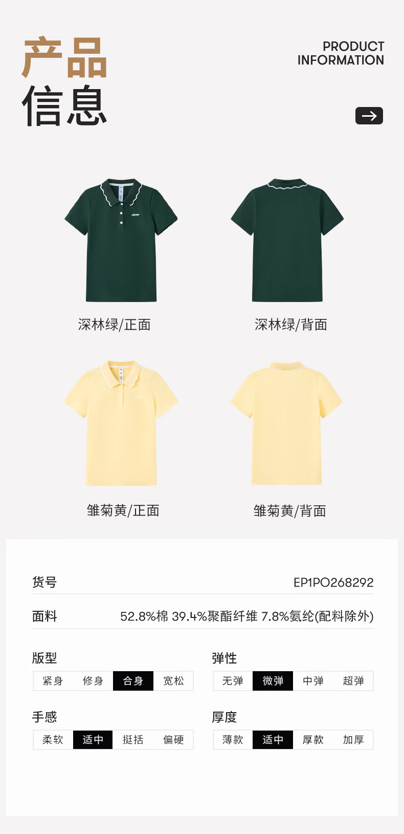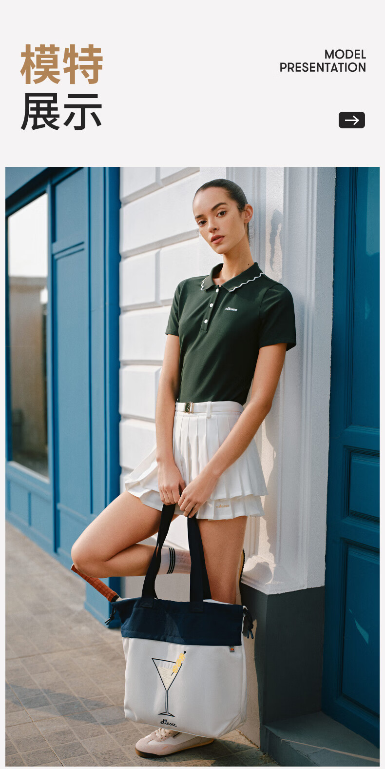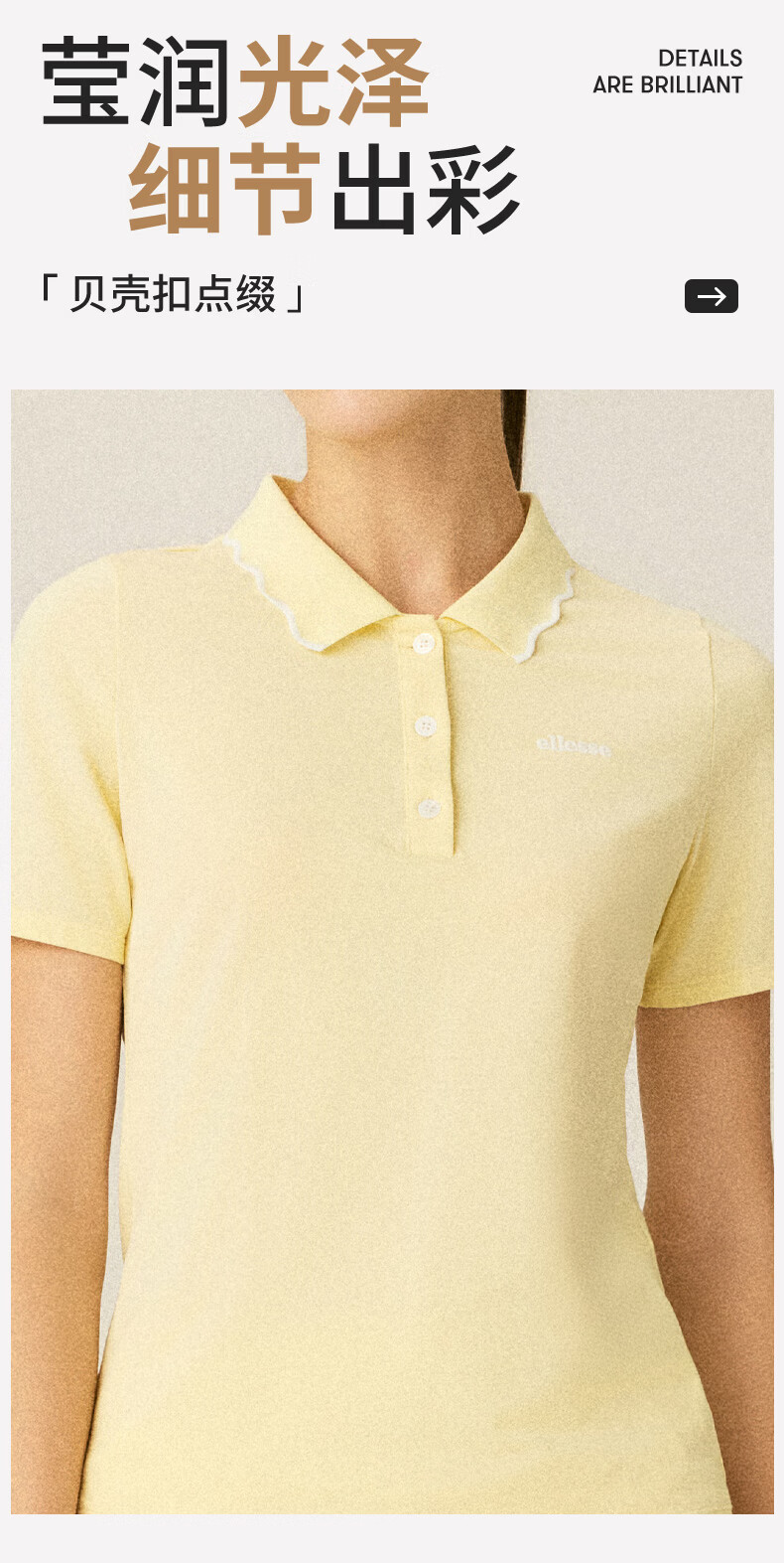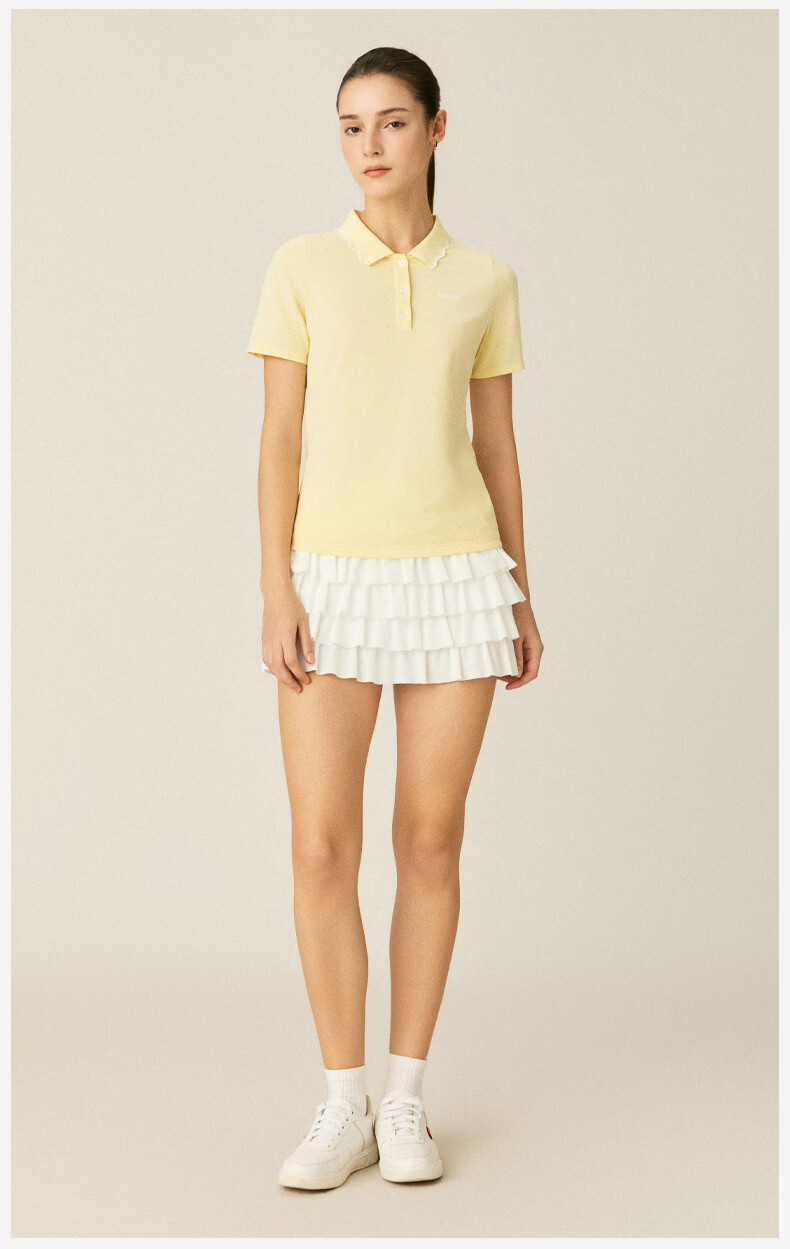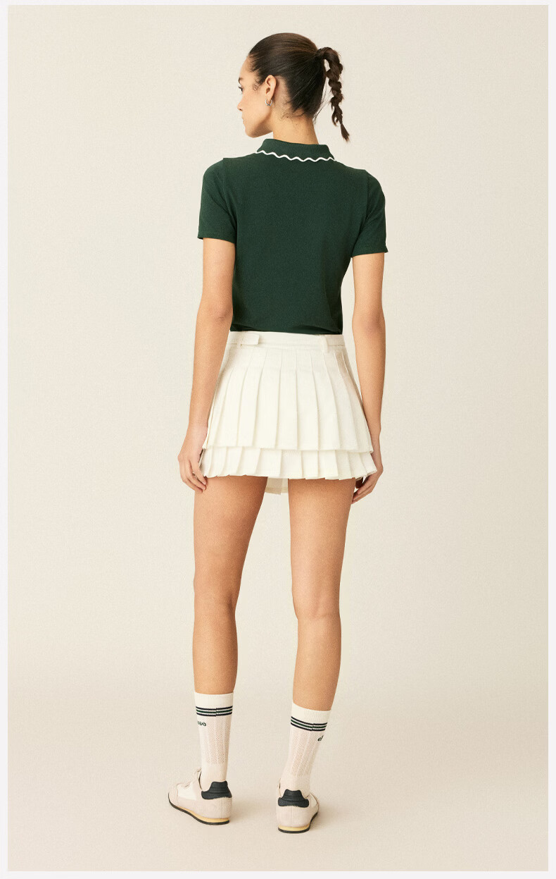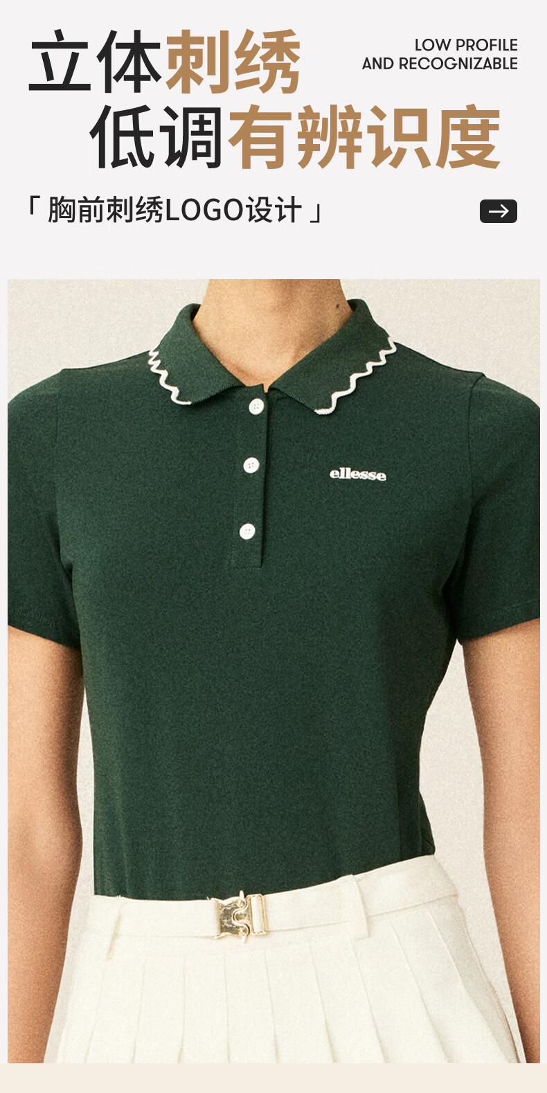 ellesse小贝壳26春季新品网球服运动透气显瘦POLO花边领短袖女 深林绿 S