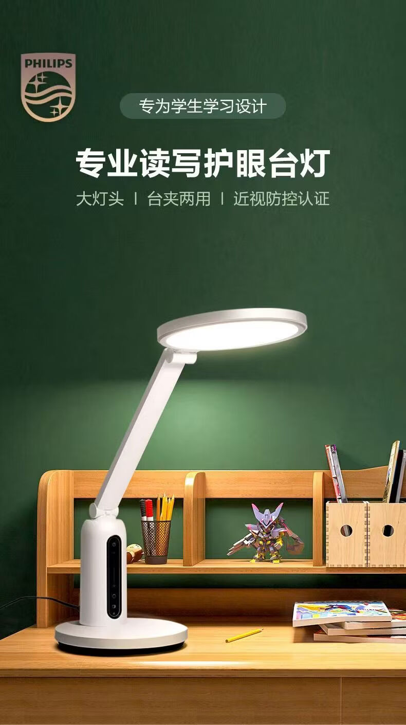 飞利浦(PHILIPS)台灯儿童阅读护眼学习书桌宿舍卧室led全光谱光源桌灯 轩坦Eco版 66161轩坦/13.5W/台式版