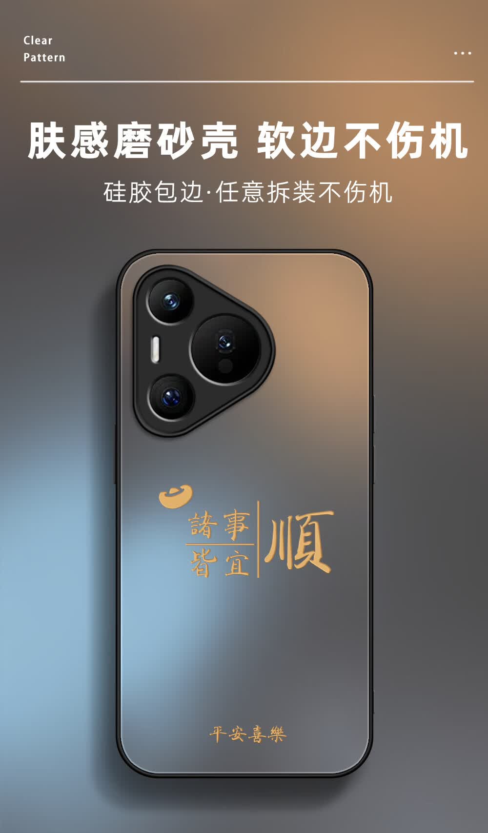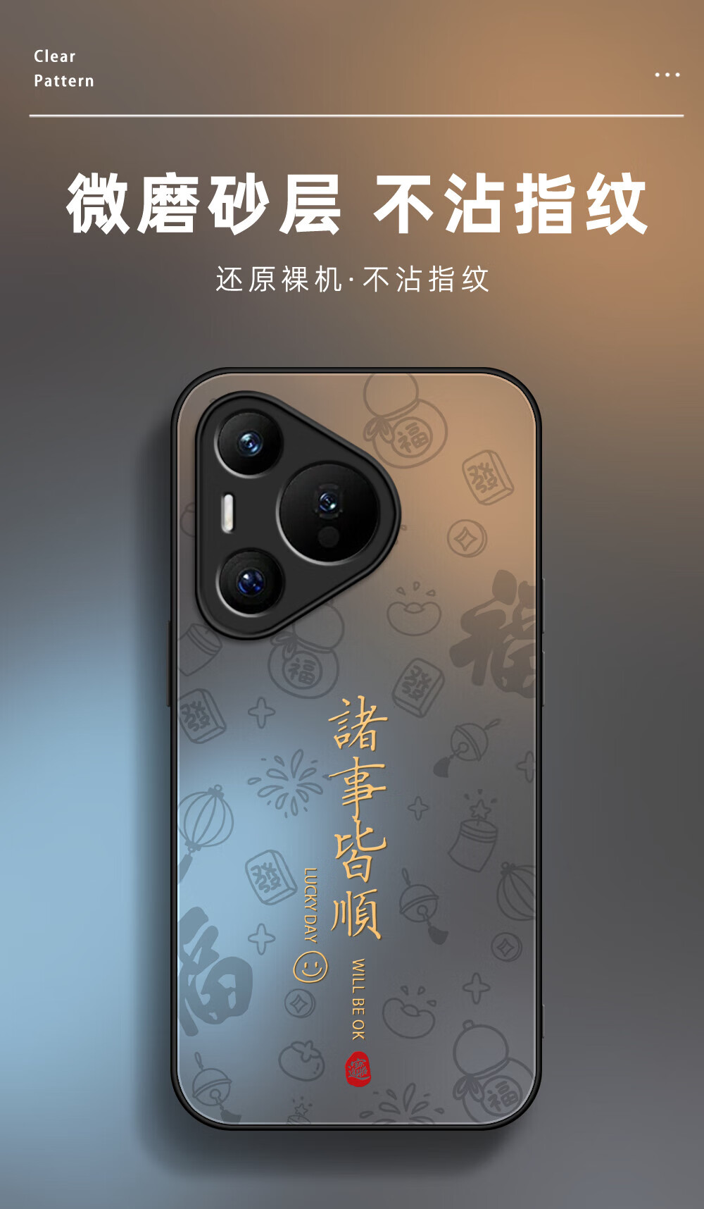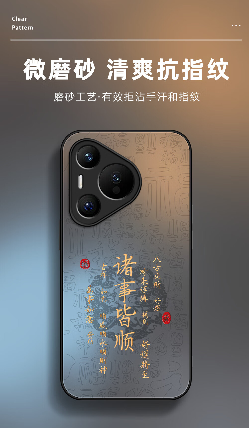 适用华为pura80pro手机壳诸事皆顺P70镜头全包防摔磨砂肤感保护套 【八方来财發-黑色】AG肤感磨砂 华为 Pura 70 Pro+