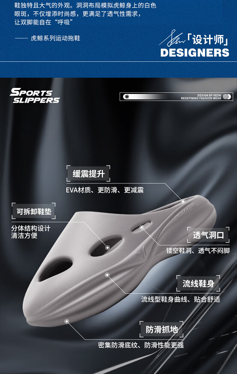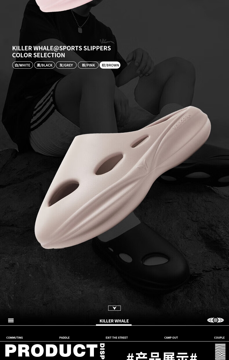 维动(VEIDOORN)新品虎鲸运动拖鞋男鞋女透气软底外穿凉拖减震青少年户外沙滩鞋 卡其棕 36-37