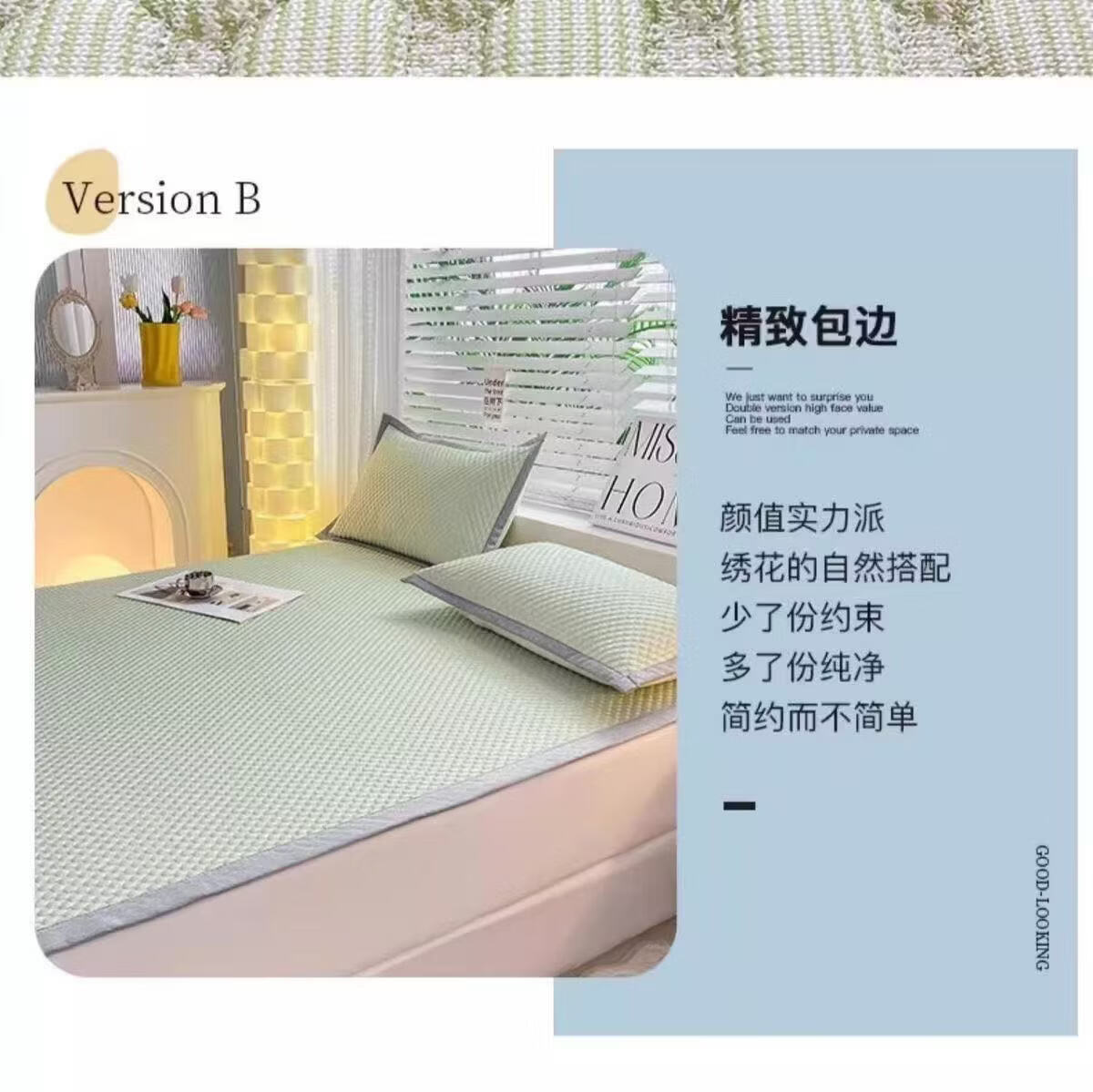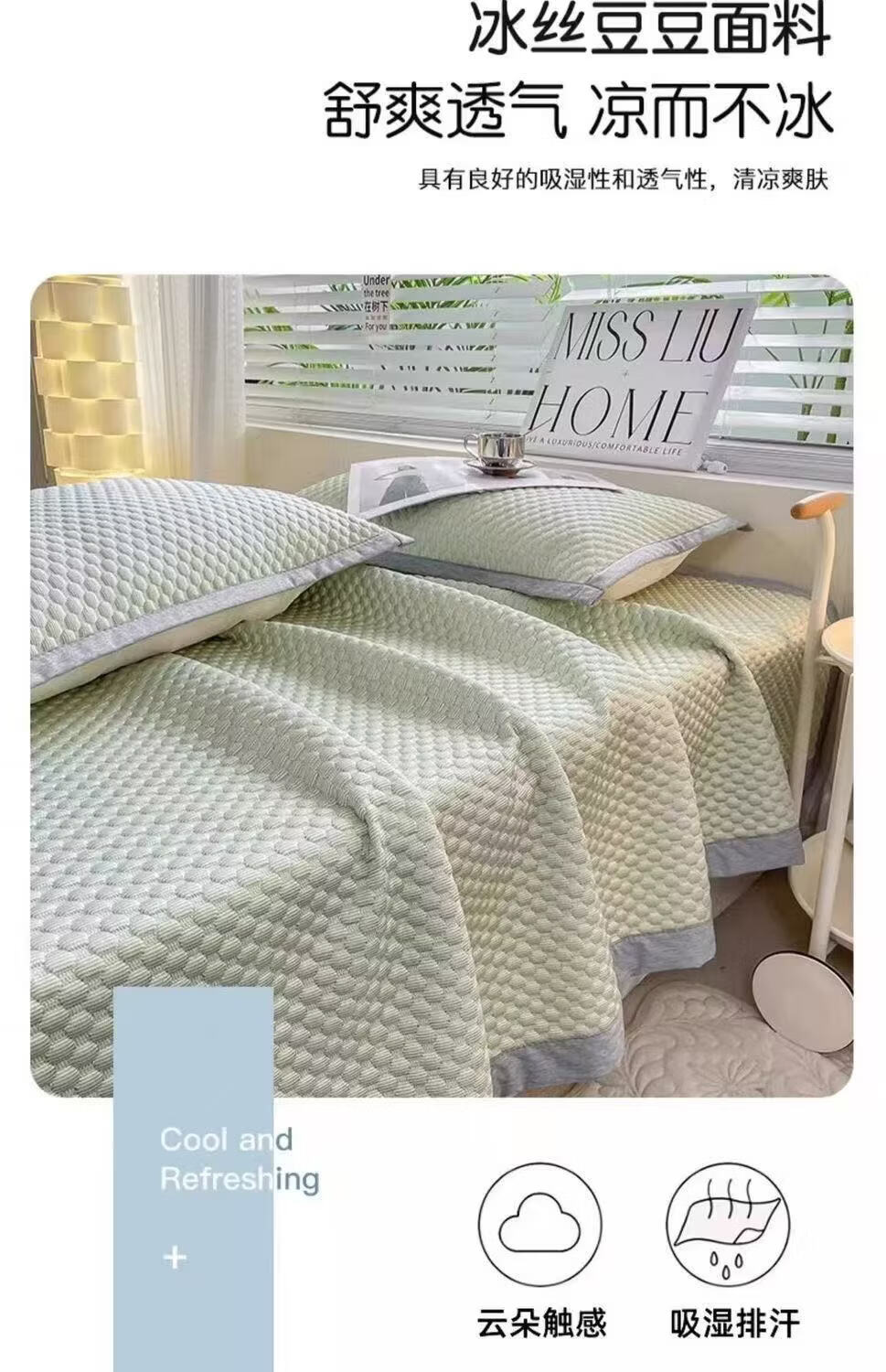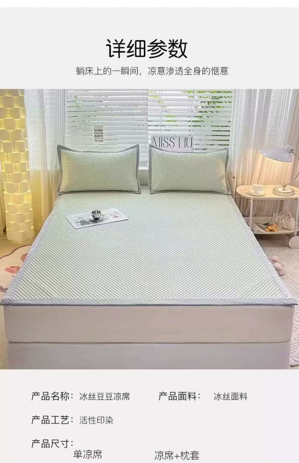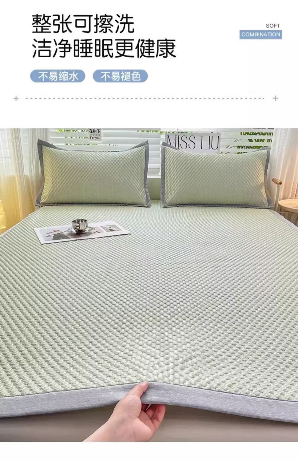 朴顿庄园夏季冰丝凉席豆豆席床铺款折叠宿舍学生单人可折叠机洗软席子家用 清爽绿 90*200