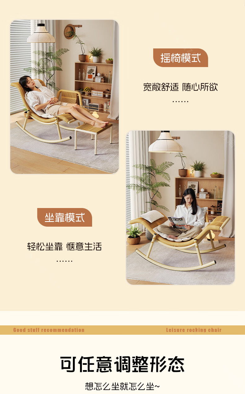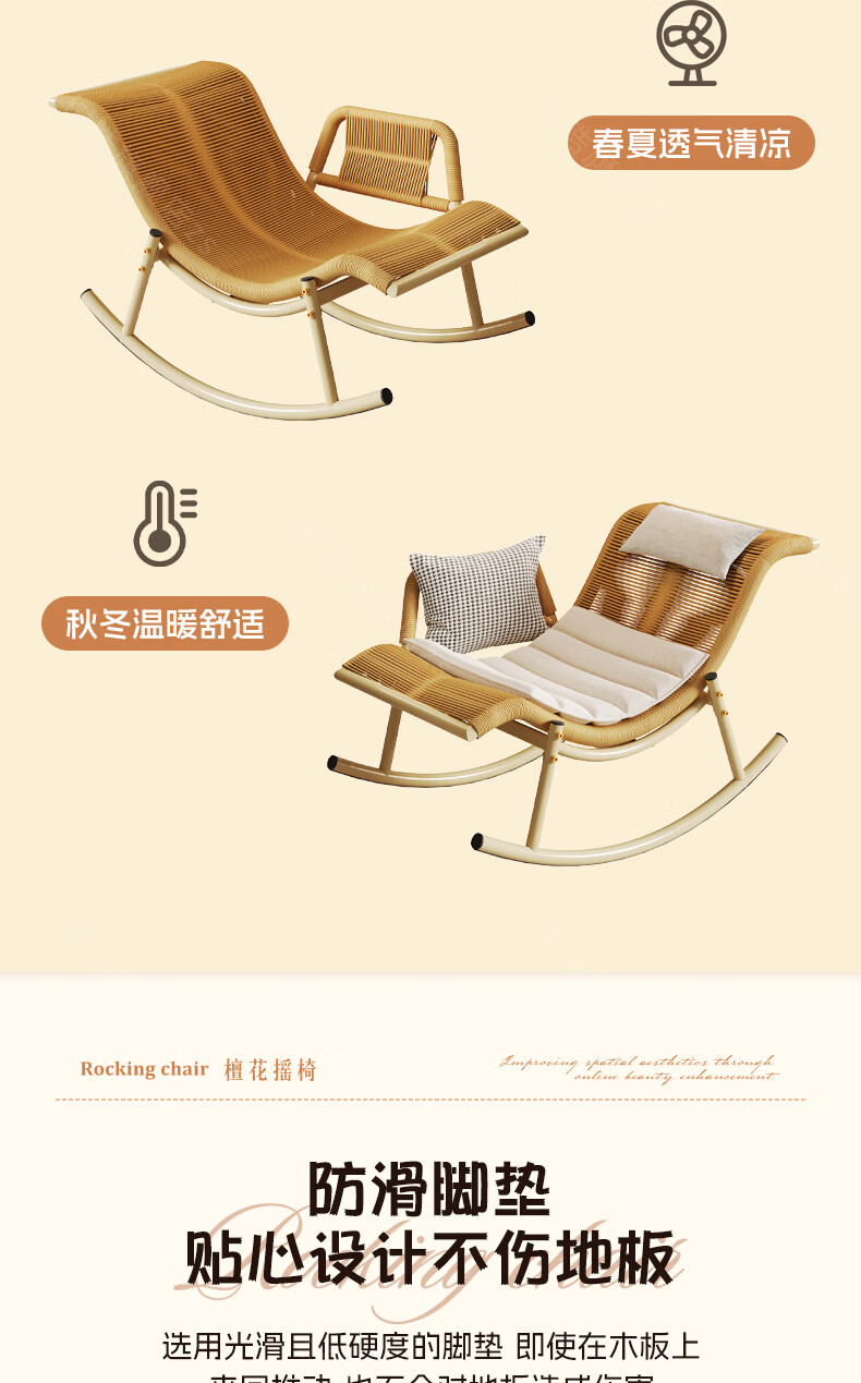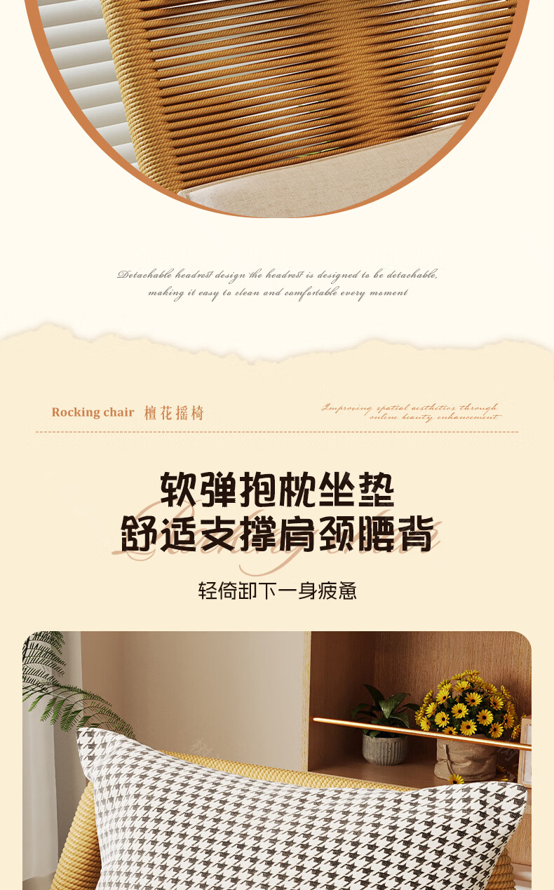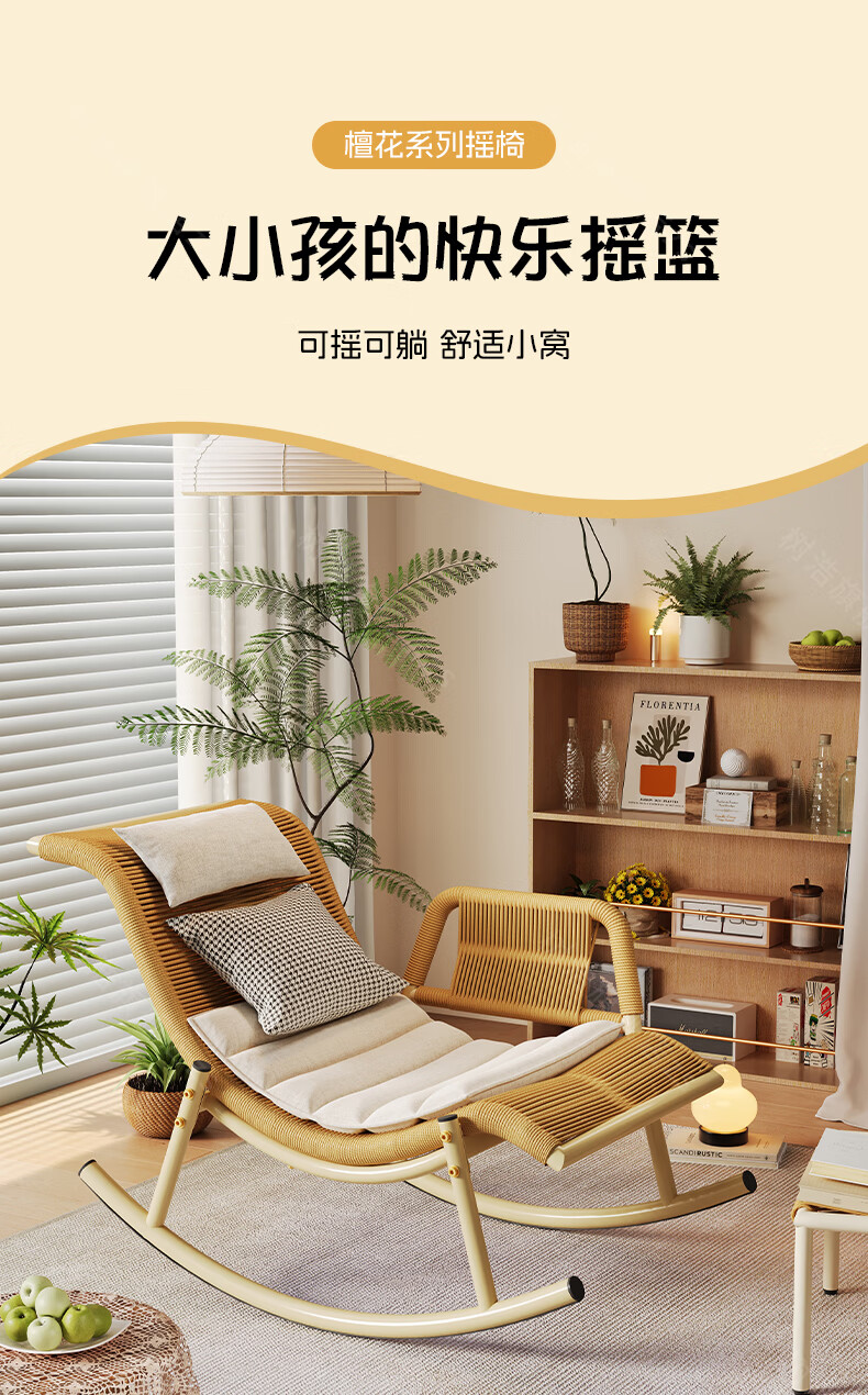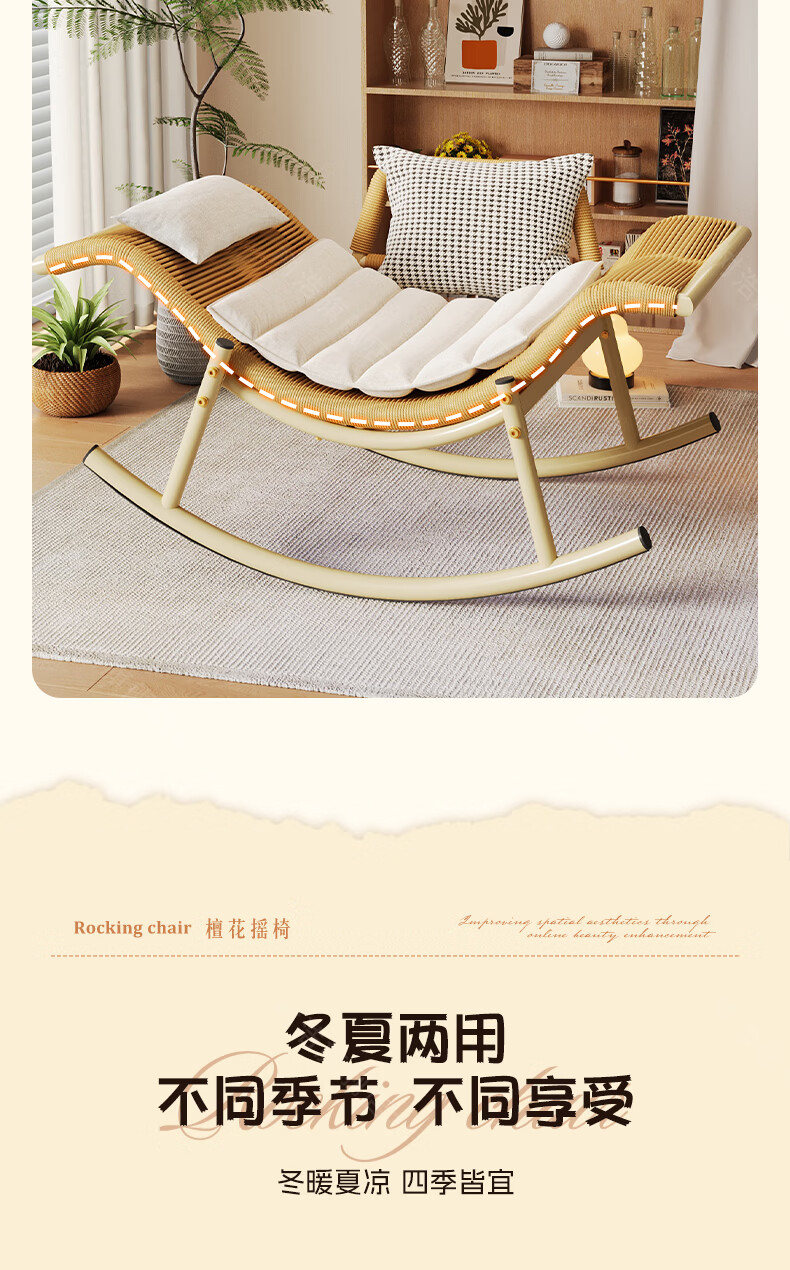 树浩檀花摇摇椅躺椅成人可坐可睡两用藤椅阳台家用户内外两用休闲椅子 【坐躺两用】檀花摇椅+脚踏 头枕坐垫抱枕