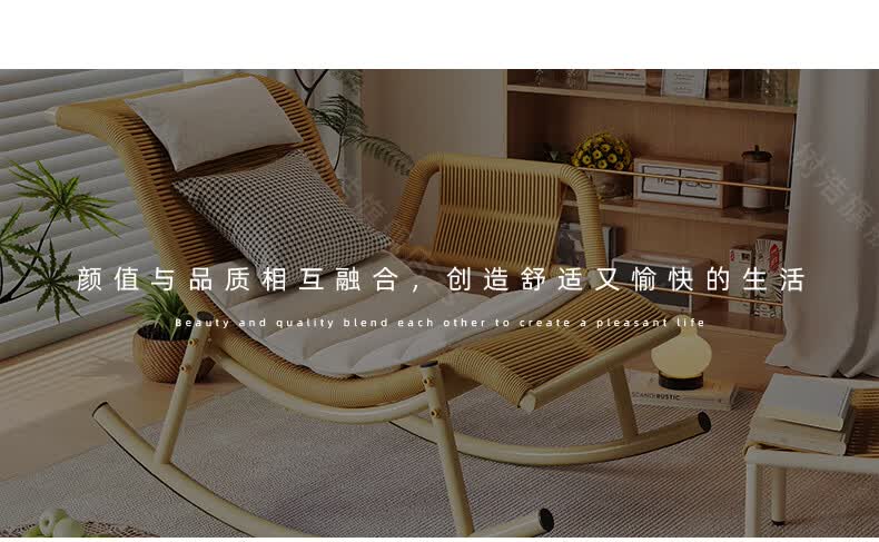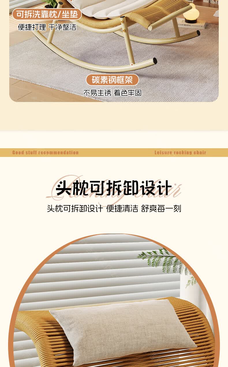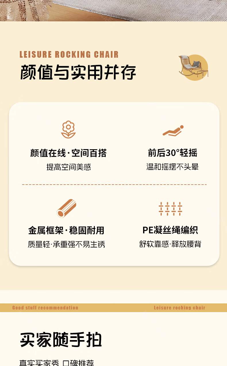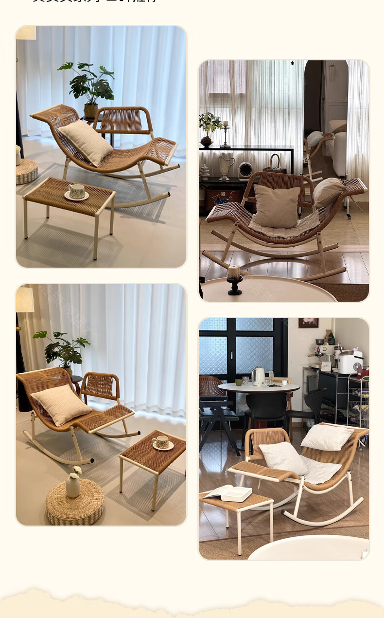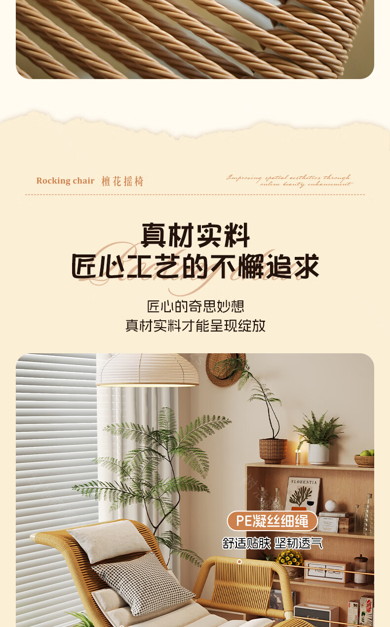 树浩檀花摇摇椅躺椅成人可坐可睡两用藤椅阳台家用户内外两用休闲椅子 【坐躺两用】檀花摇椅+脚踏 头枕坐垫抱枕