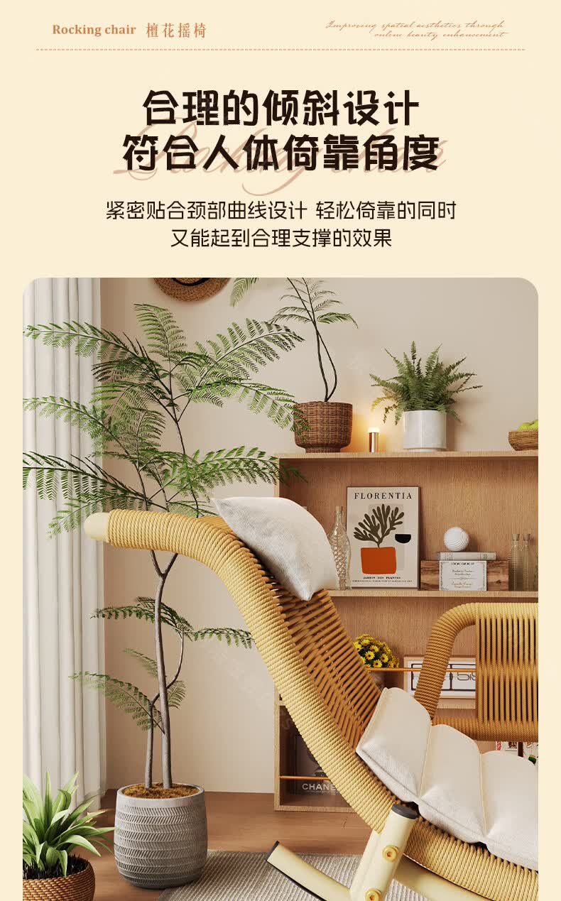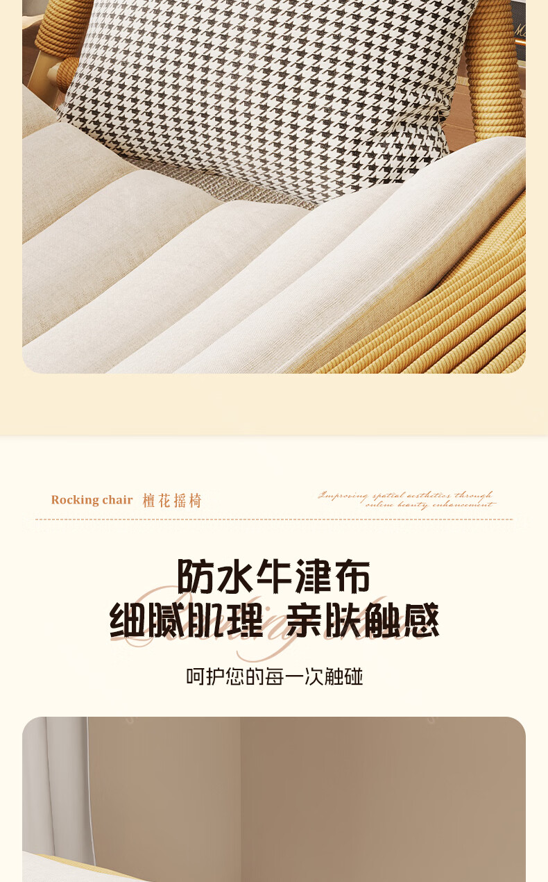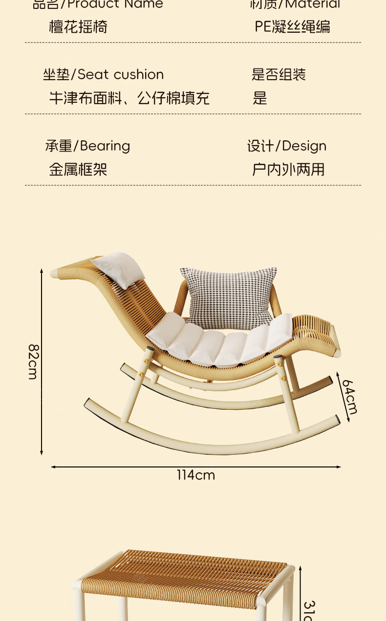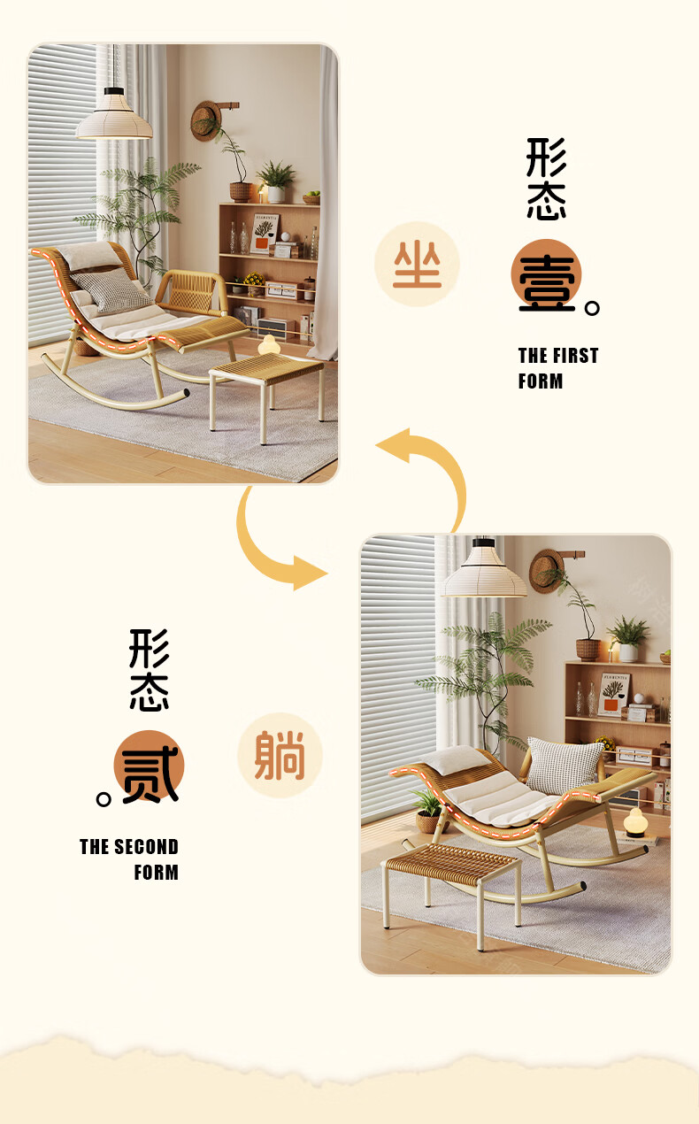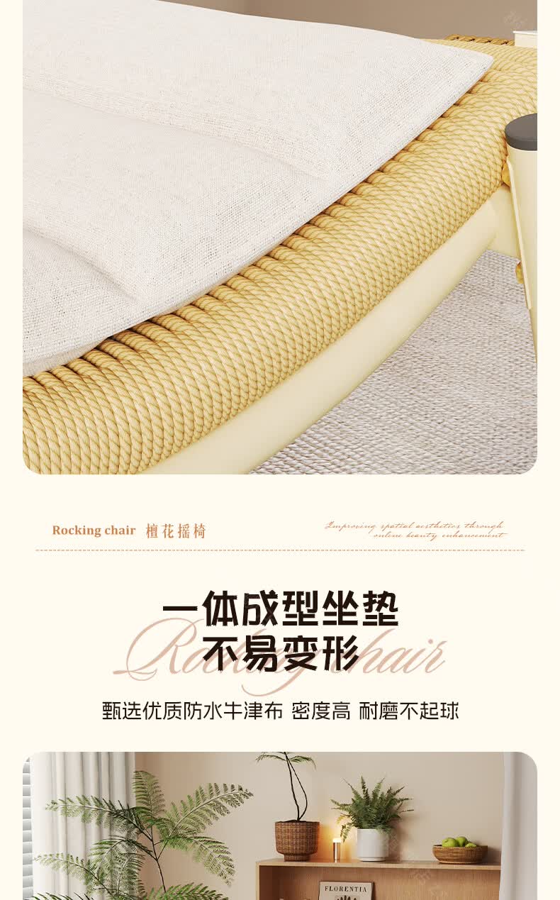 树浩檀花摇摇椅躺椅成人可坐可睡两用藤椅阳台家用户内外两用休闲椅子 【坐躺两用】檀花摇椅+脚踏 头枕坐垫抱枕
