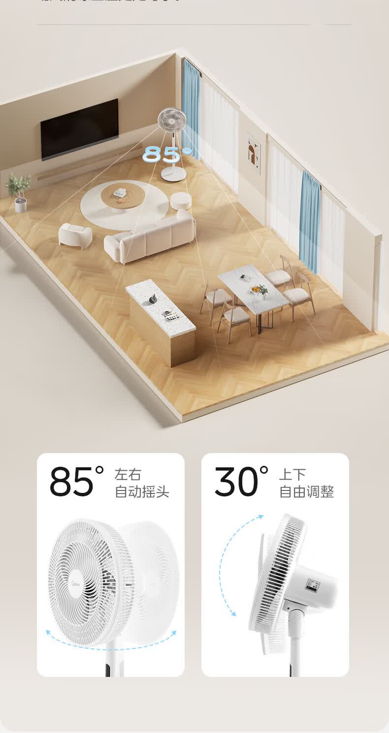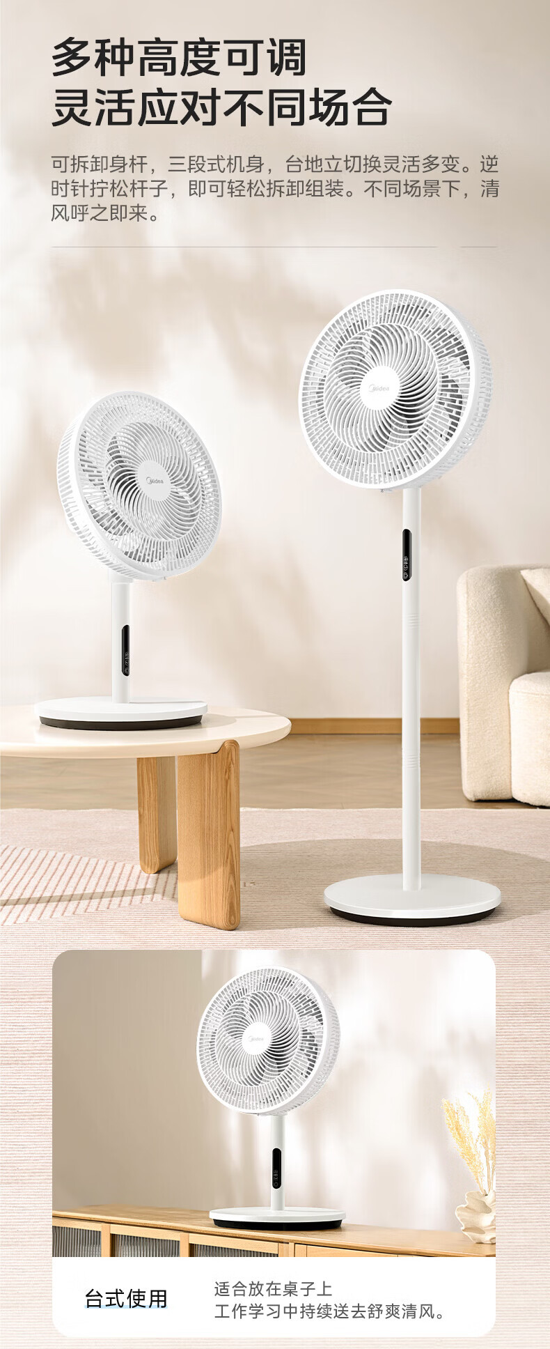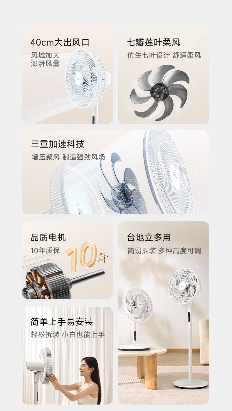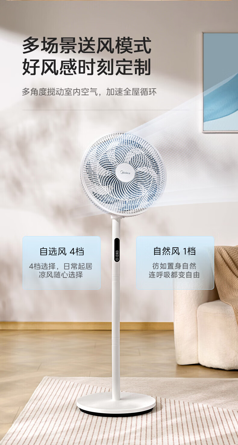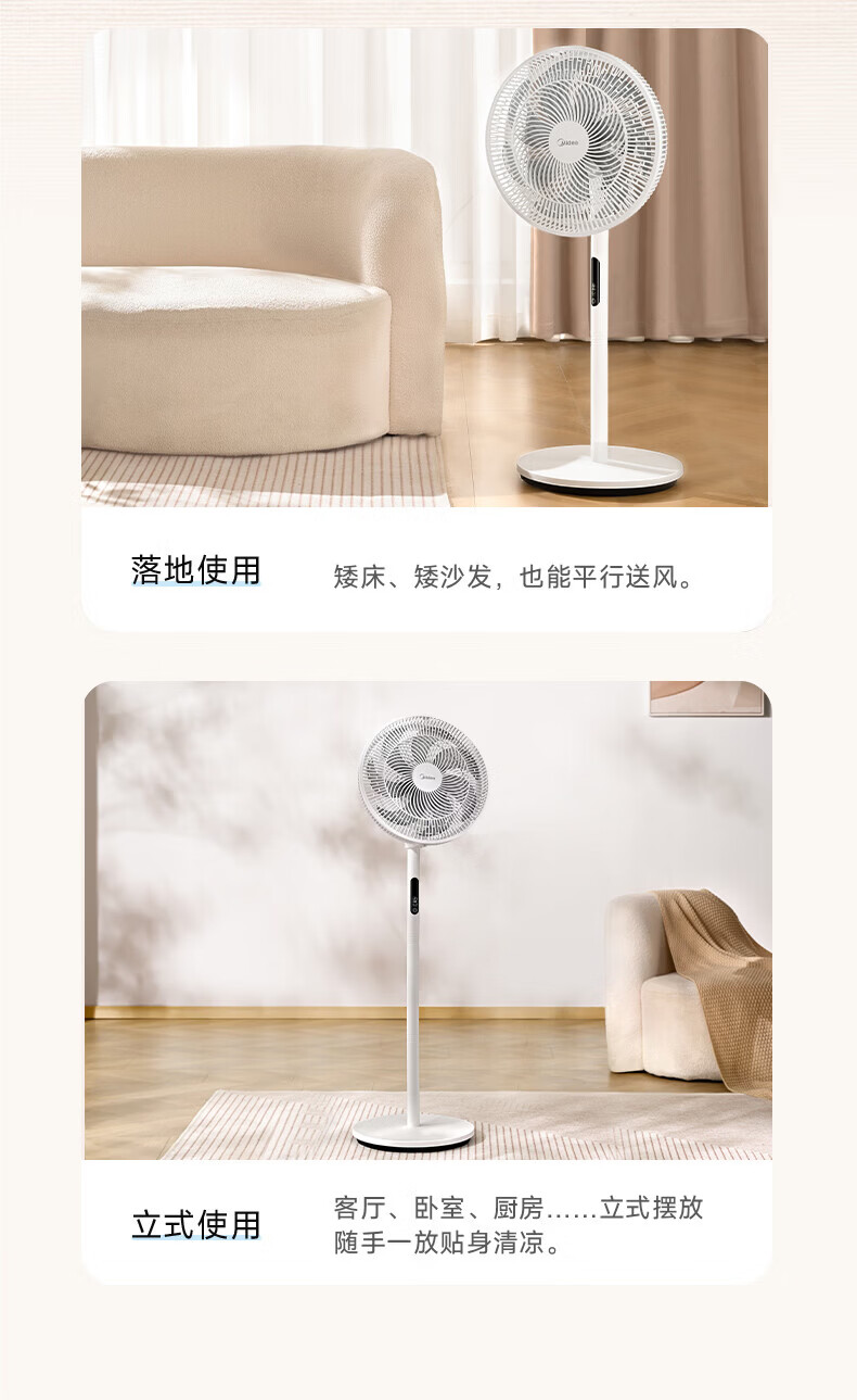 美的(Midea)电风扇家用7叶落地扇摇头电风扇循卧室宿舍轻音风扇台式桌面小型风扇台地两用升级款 白色丨7叶台地两用