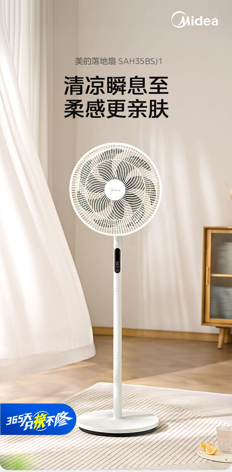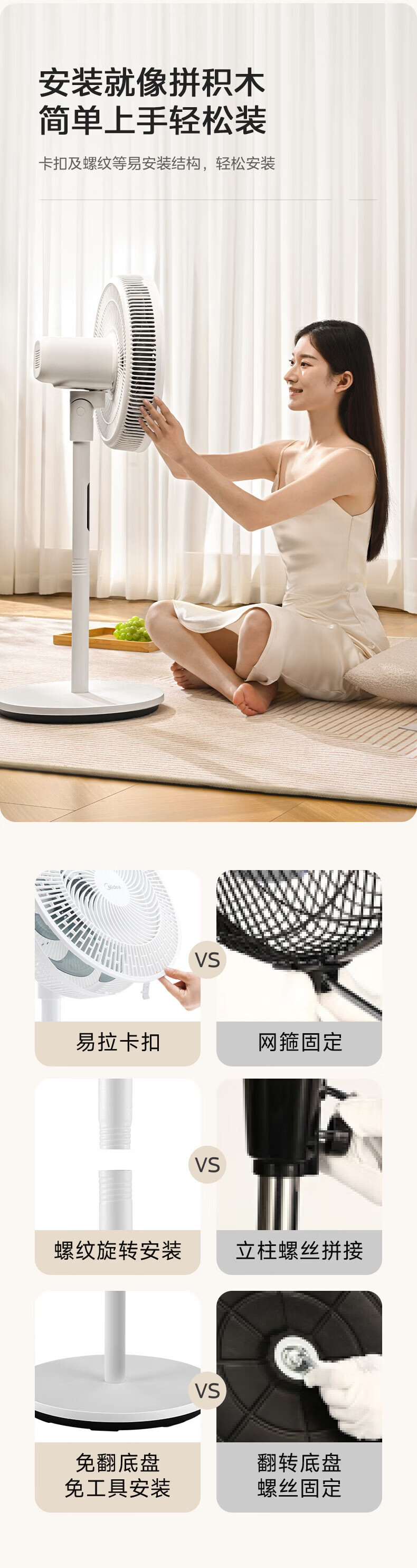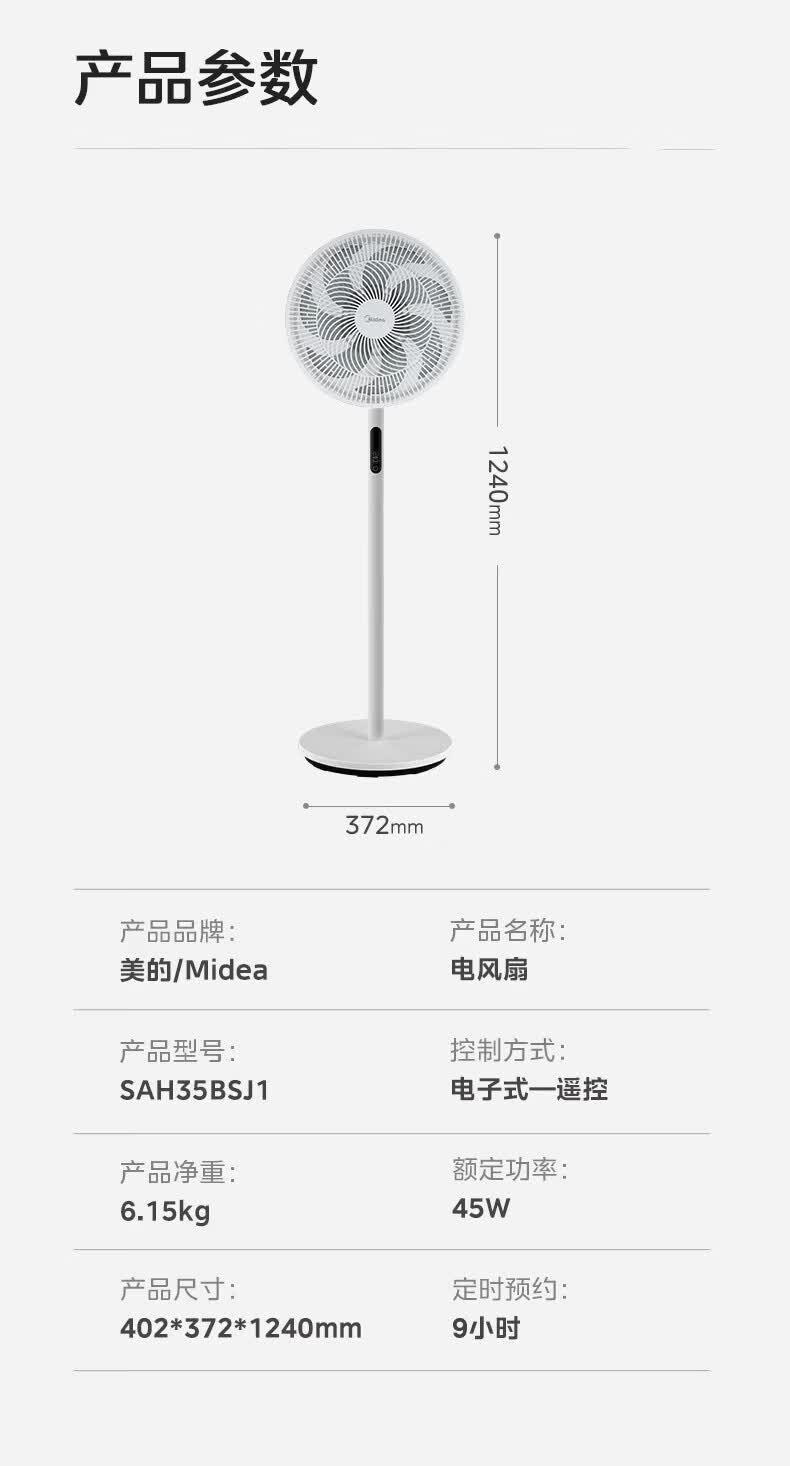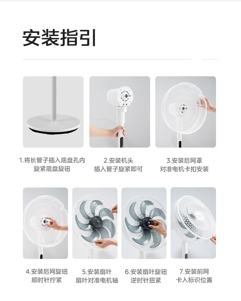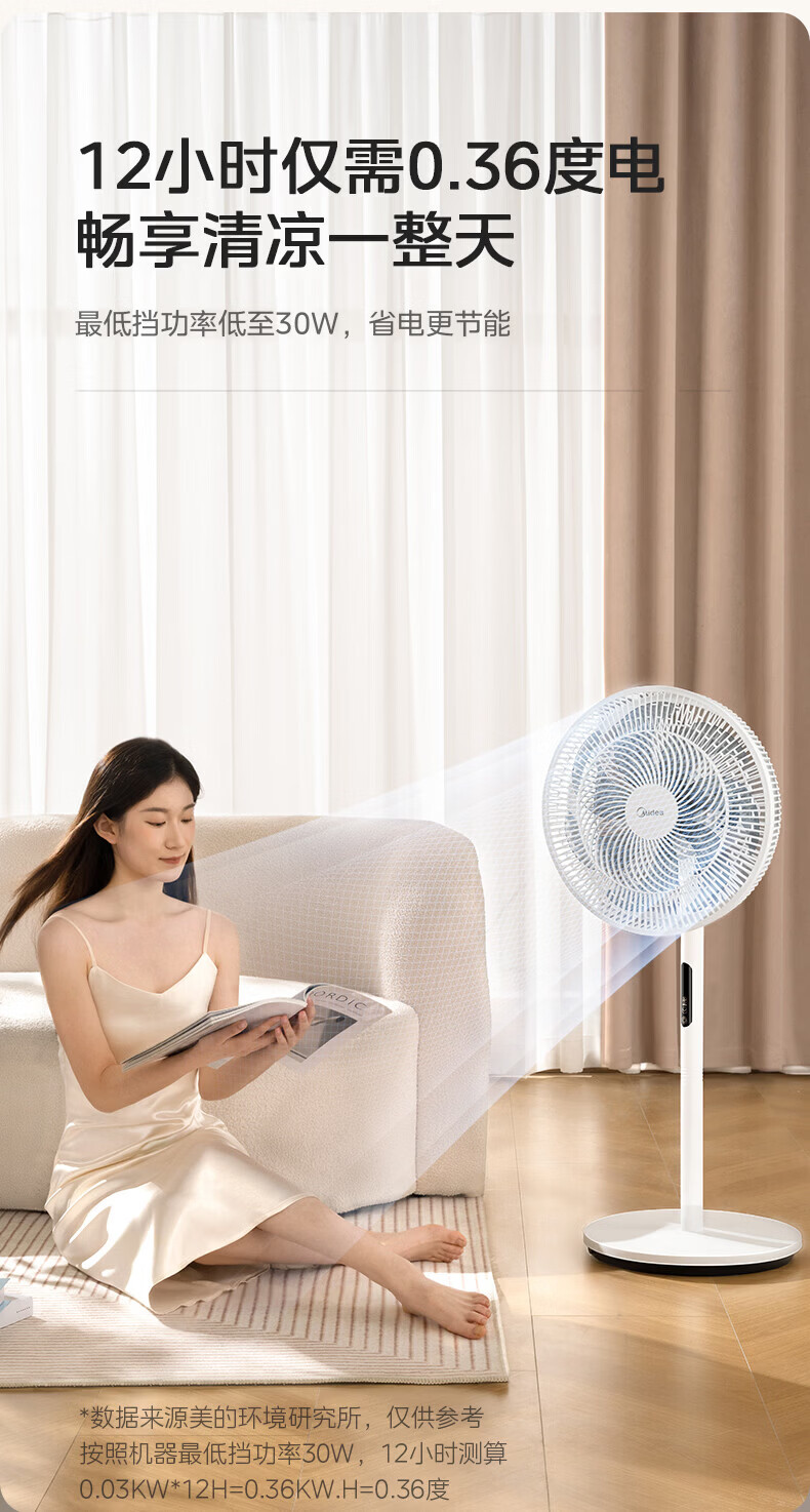 美的(Midea)电风扇家用7叶落地扇摇头电风扇循卧室宿舍轻音风扇台式桌面小型风扇台地两用升级款 白色丨7叶台地两用