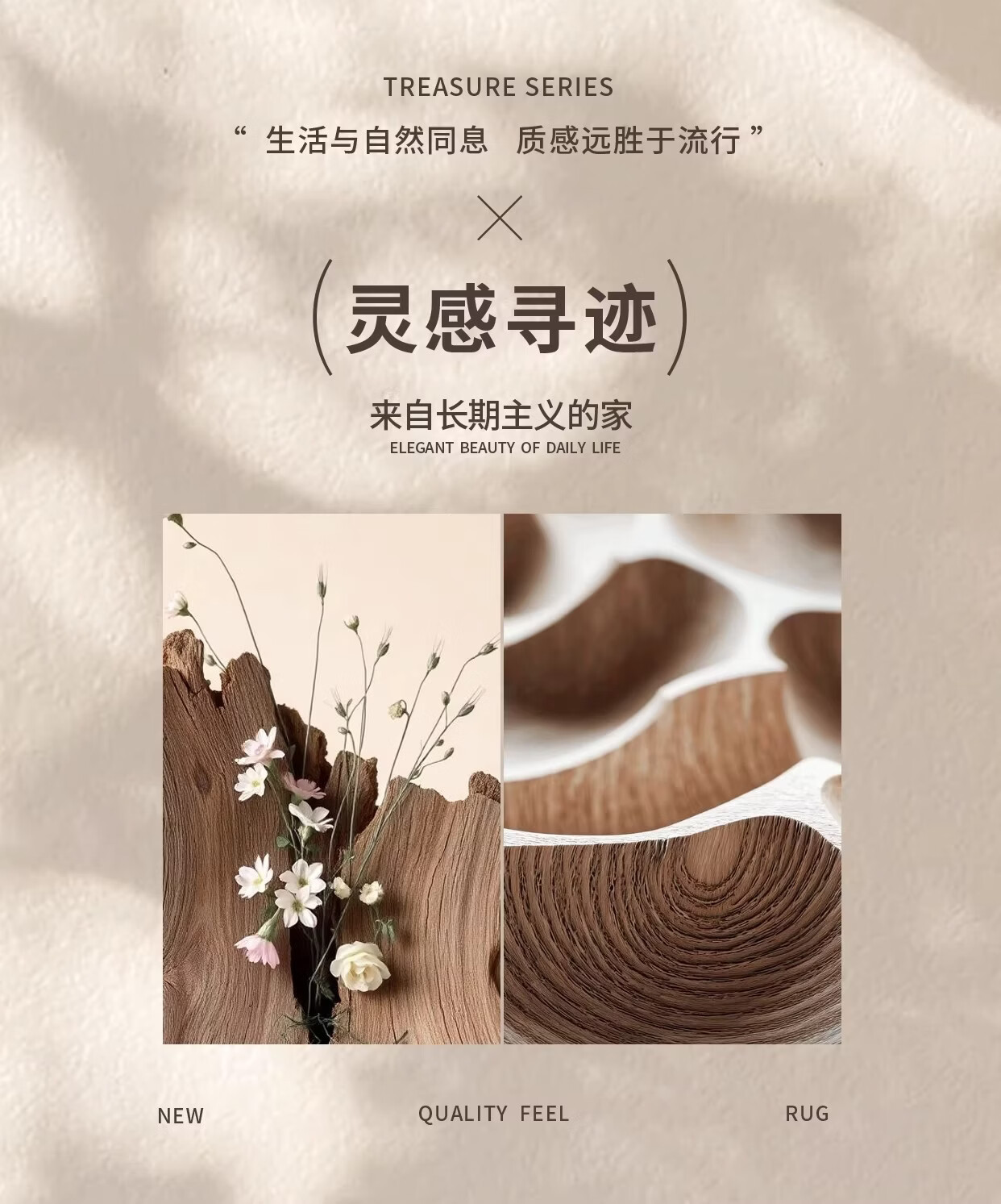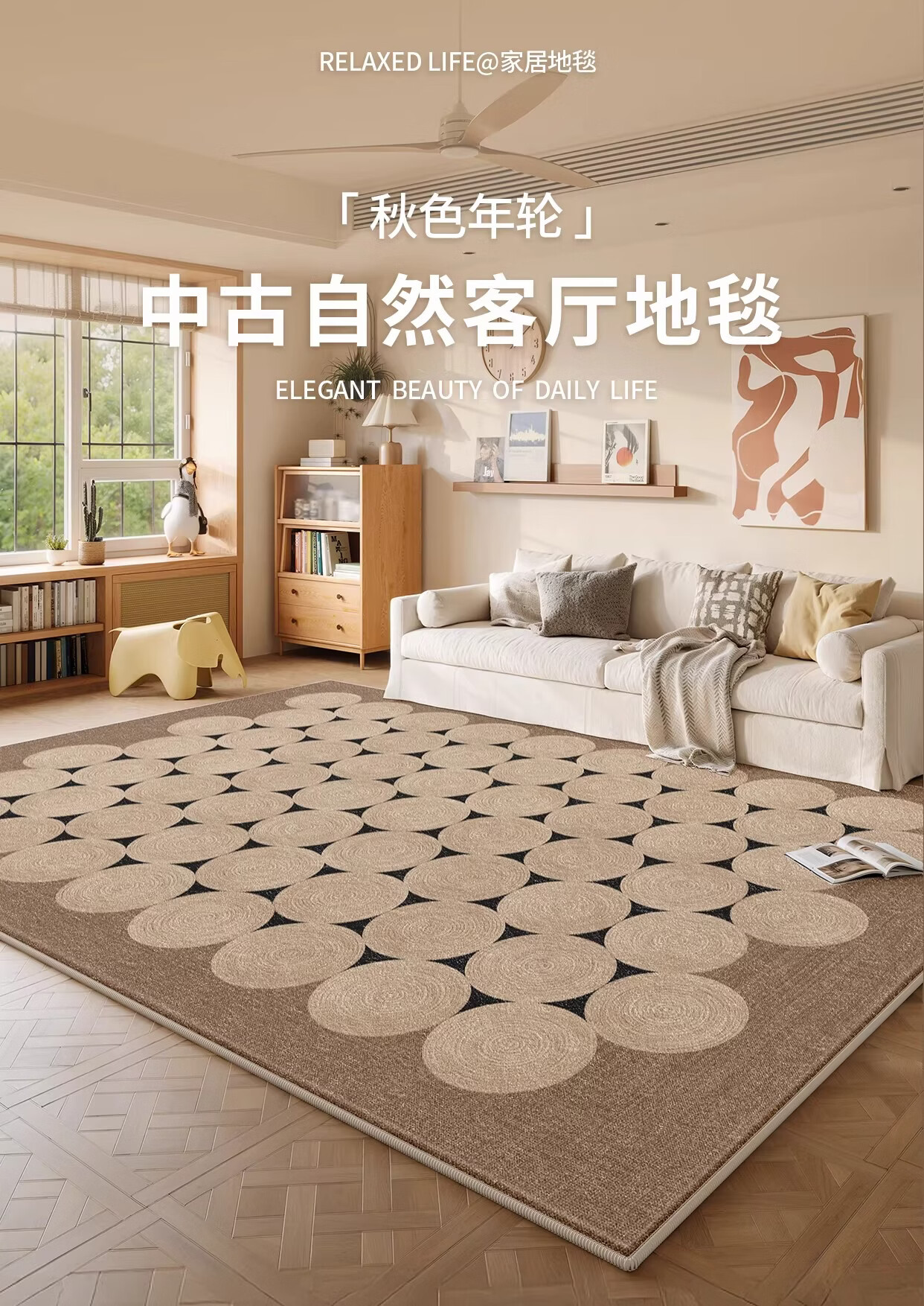 Y U-LIVE地毯客厅原木中古风2026新款复古免洗可擦家用沙发免打理卧室 S仿羊绒-秋色年轮 定制尺寸请联系客服【享优惠】