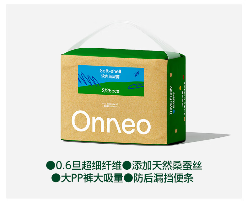 onneo昂乐软壳桑蚕丝纸尿裤新生婴儿尿不湿超薄透气柔软舒适S码25片