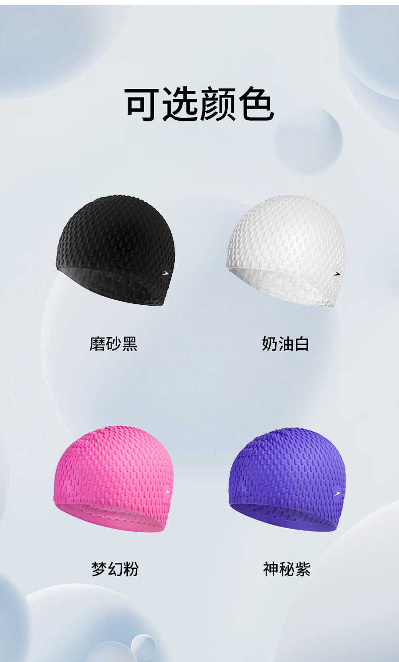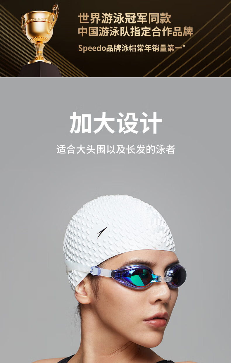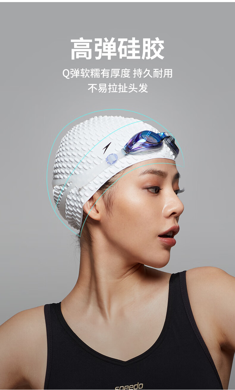 速比涛(Speedo)成人硅胶泳帽泡泡帽长发舒适防水护耳时尚游泳帽 白色