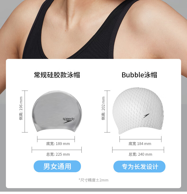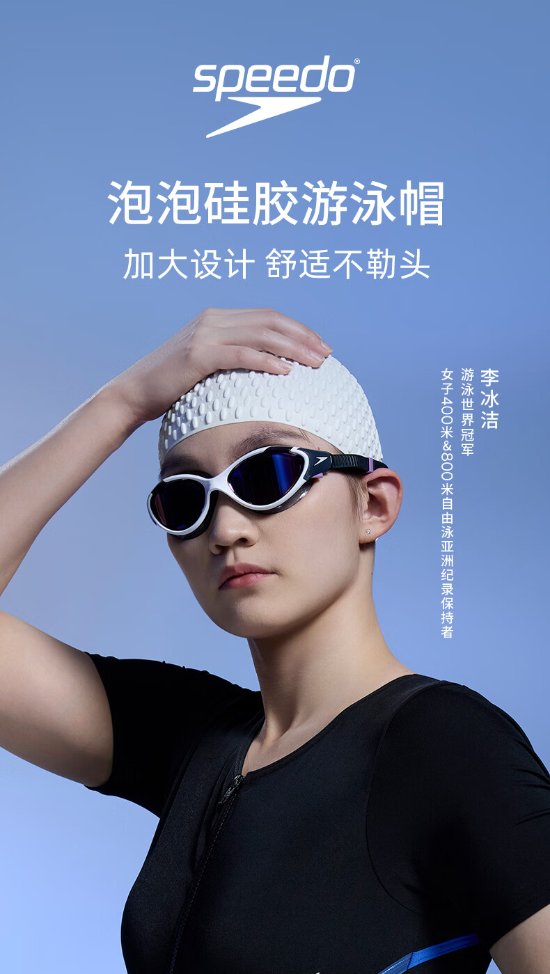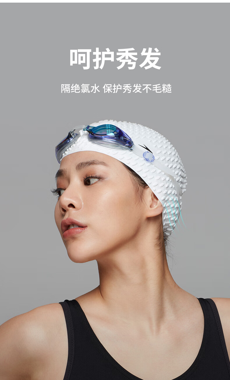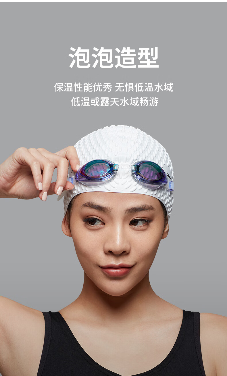 速比涛(Speedo)成人硅胶泳帽泡泡帽长发舒适防水护耳时尚游泳帽 白色