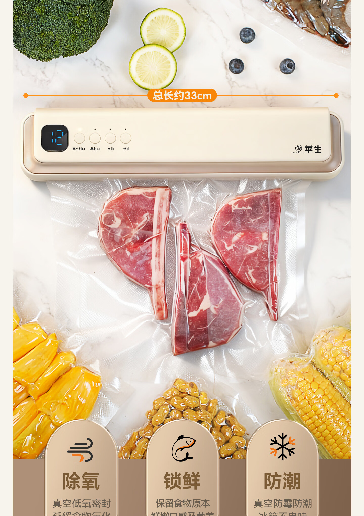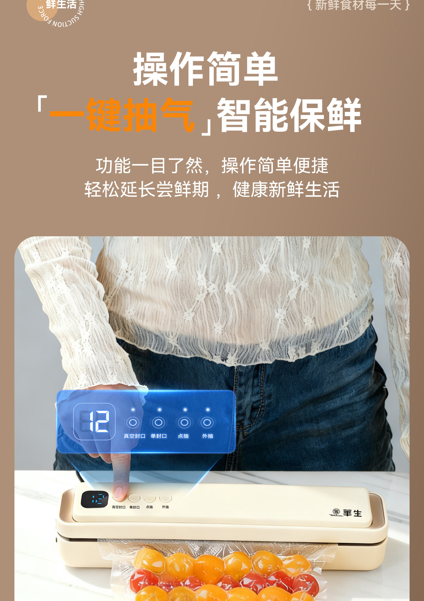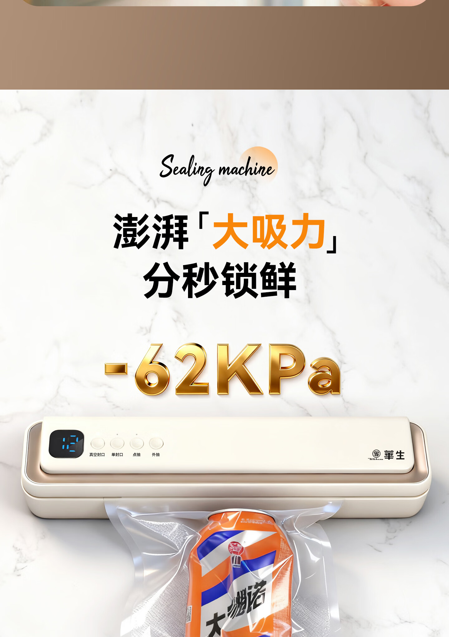 华生【抖音同款】真空封口机家用小型真空包装机食品塑封机全自动真空机干湿两用商用真空保鲜打包机