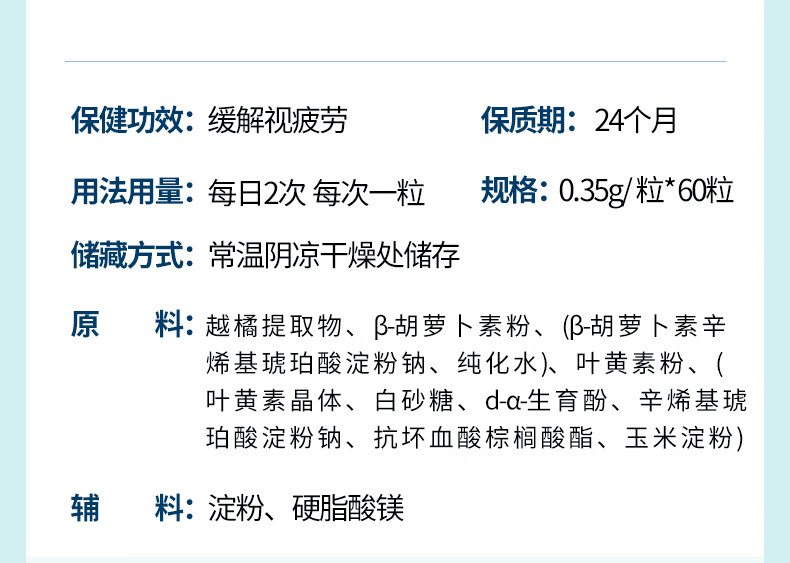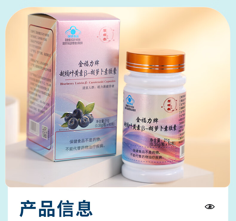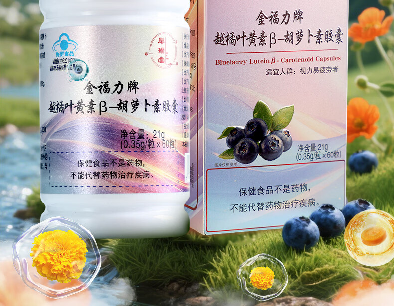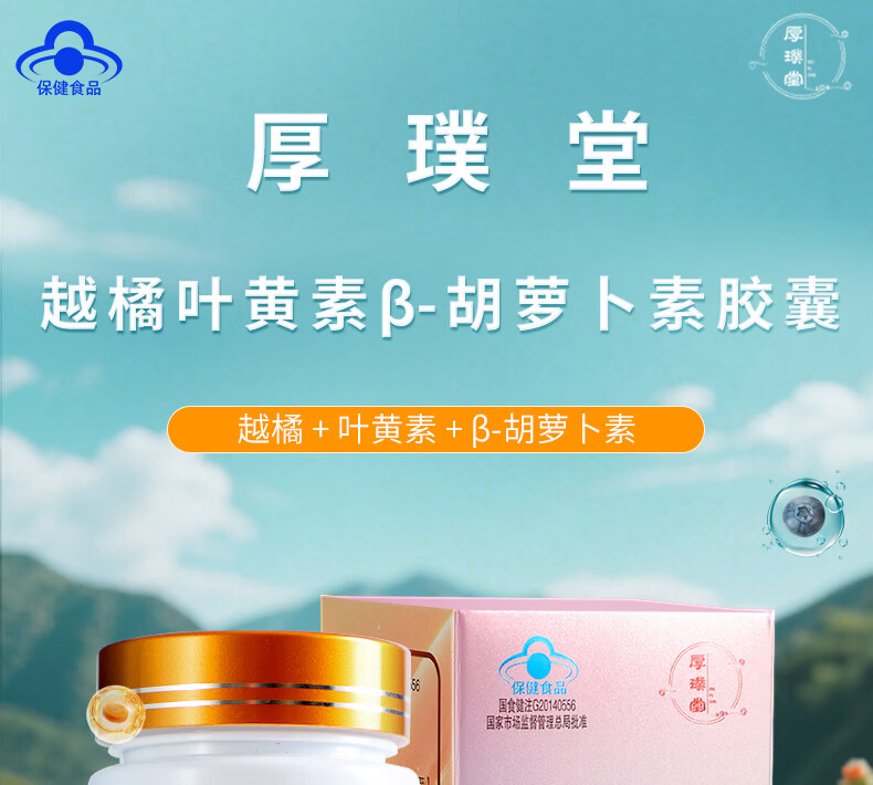 厚璞堂越橘叶黄素β-胡萝卜素胶囊缓解视疲劳正品 1盒装 60粒*1盒