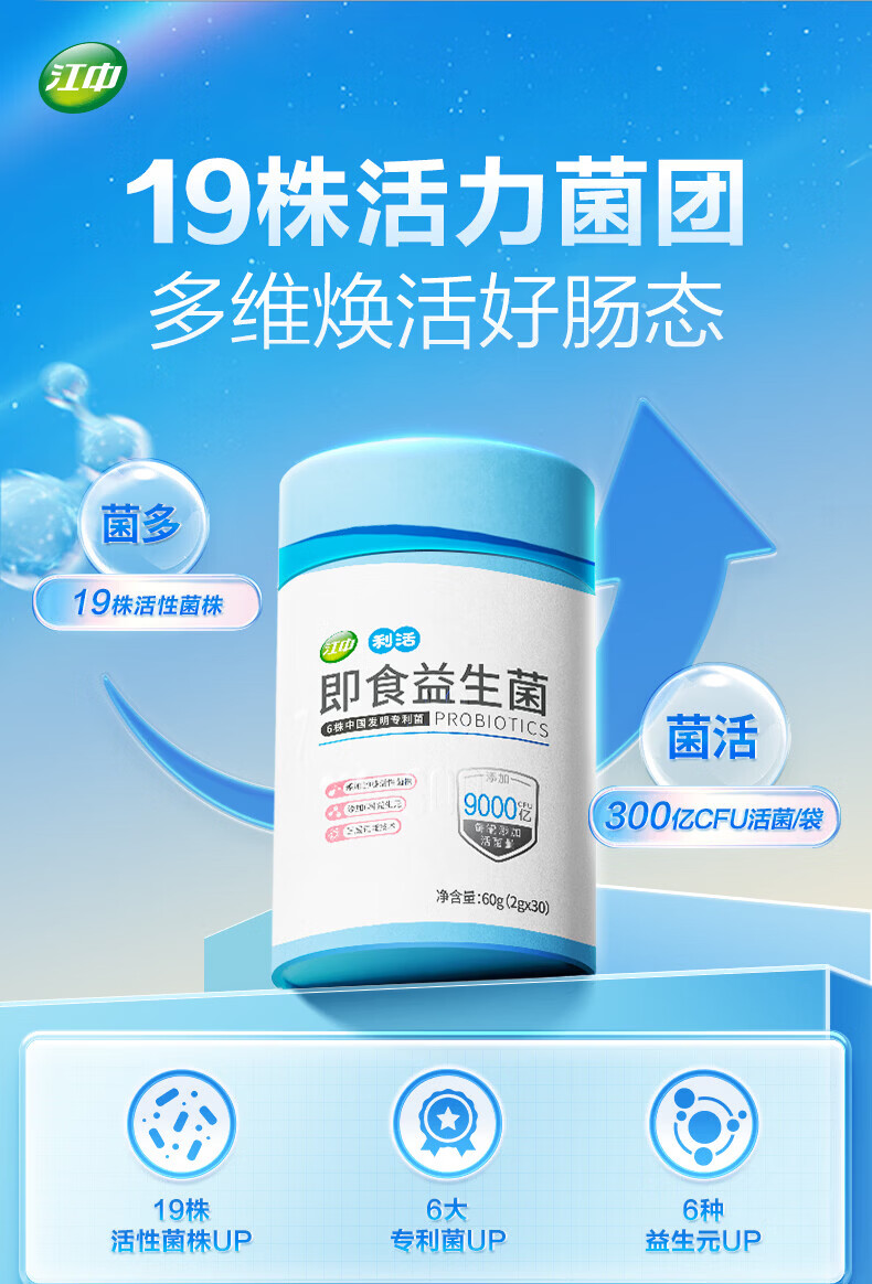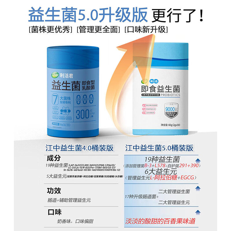 江中益生菌粉 利活菌 即食型乳酸菌 9000 亿活性菌/桶 【19种菌 9000亿/桶】 30条*5桶