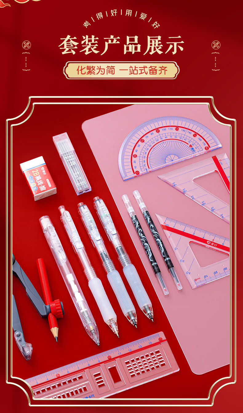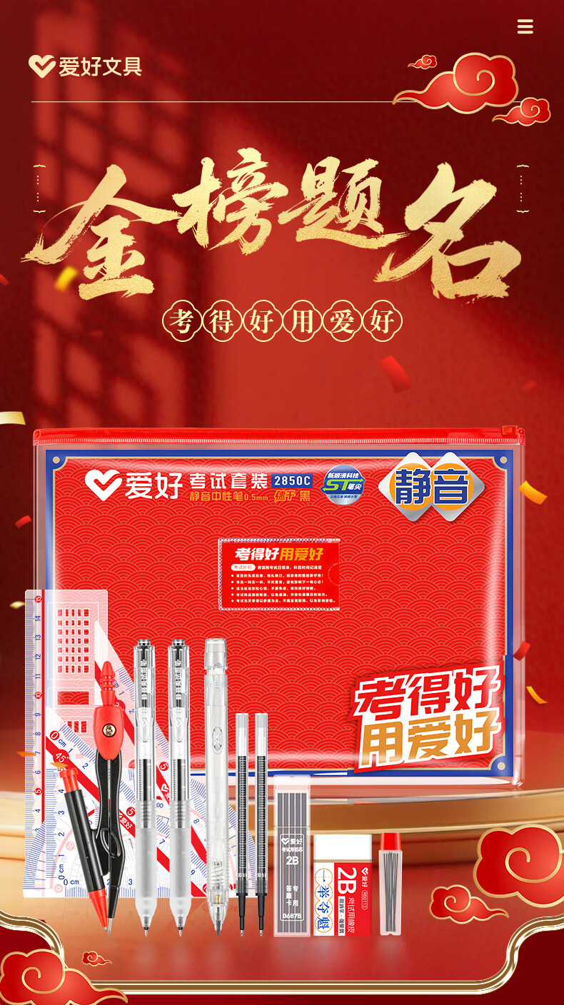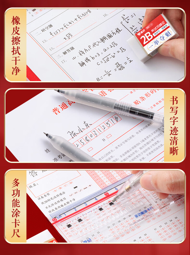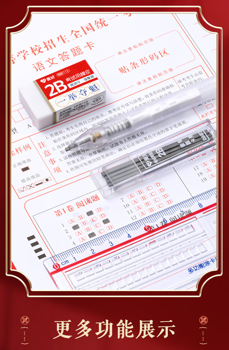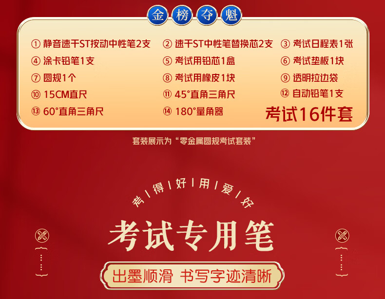 爱好(AIHAO)中高考文具16件套学生考试考研专用套装2B涂卡铅笔+套尺+橡皮+静音中性笔 2850 C【一举夺魁】静音考试16件套