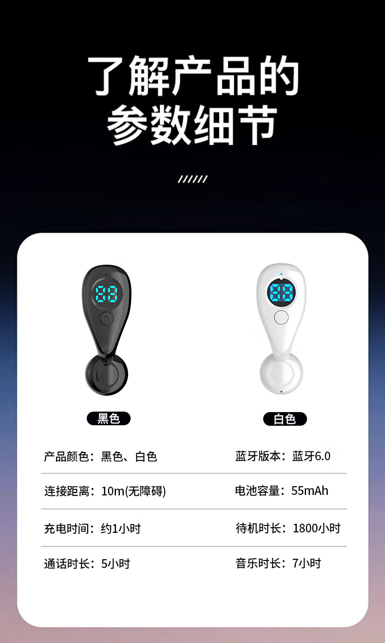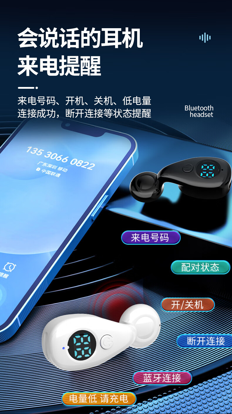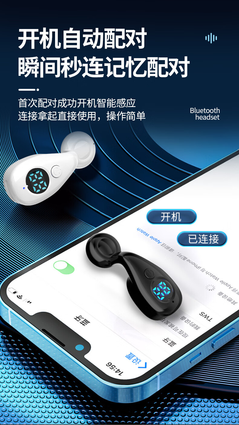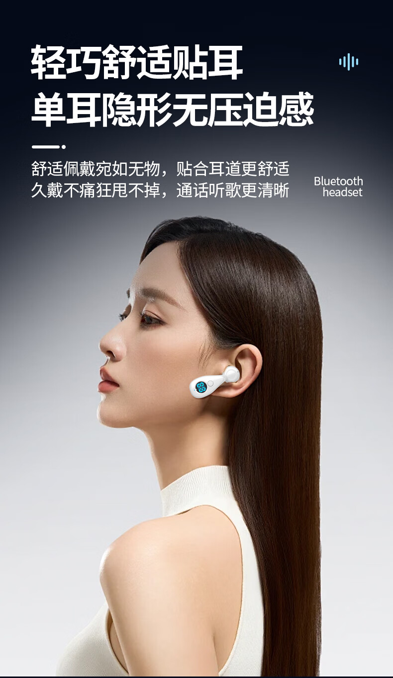 翊晨星2026新款耳环式蓝牙耳机 半入耳高颜值高音质 重低音高清通话无线耳机 白色 双耳【两个+可环绕立体声】
