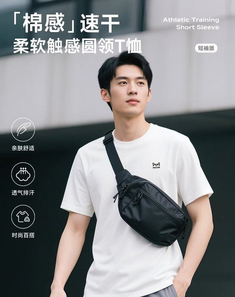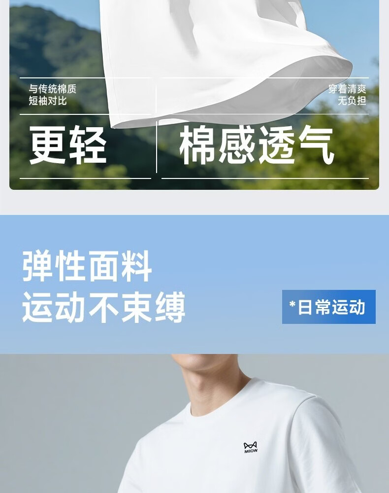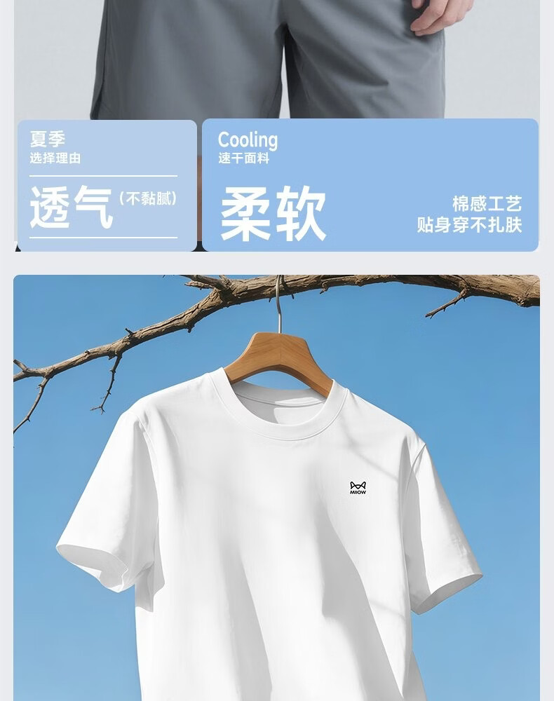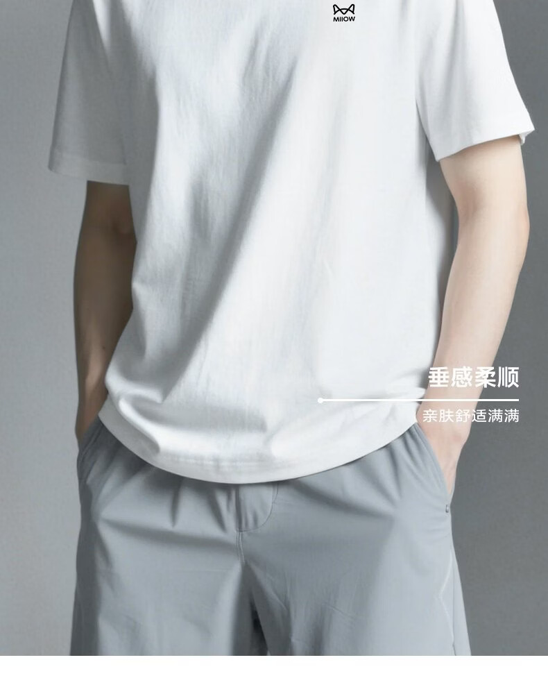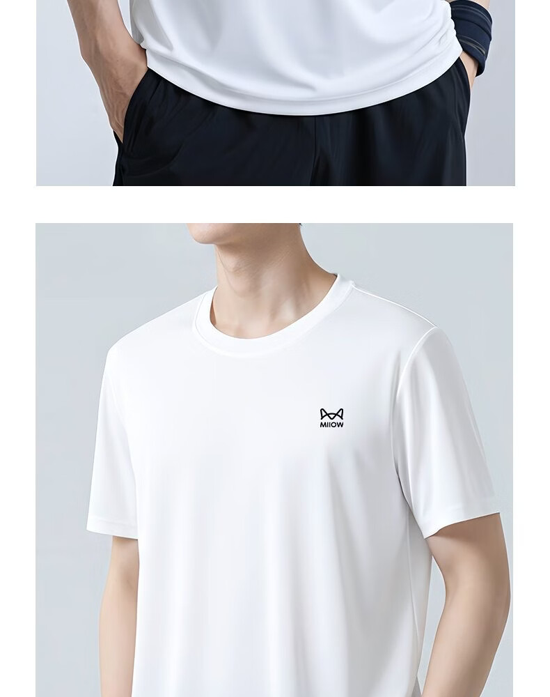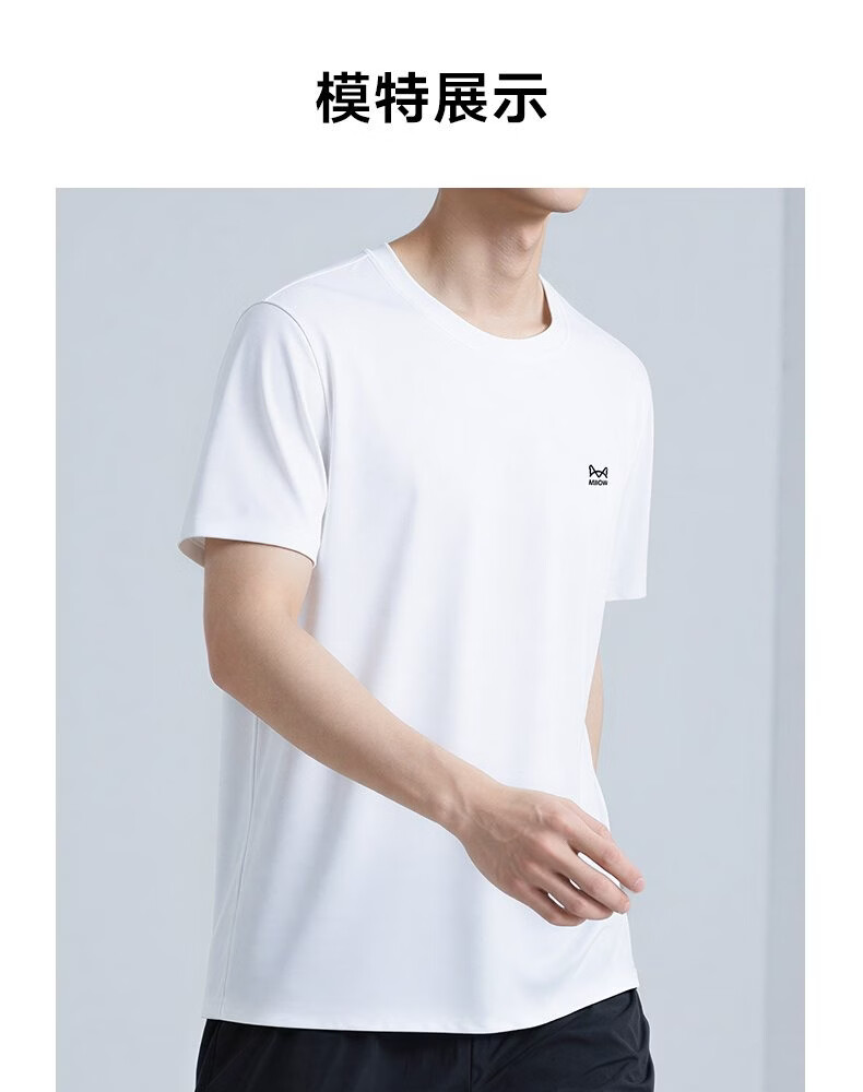 猫人(MiiOW)短袖t恤男2026夏季新款运动健身跑步上衣宽松棉感透气半袖男士 纯净白 (棉感透气-胸口标) L /175(120-140斤)