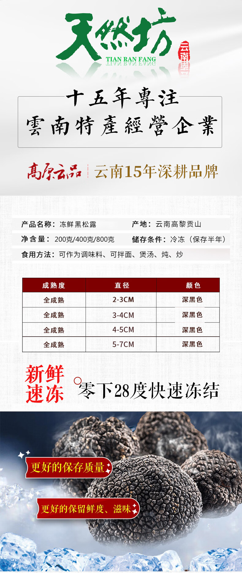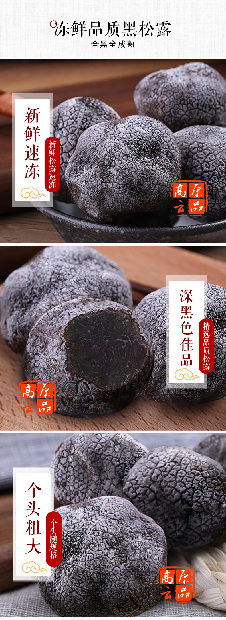 高原云品【全黑全成熟】冻鲜黑松露 云南菌菇 航空速达 全黑全成熟 2-3厘米 200克