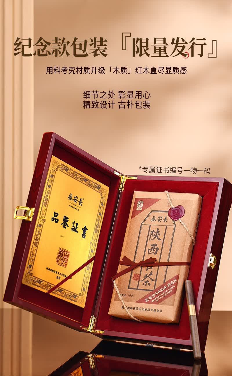 盛安长非遗技艺特一级泾阳茯茶红木礼盒 陕西官茶黑茶金花茯茶西安特产 特一级礼盒500g(送茶刀+手提袋+存茶袋+茶样)