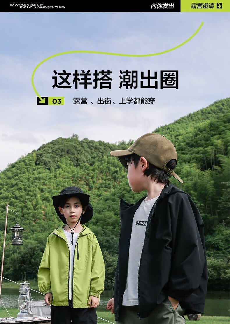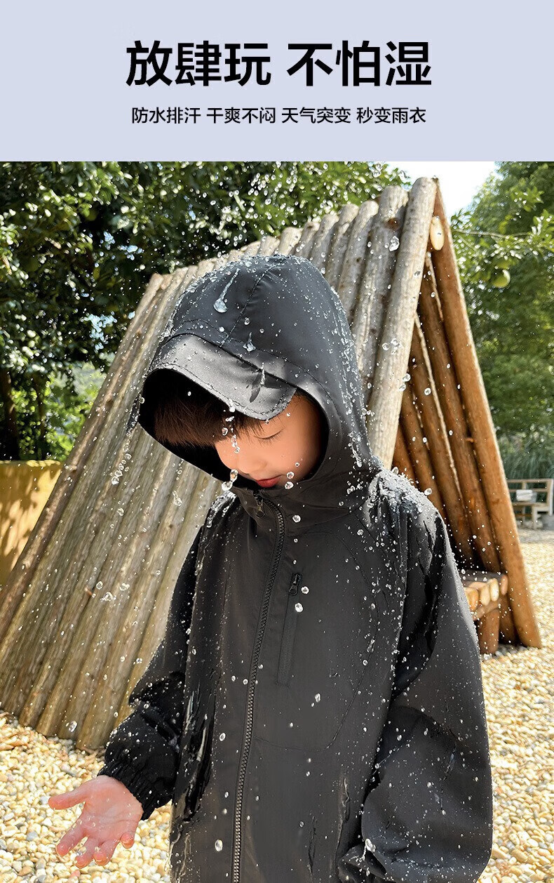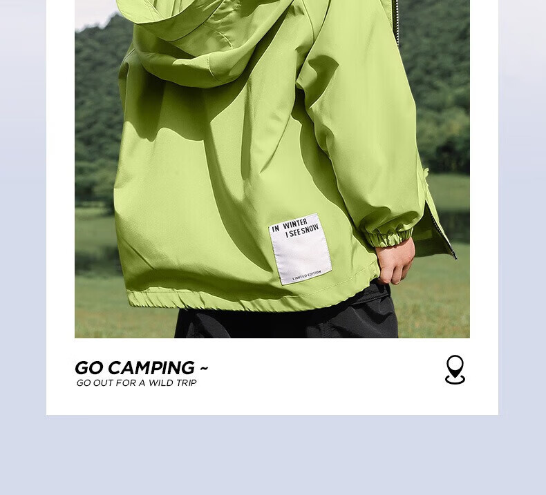 小猪班纳(PEPCO)儿童户外防水冲锋衣春秋款中大童外套休闲运动潮流百搭童装 苍灵绿(胸袋) 160 建议身高150-160cm 【足码-正码正拍】