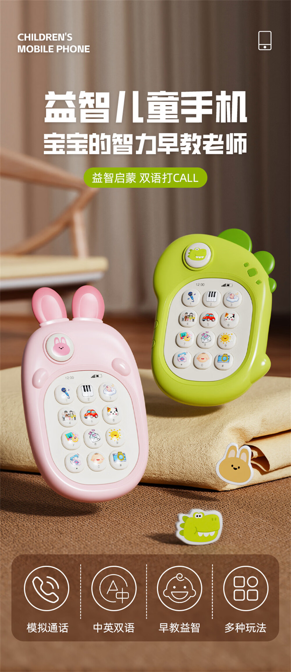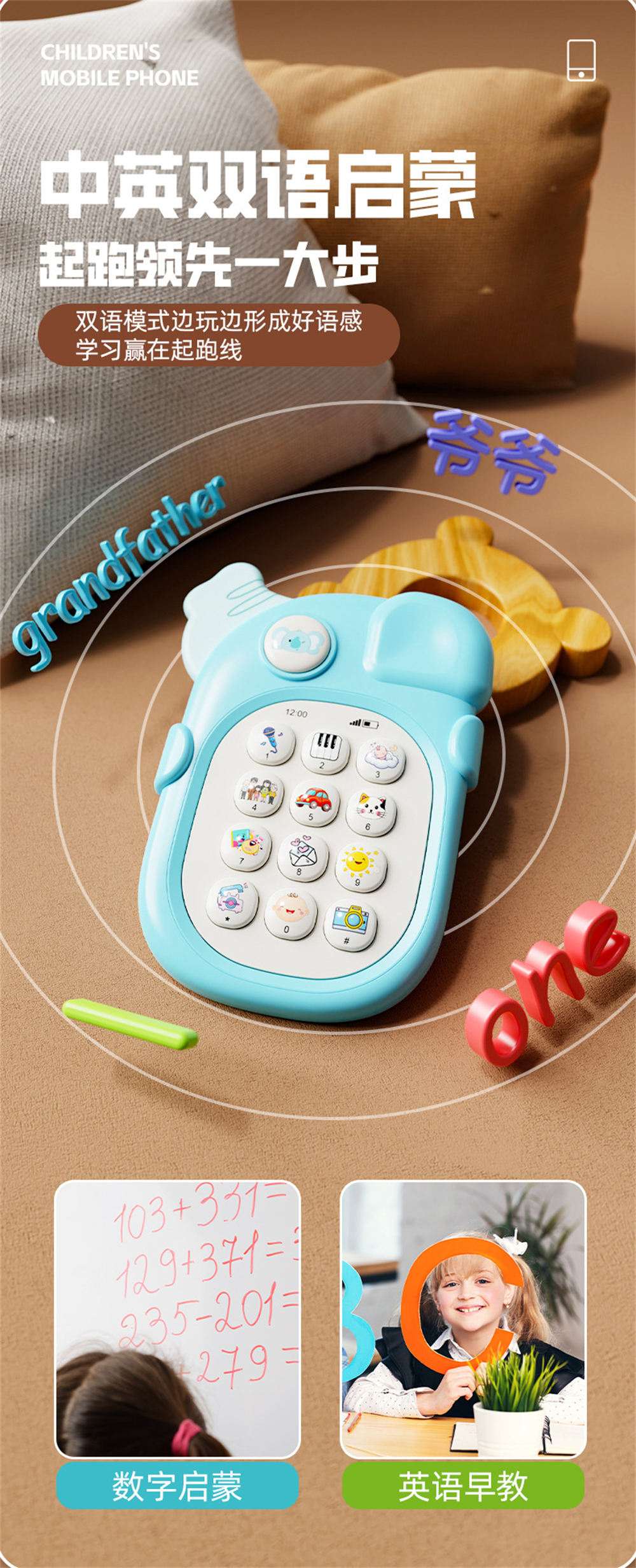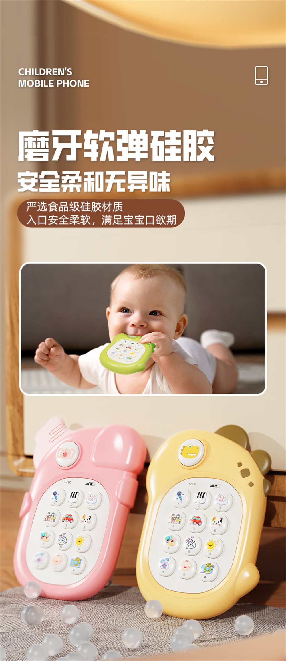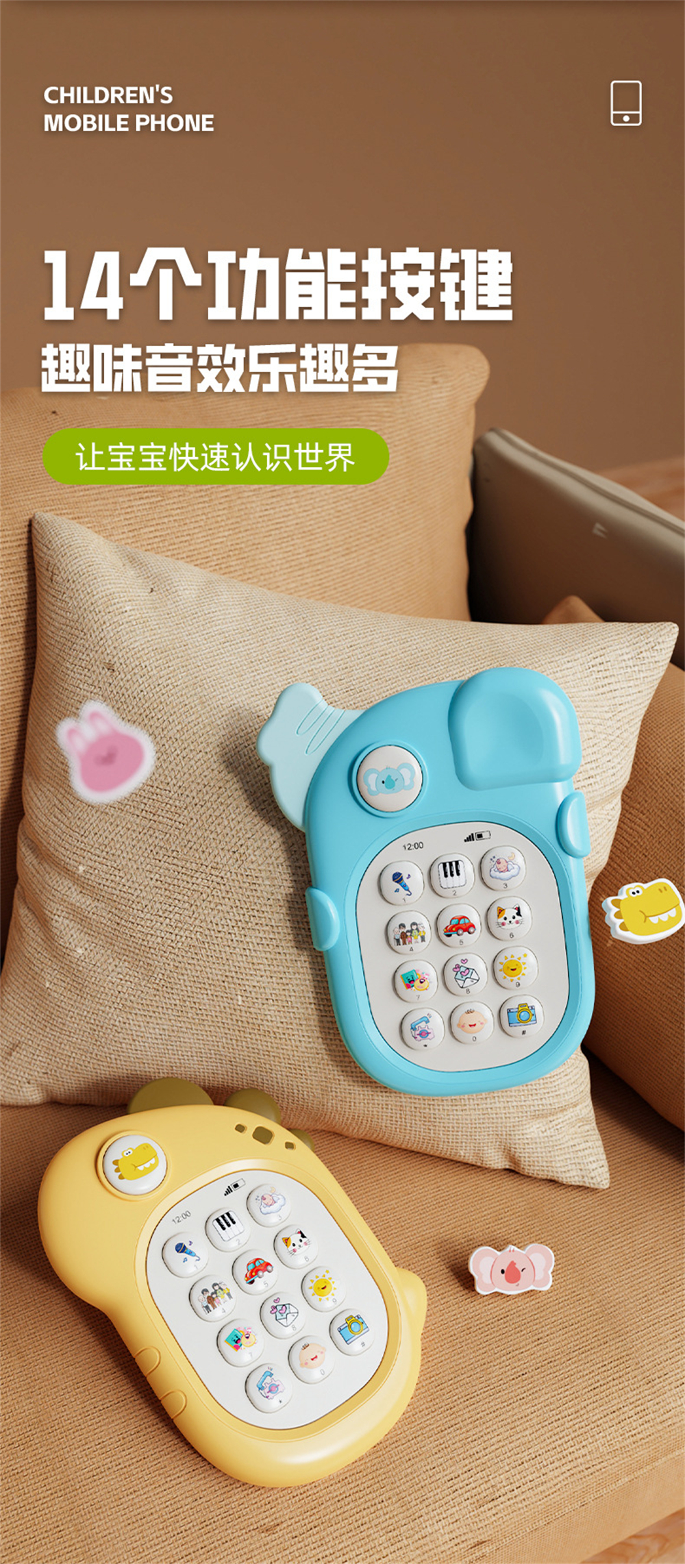 喜比姆婴幼儿童手机玩具0-3岁宝宝仿真电话可啃咬益智早教机生日礼物