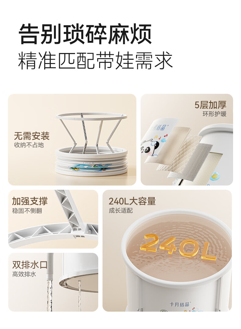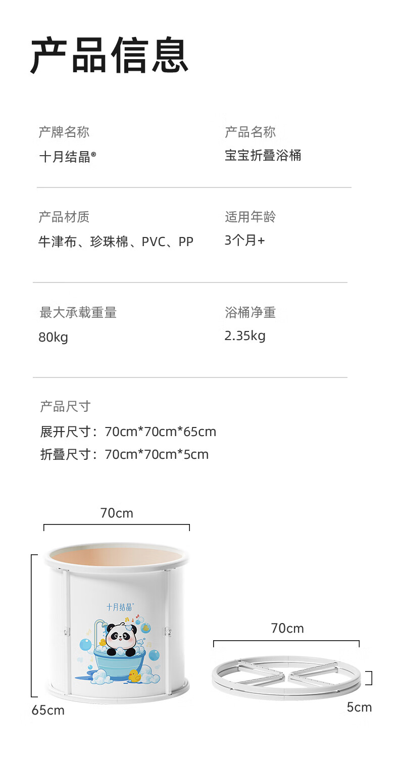 十月结晶婴儿泡澡桶折叠全身浴桶沐浴桶家用宝宝游泳桶泡澡澡熊猫
