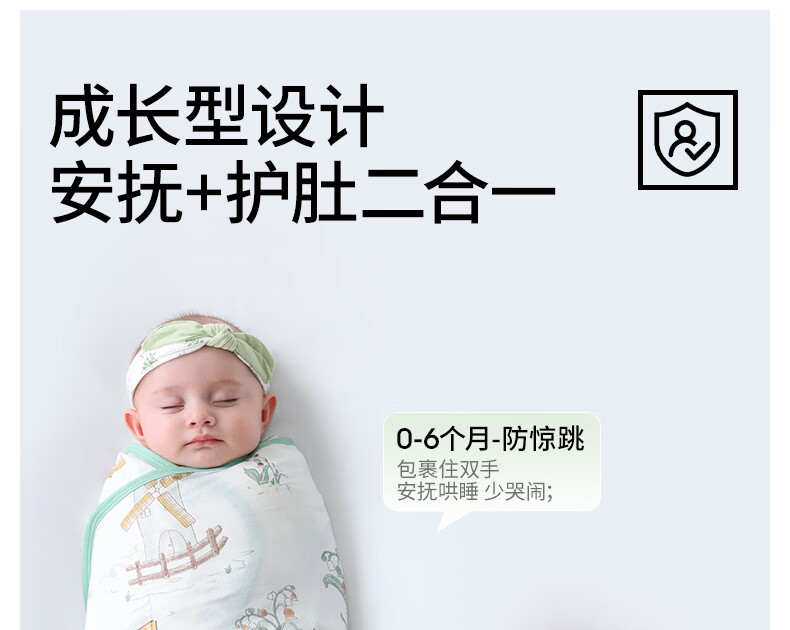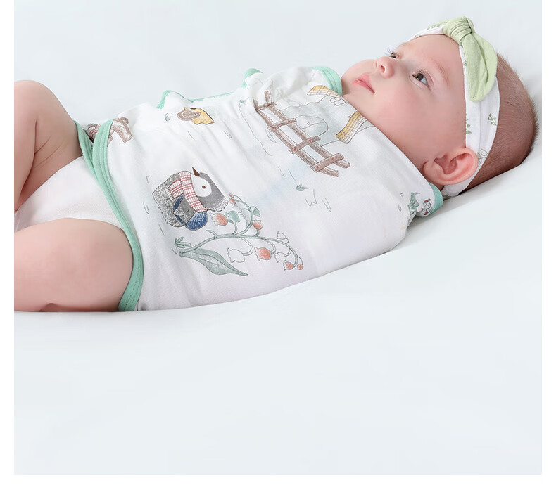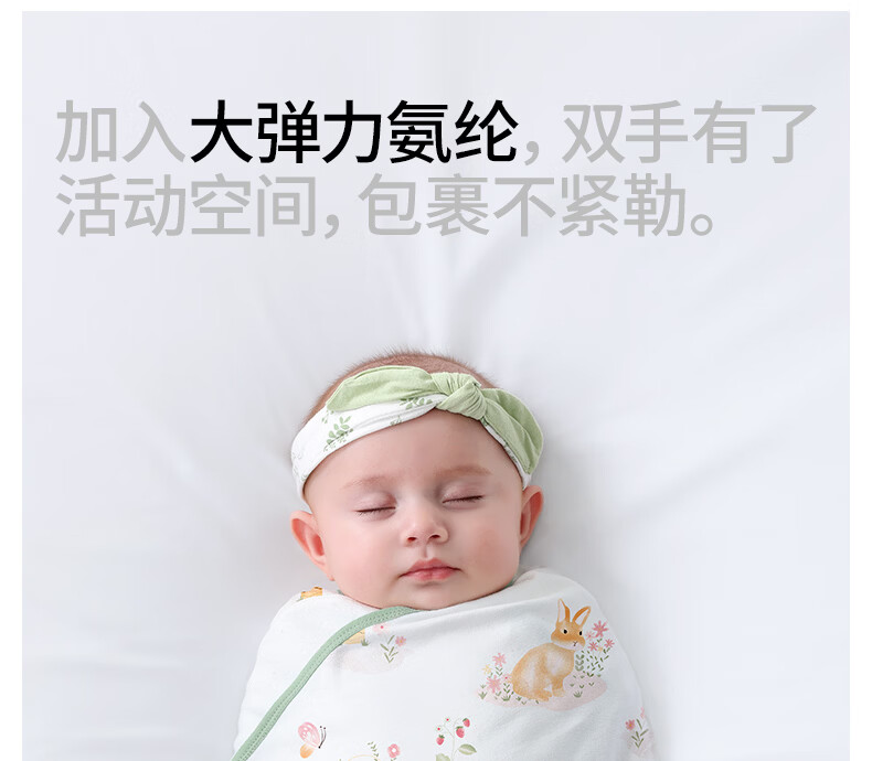 贝肽斯婴儿防惊跳睡袋包巾夏季单层新生儿襁褓包被宝宝睡觉神器 福兔S