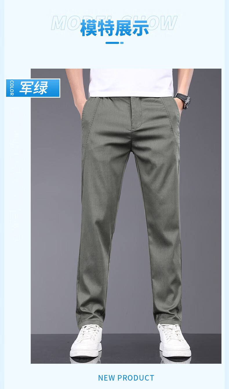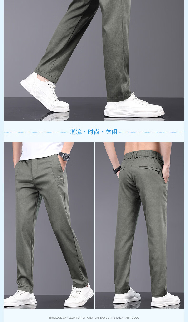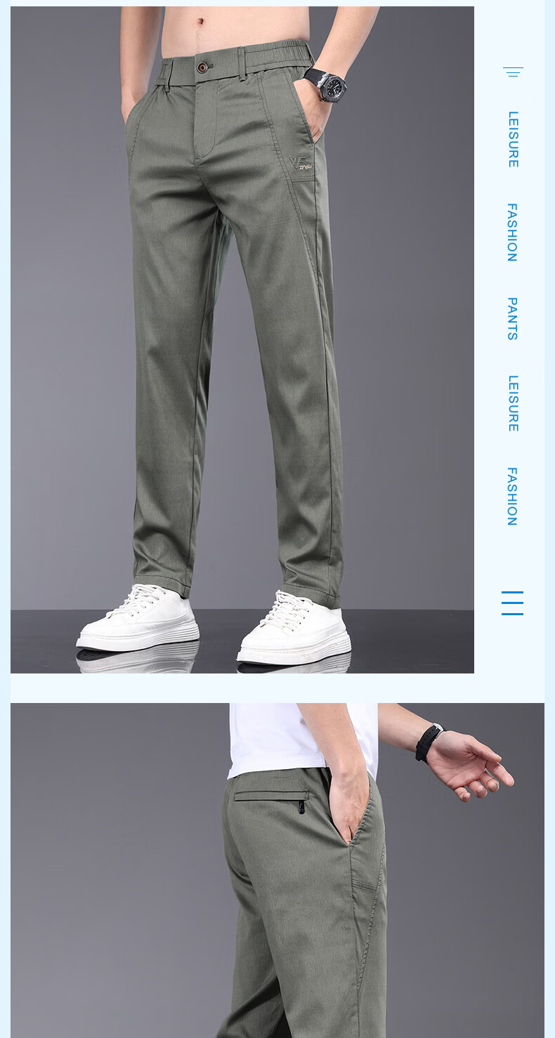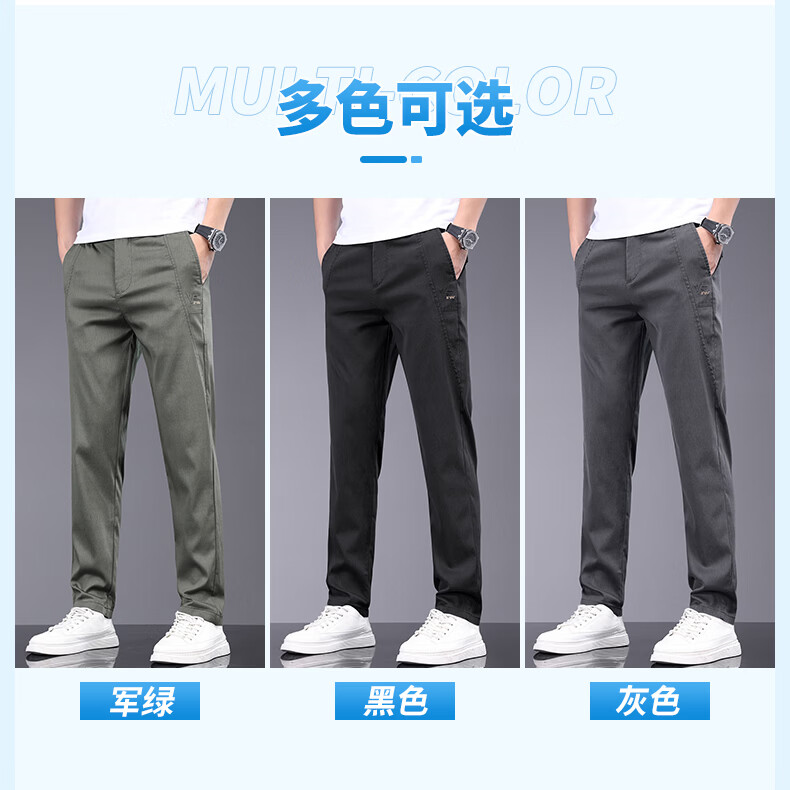真维斯天丝休闲裤男夏季薄款宽松直筒长裤2026新款男士商务夏天冰丝裤子 军绿 28