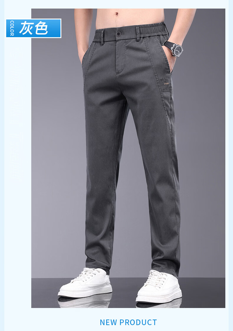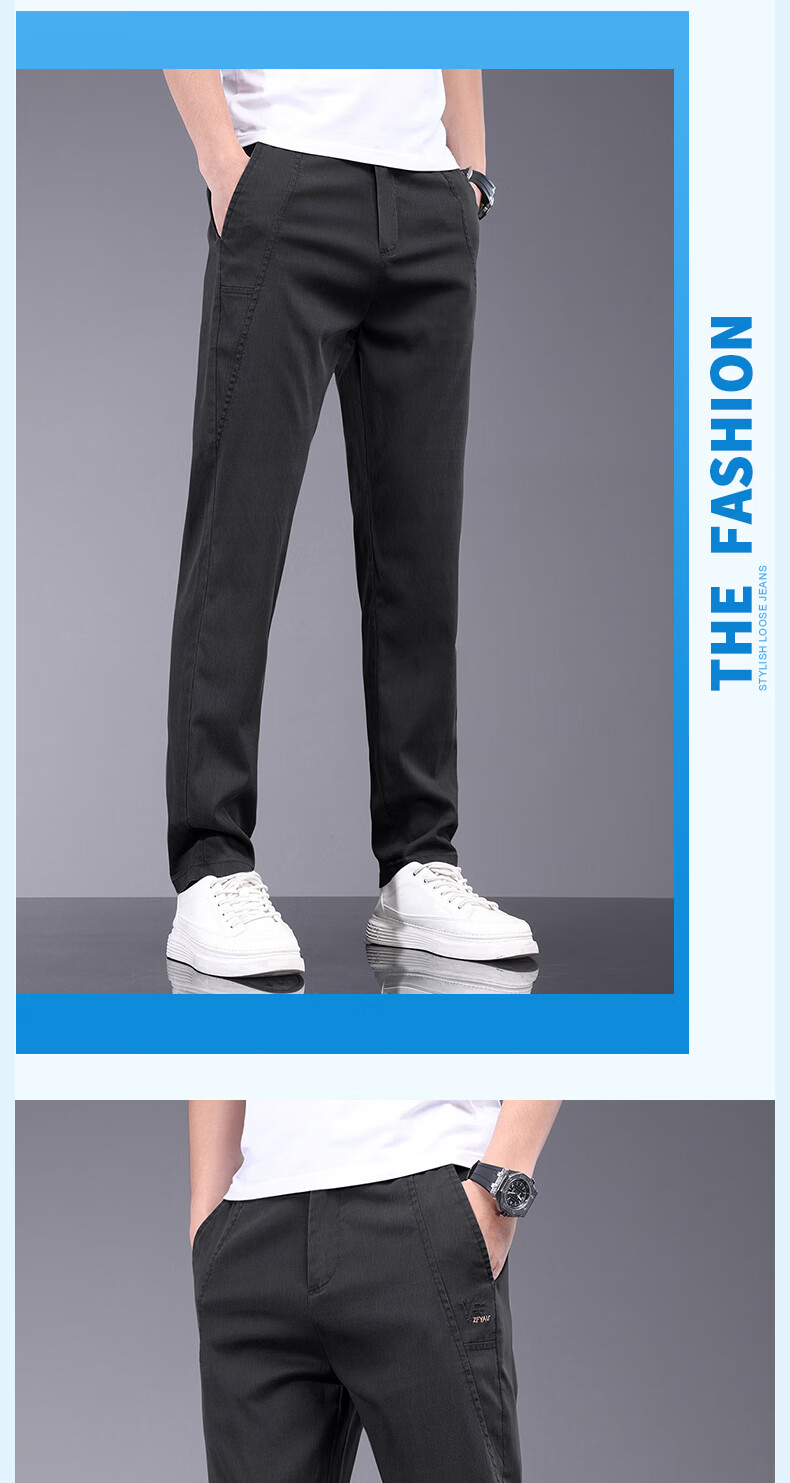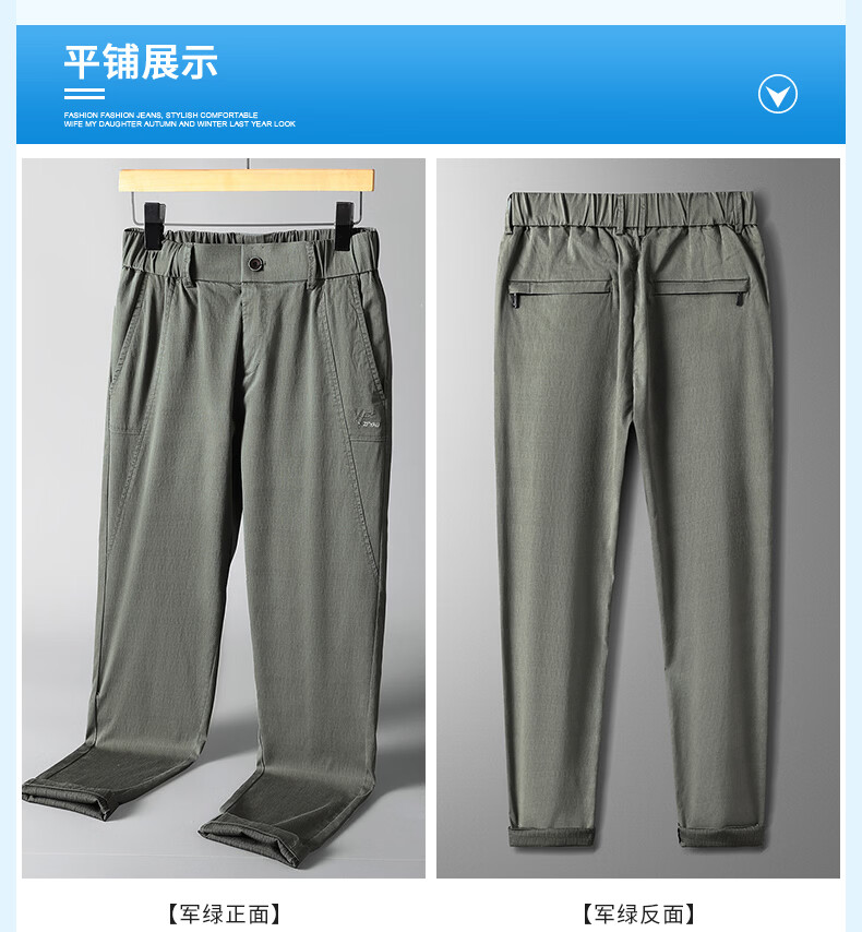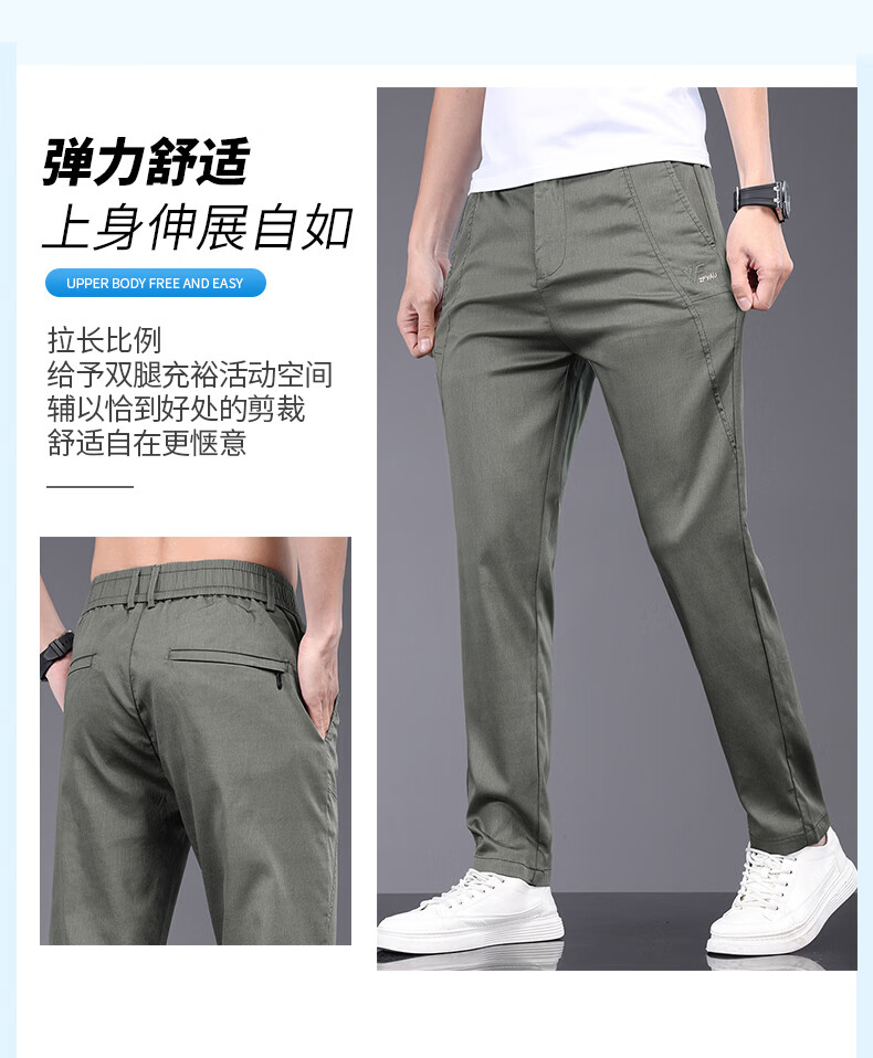 真维斯天丝休闲裤男夏季薄款宽松直筒长裤2026新款男士商务夏天冰丝裤子 军绿 28