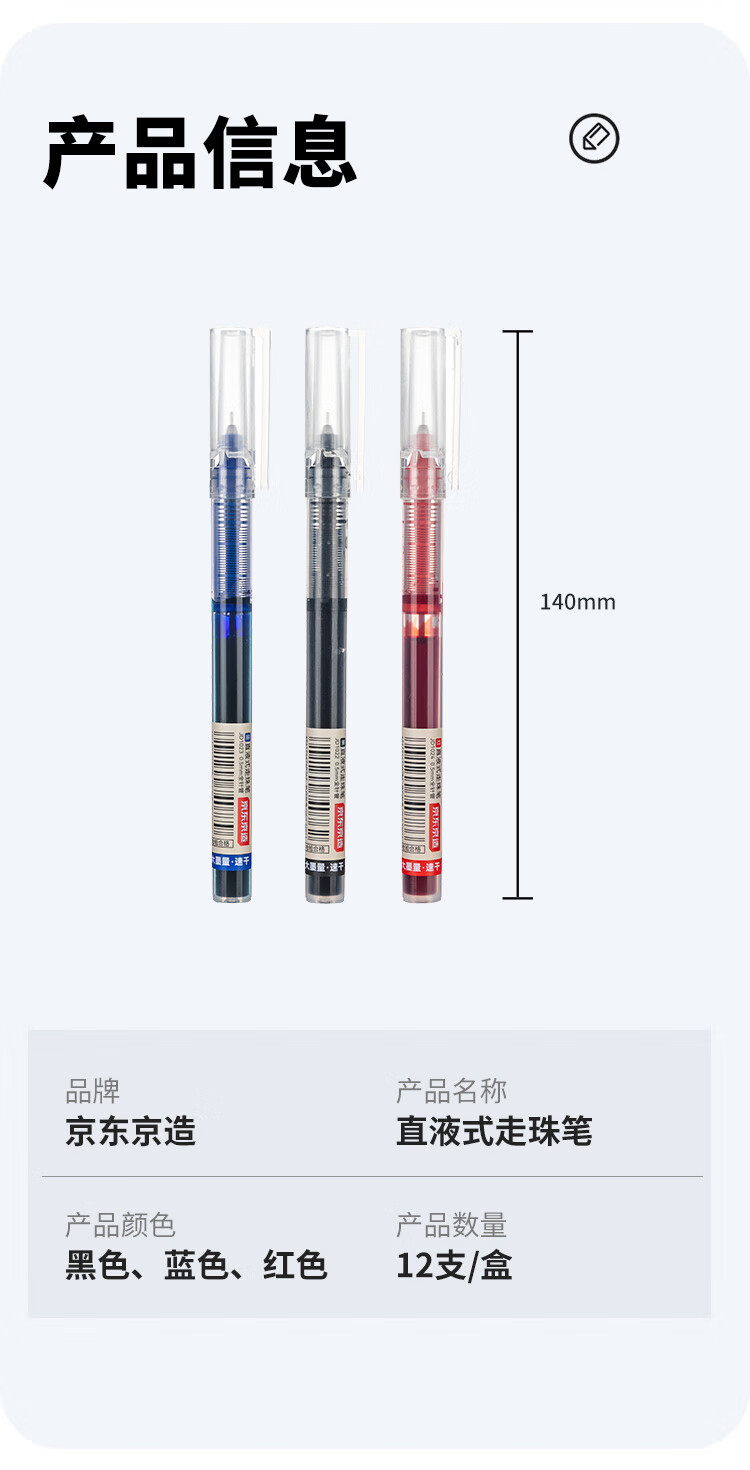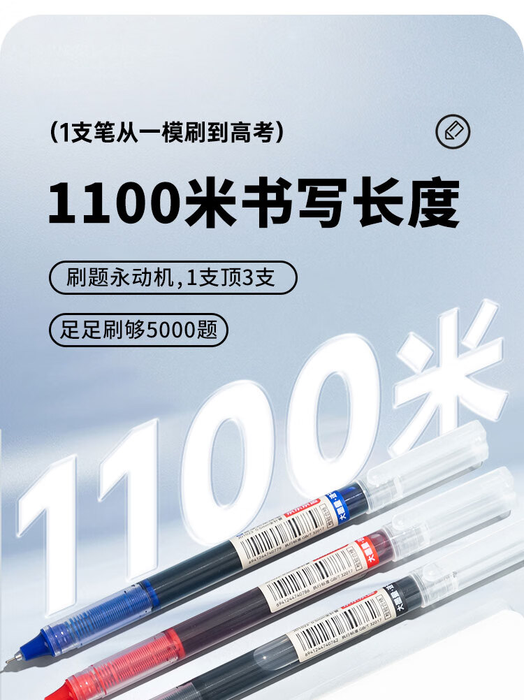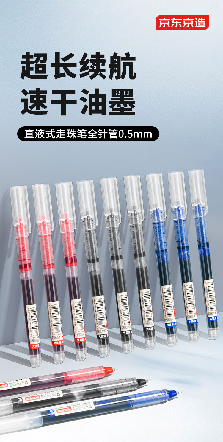 京东京造【热门商品】全针管直液式走珠笔 1100米速干中性笔签字笔 商务办公学生考试刷题笔 红色12支装